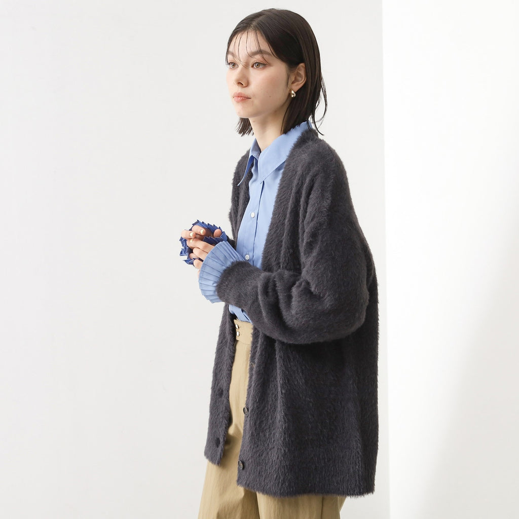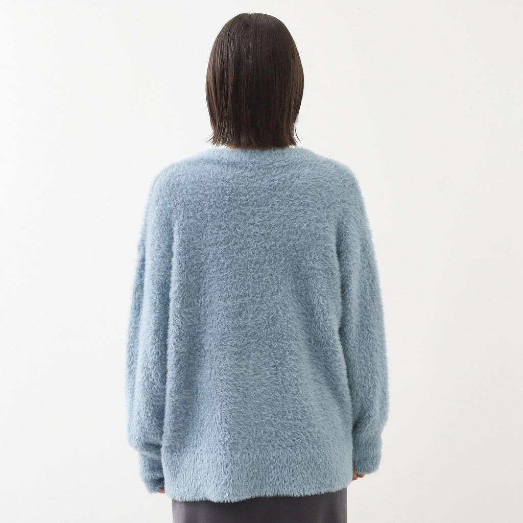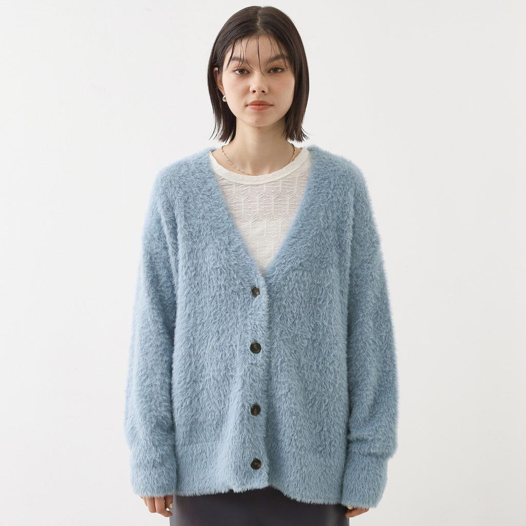V-neck cardigan made from soft and supple feather knit, with a light and airy texture.