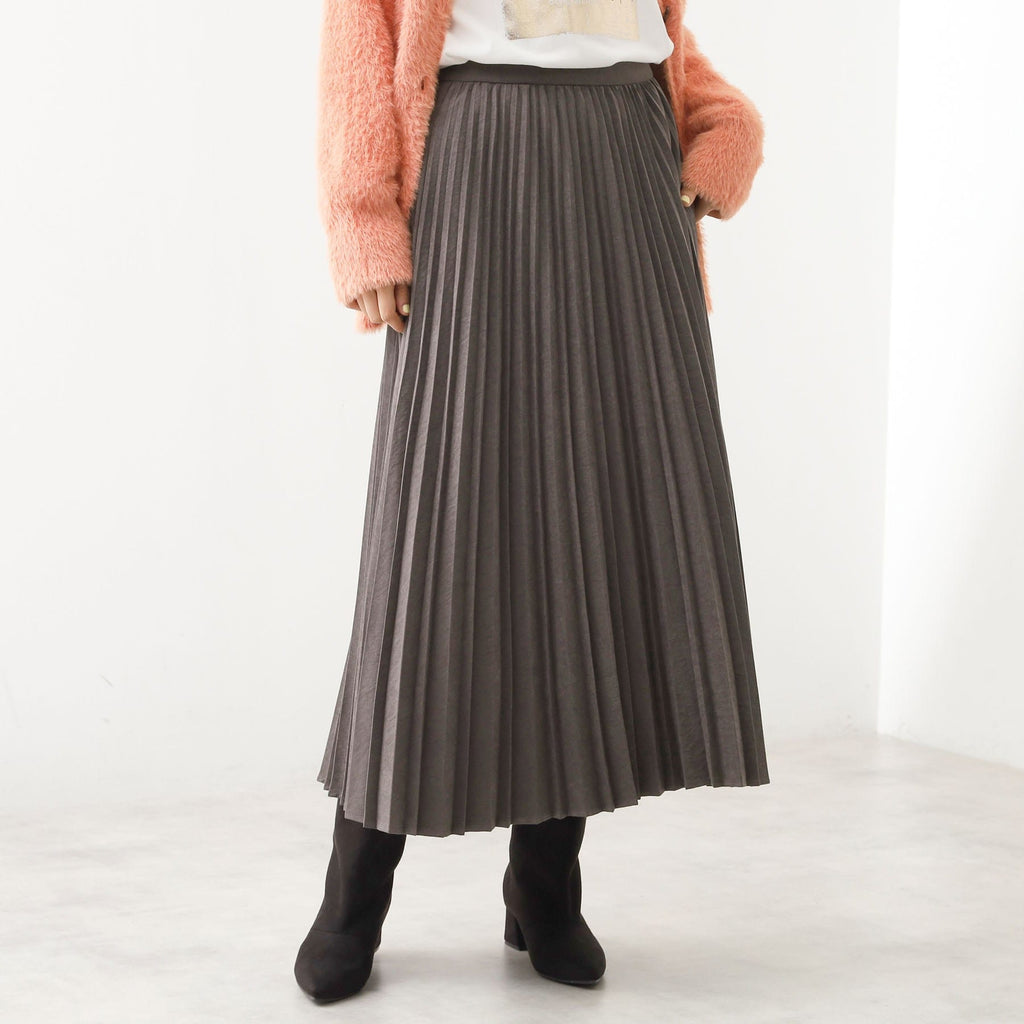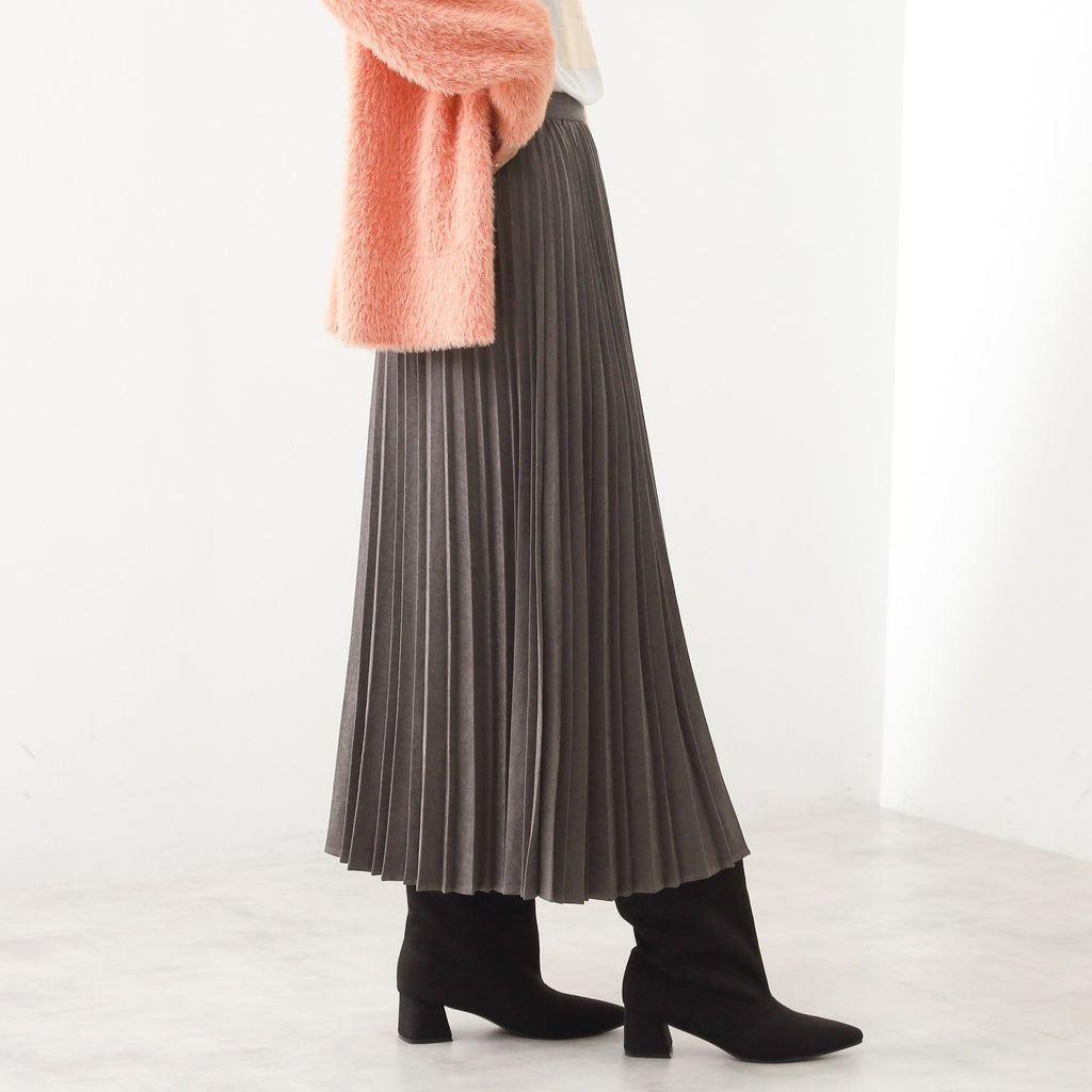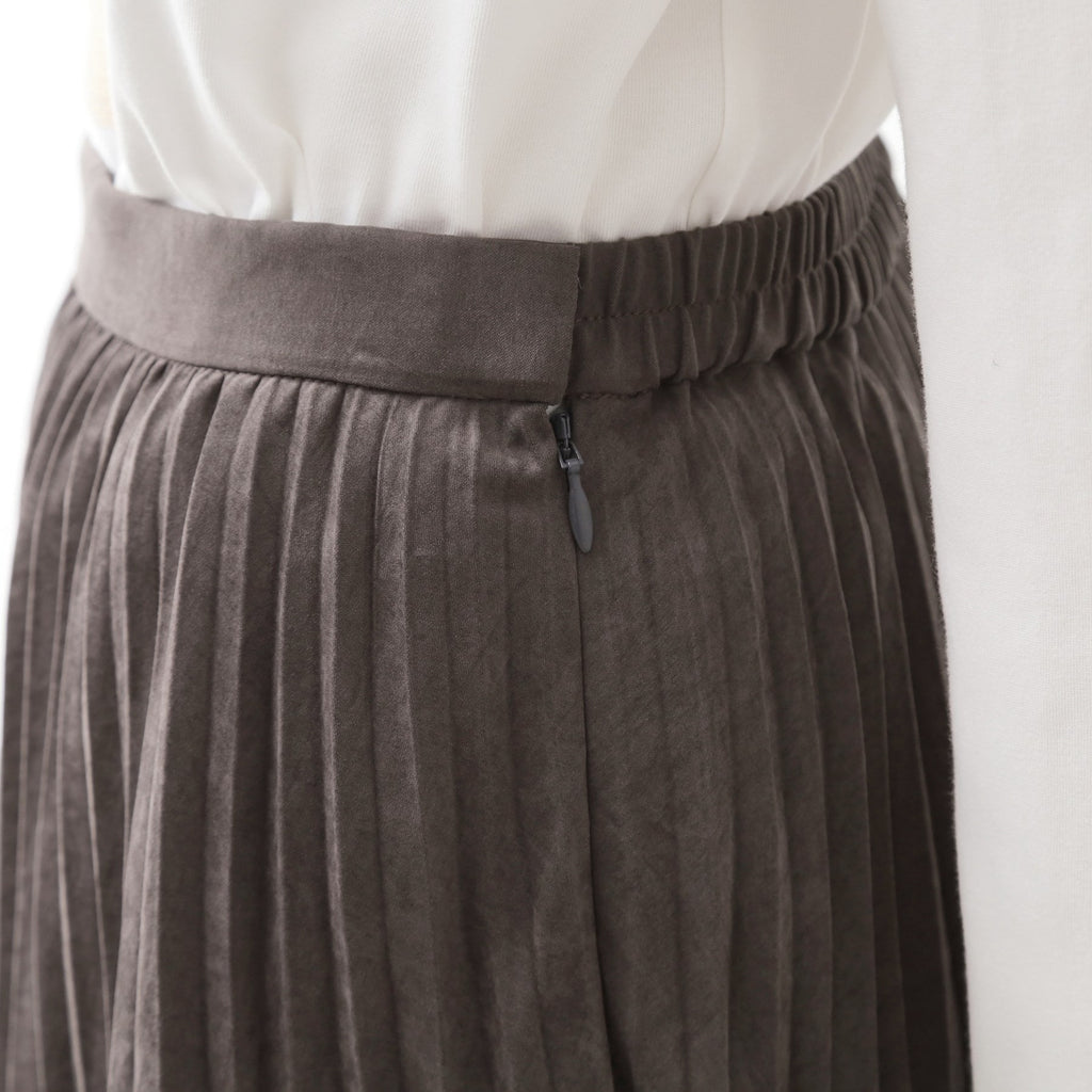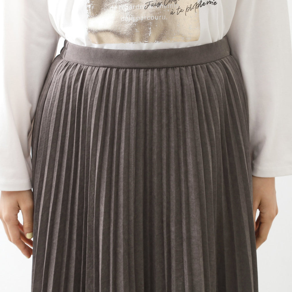 The pleated skirt made from micro suede features a soft texture, combining elegant drape with ease of movement.