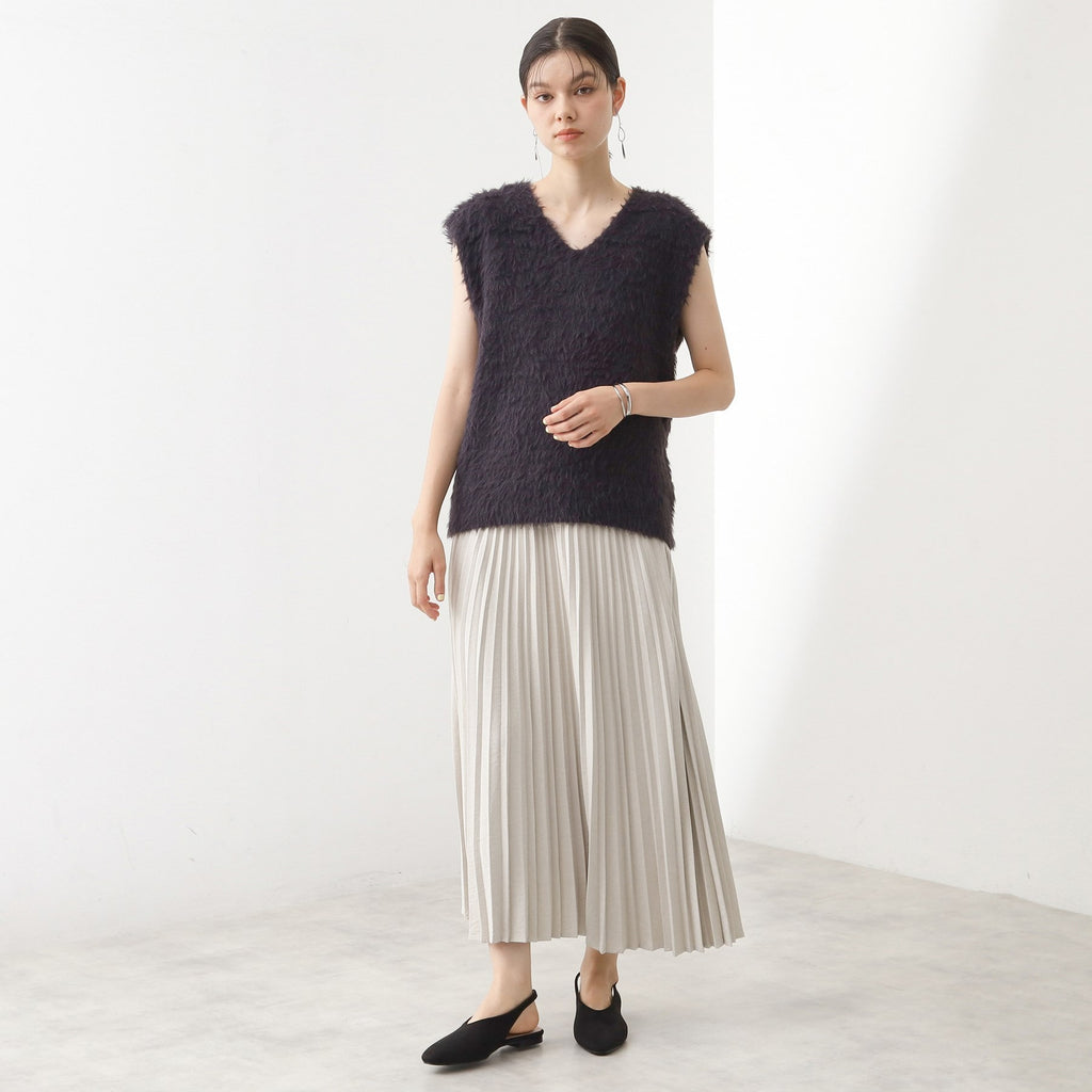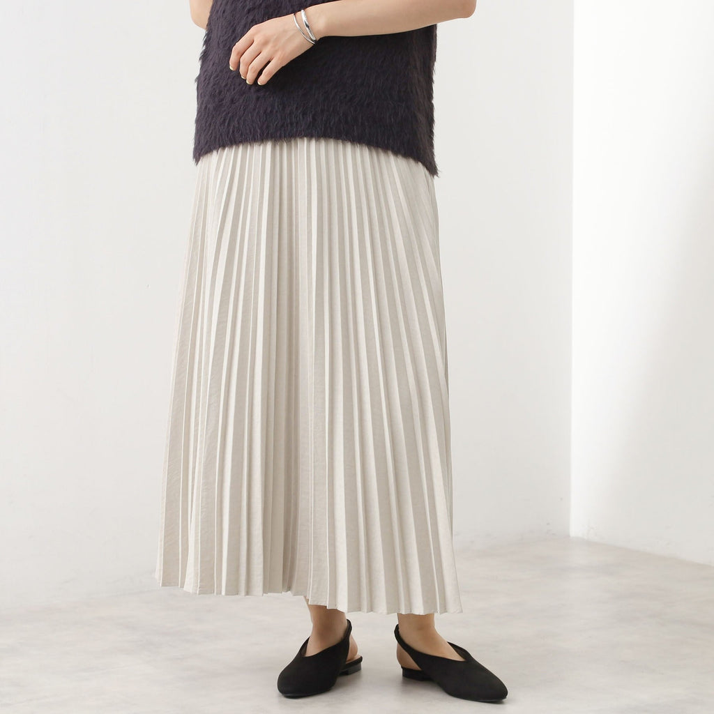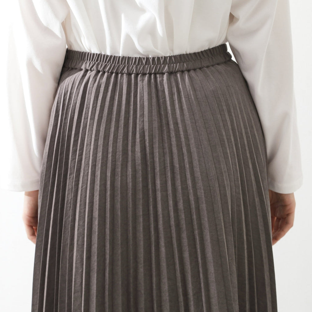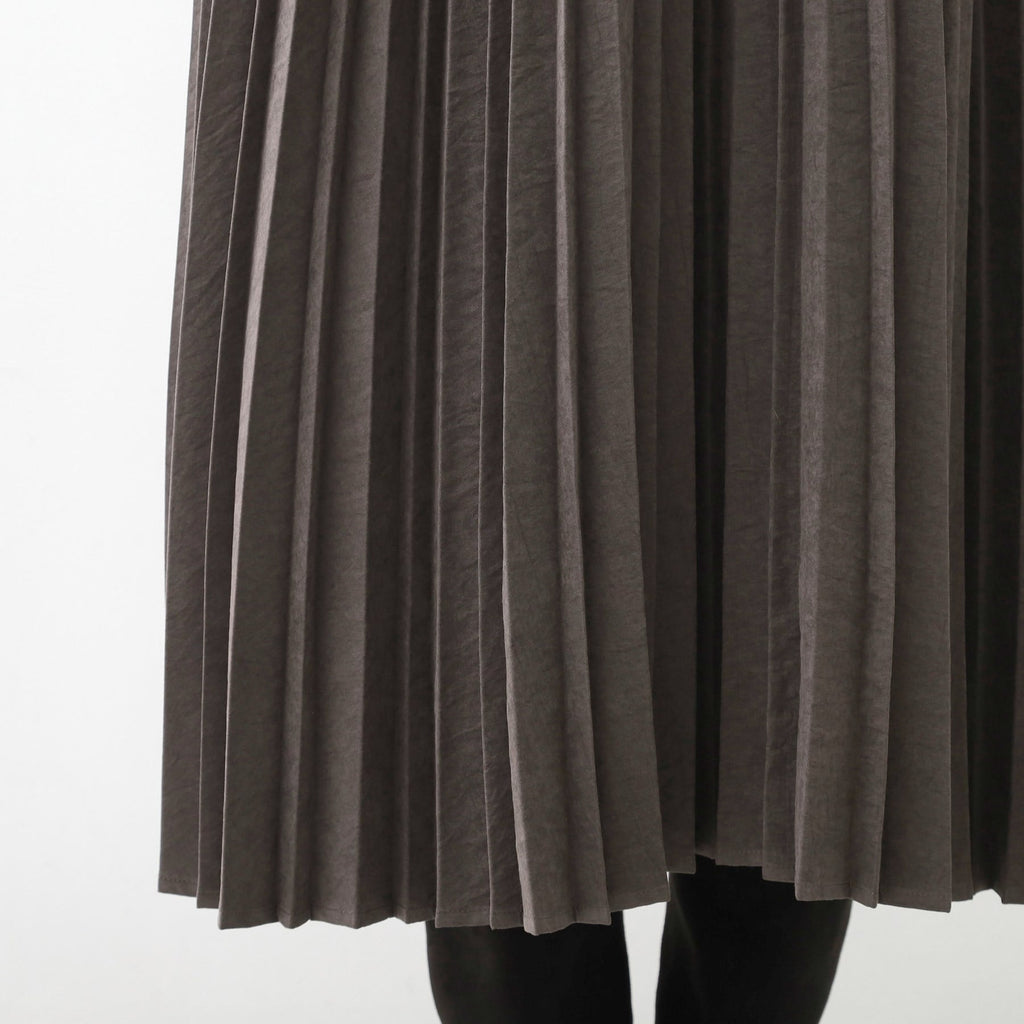 The pleated skirt made from micro suede features a soft texture, combining elegant drape with ease of movement.
