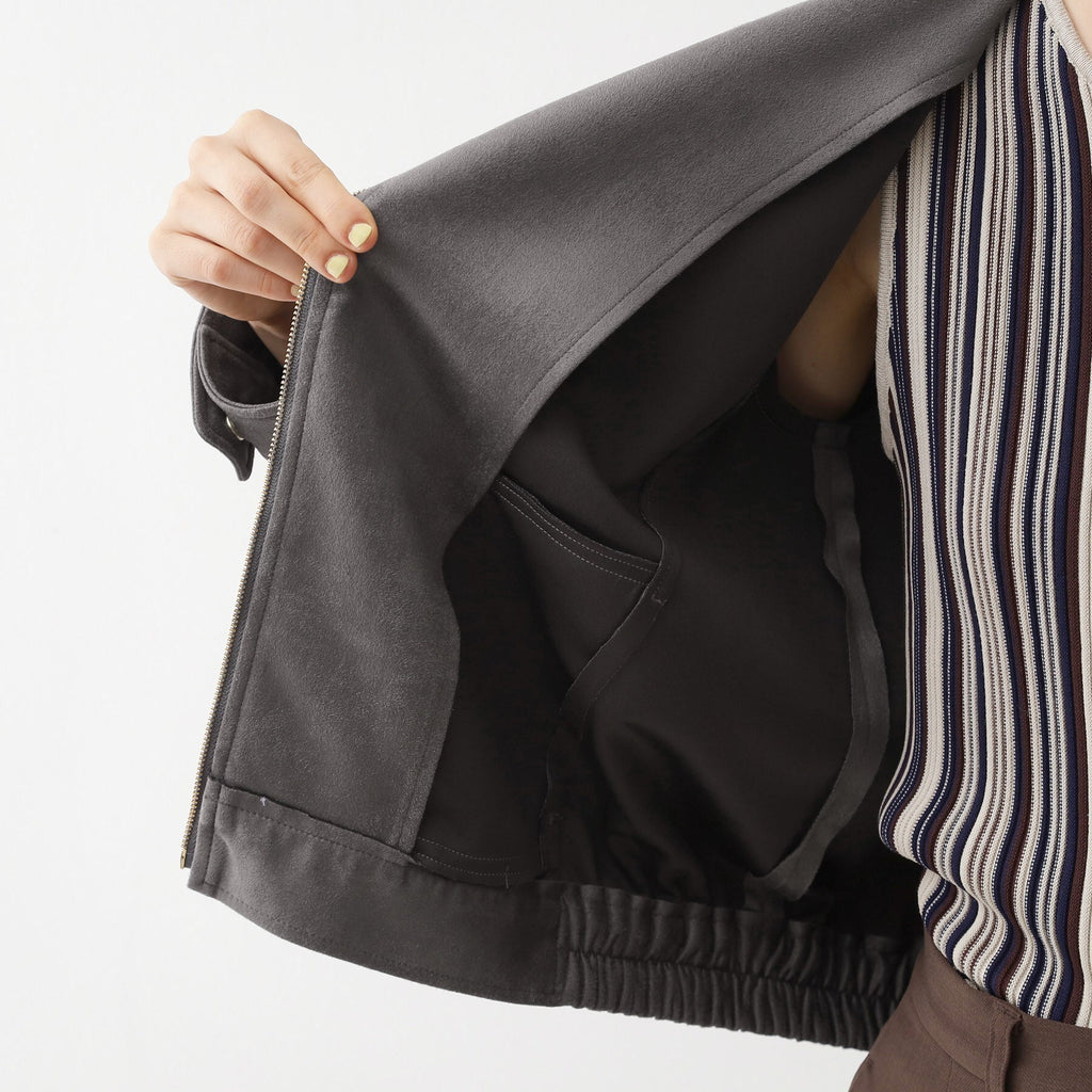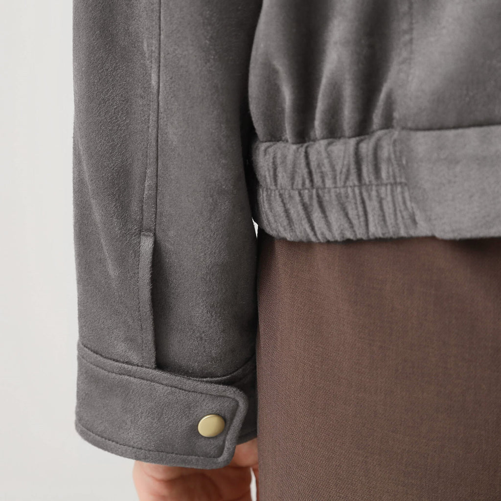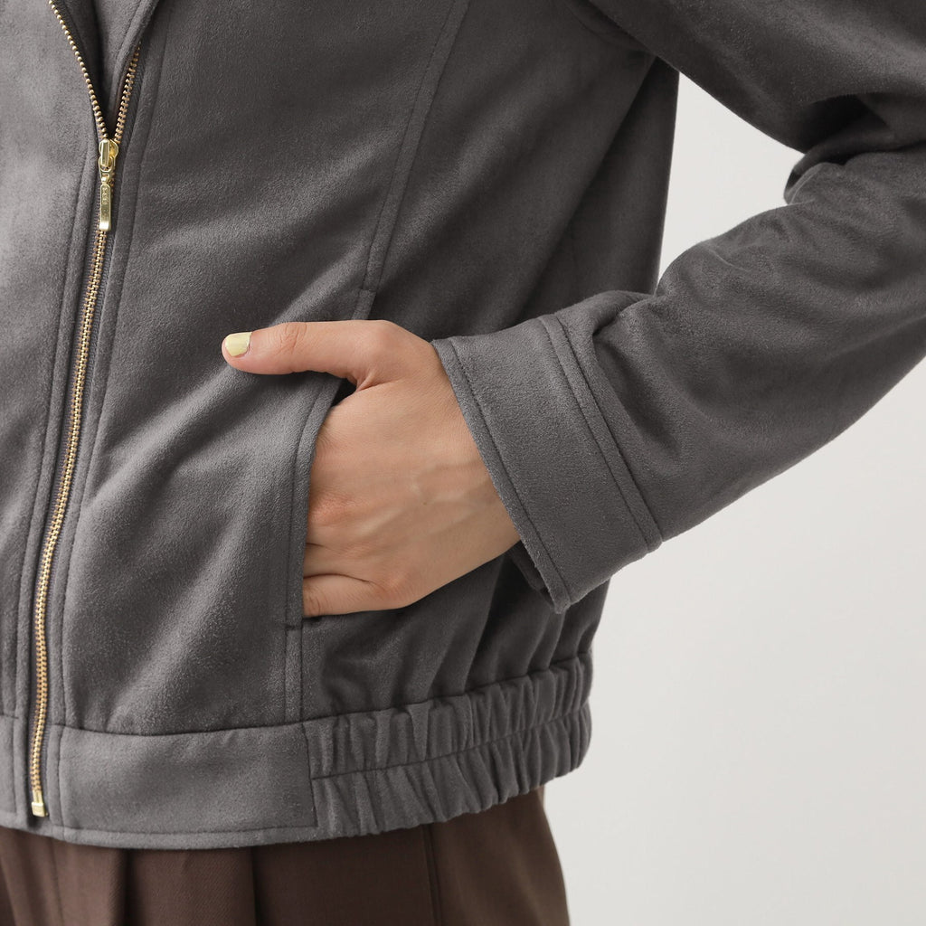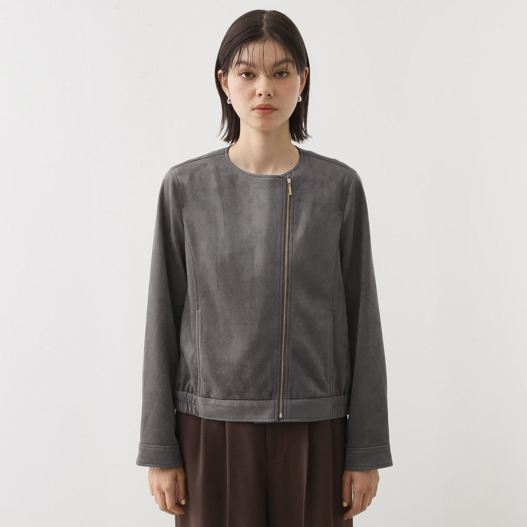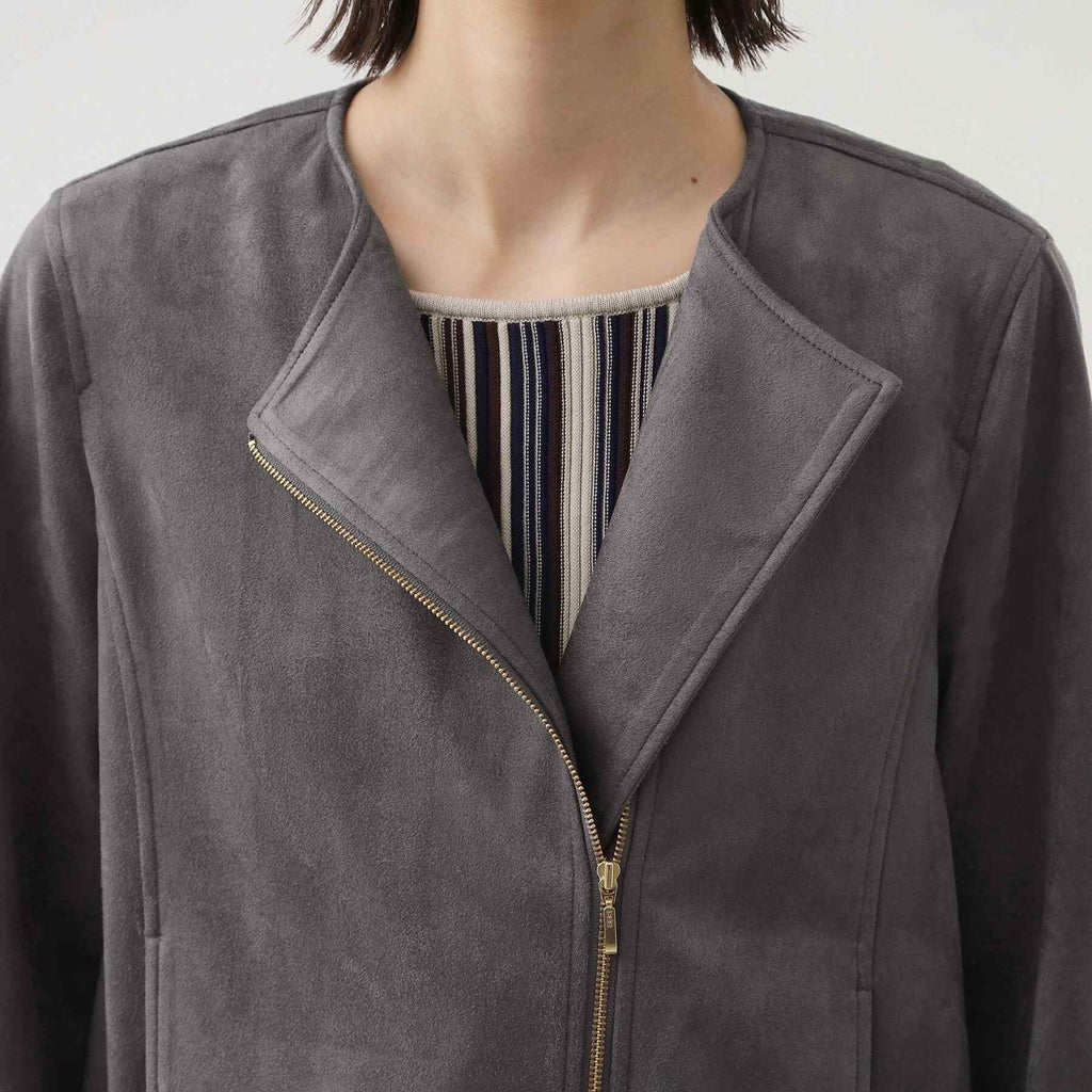 Made from a soft-touch suede-like fabric with stretch, the crew neck top features a rider-style design that is attractive.
