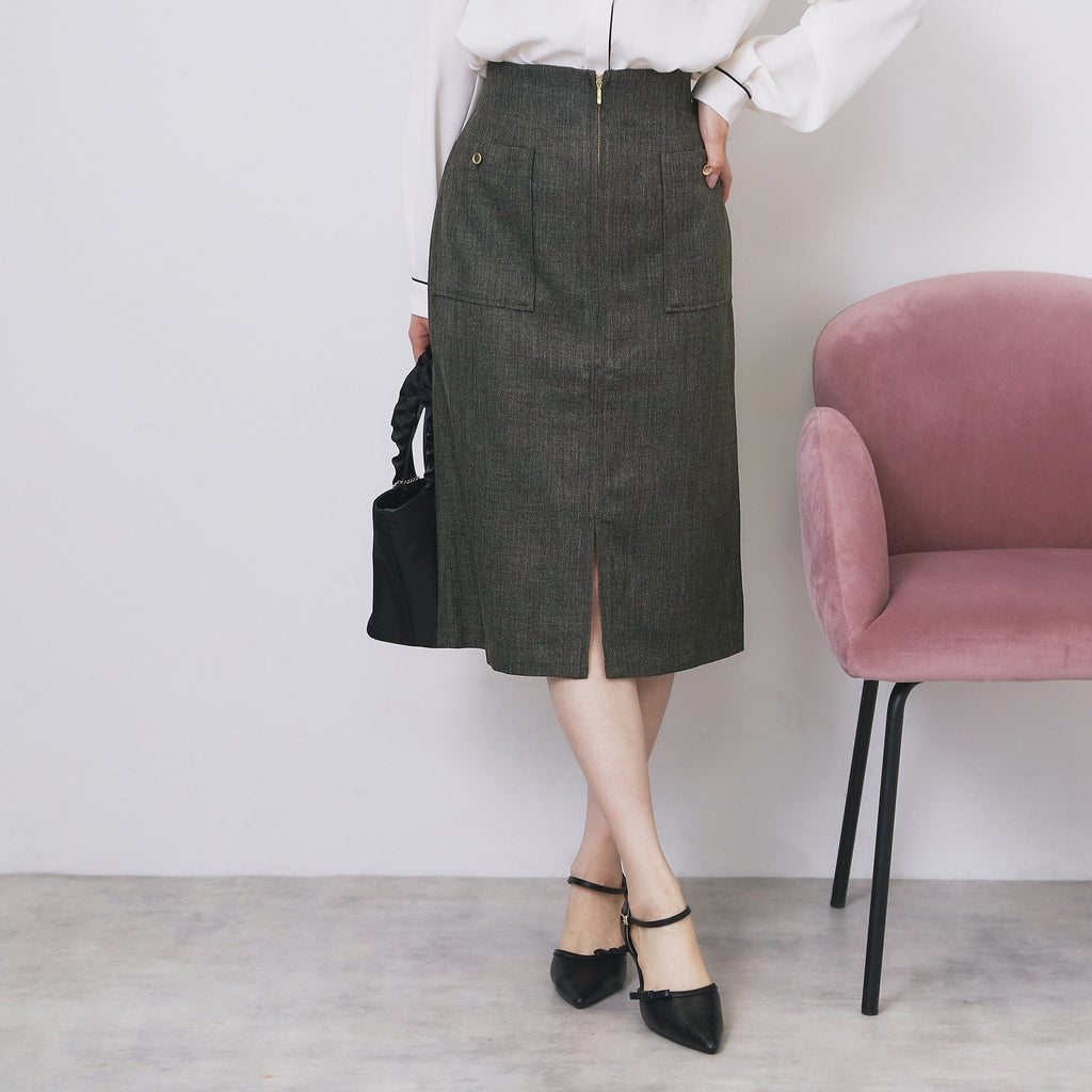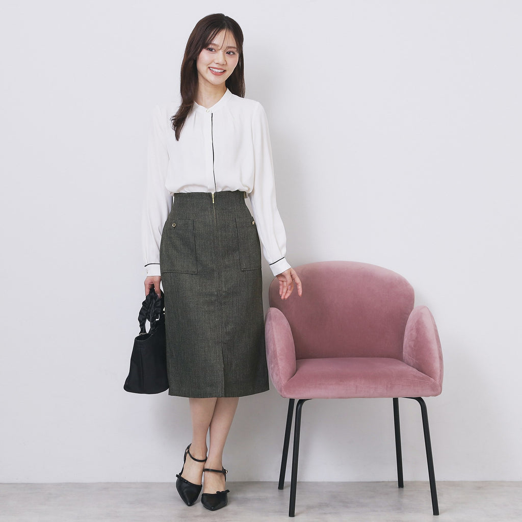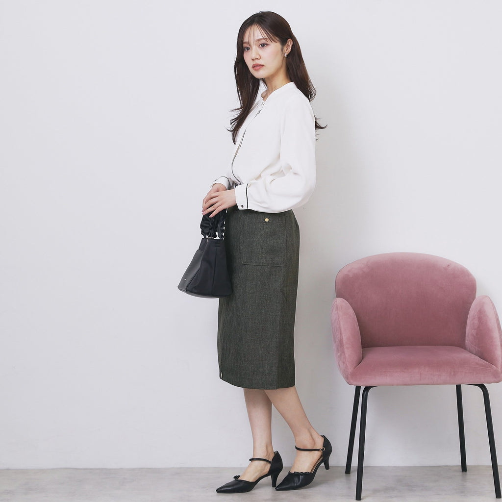 It adds an accent to a simple tight skirt, creating a sophisticated impression.