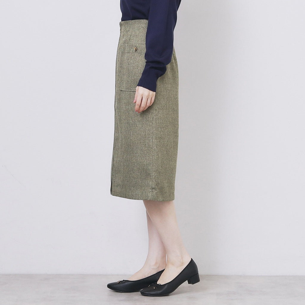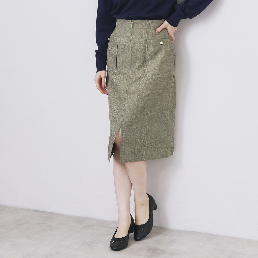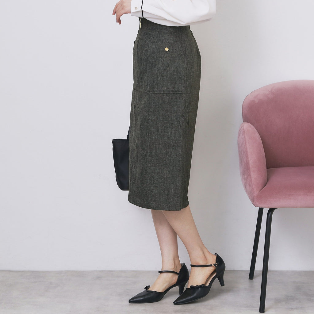 It adds an accent to a simple tight skirt, creating a sophisticated impression.