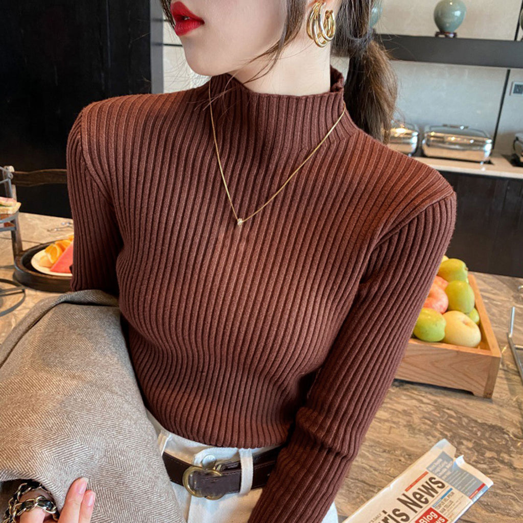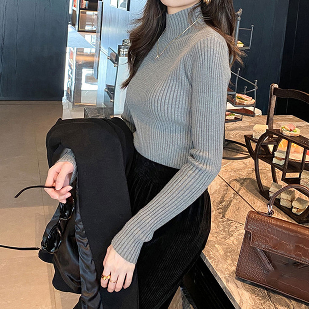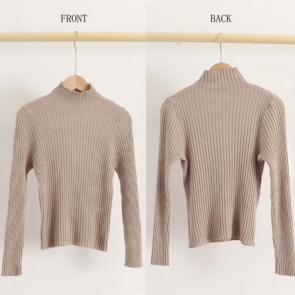 Petite High Neck Knit Pullover Elegant Layering Knitwear Autumn Winter New Knit Top Funnel Neck Basic Knit