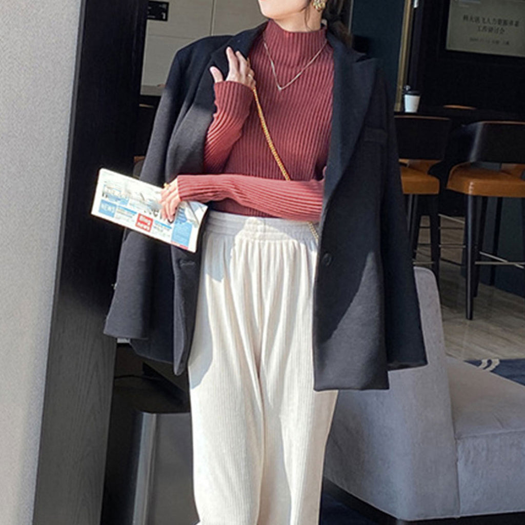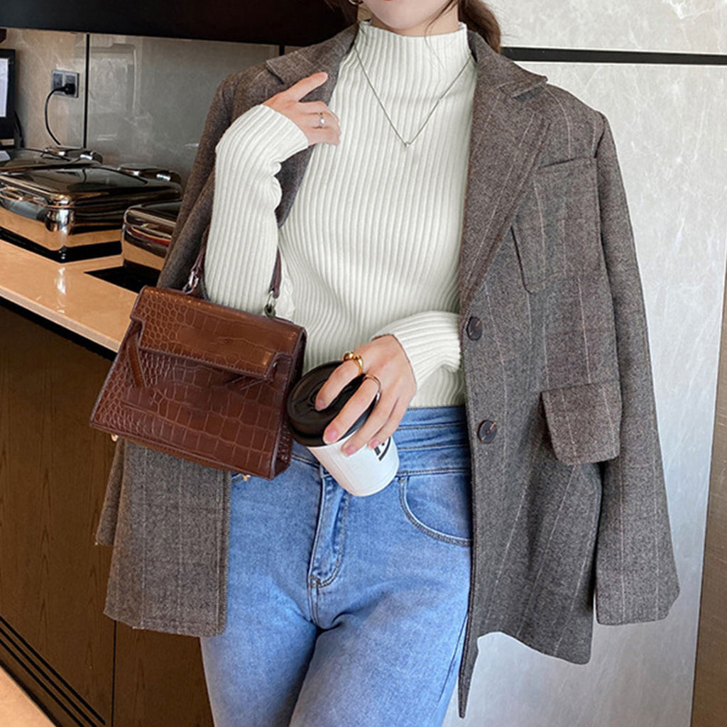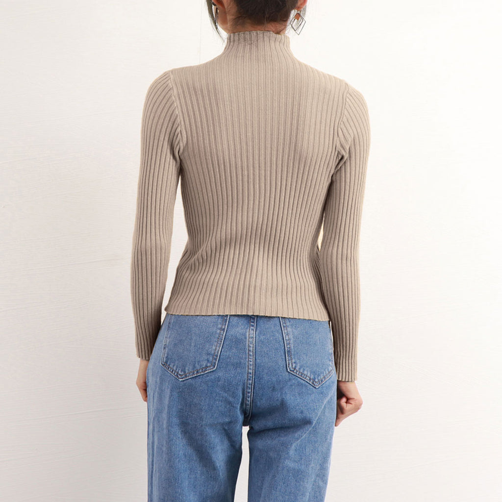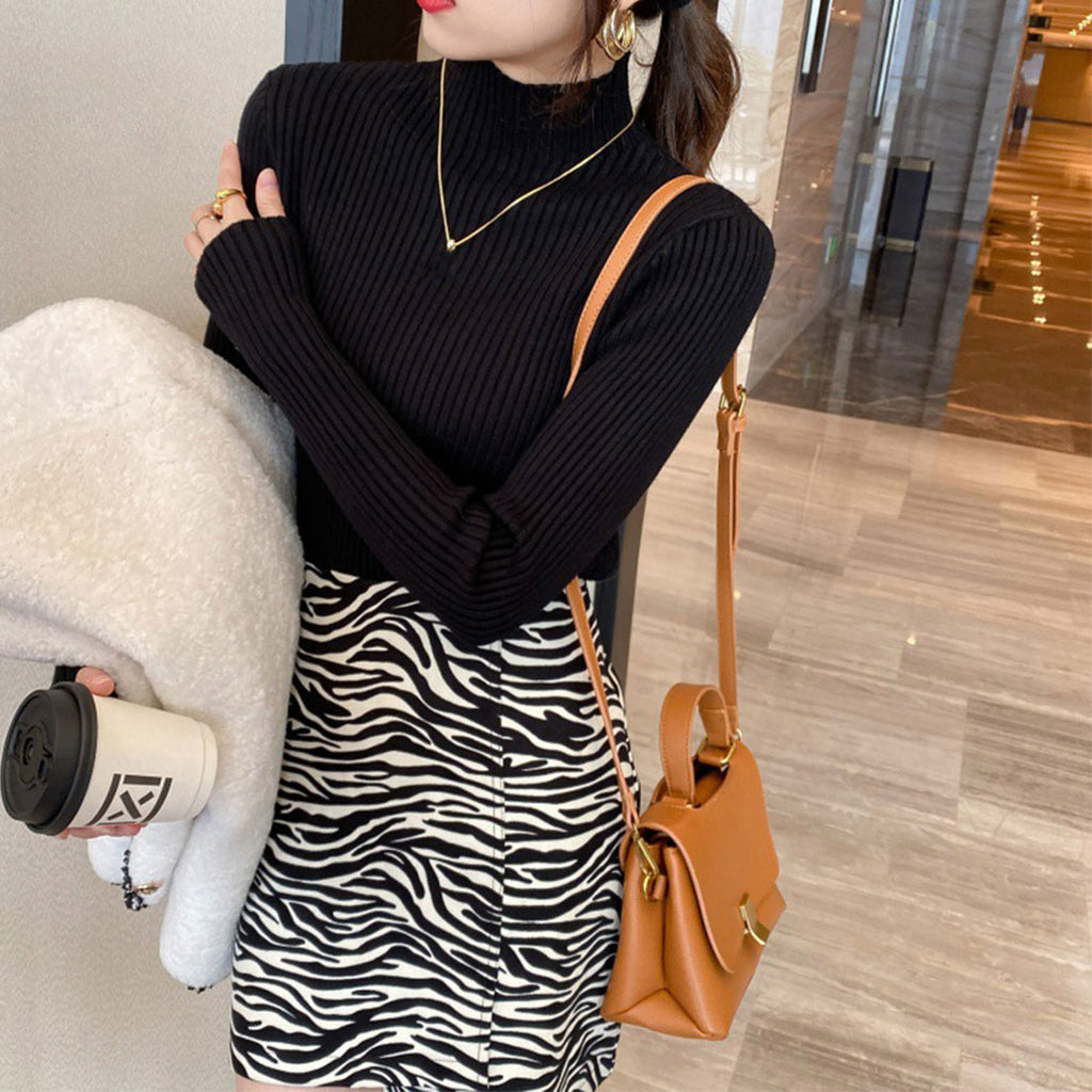 Petite High Neck Knit Pullover Elegant Layering Knitwear Autumn Winter New Knit Top Funnel Neck Basic Knit