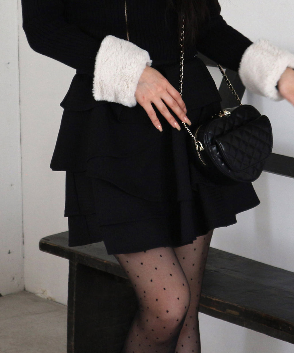 The fabric has a textured surface, so you can wear the mini skirt without looking childish.