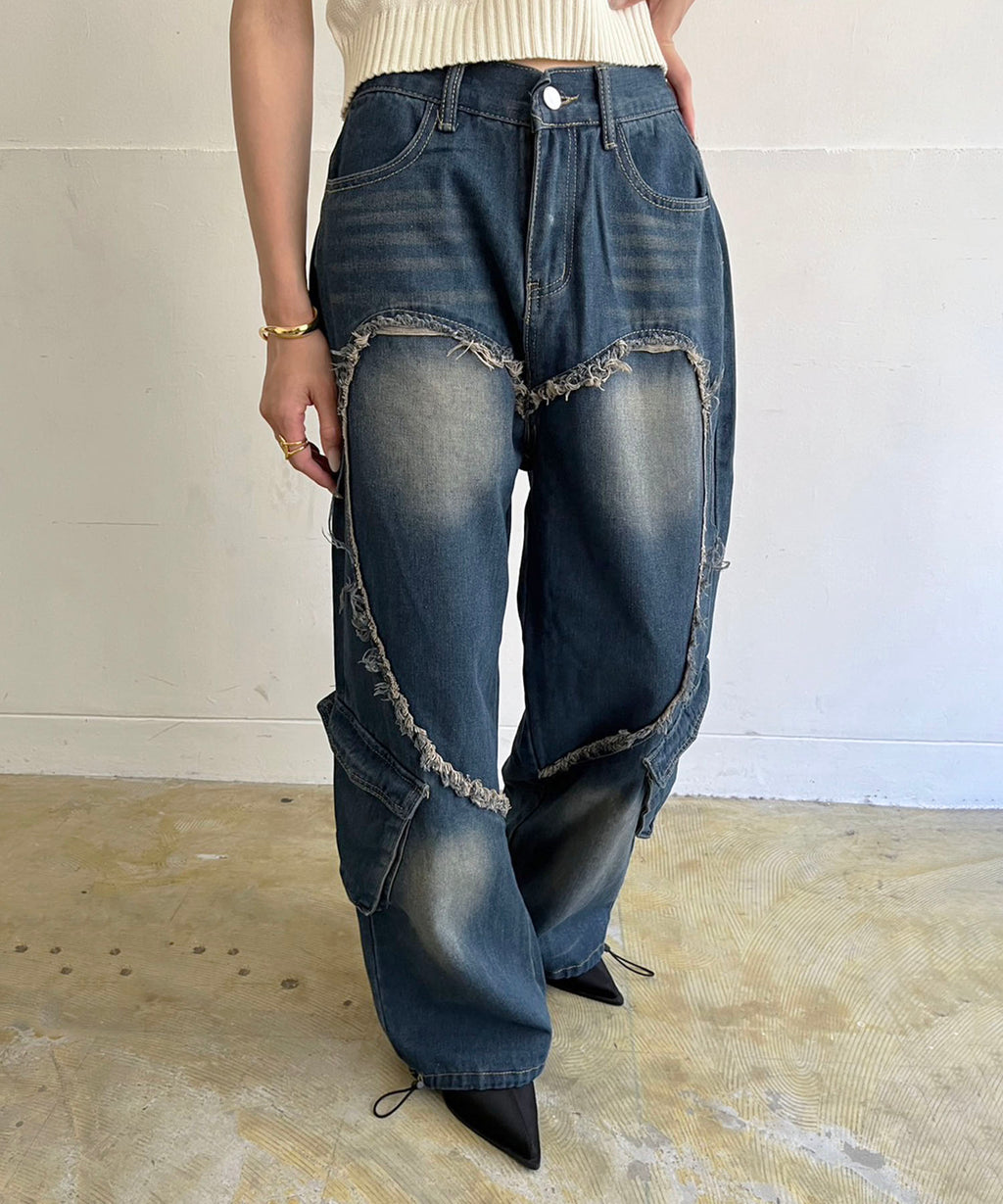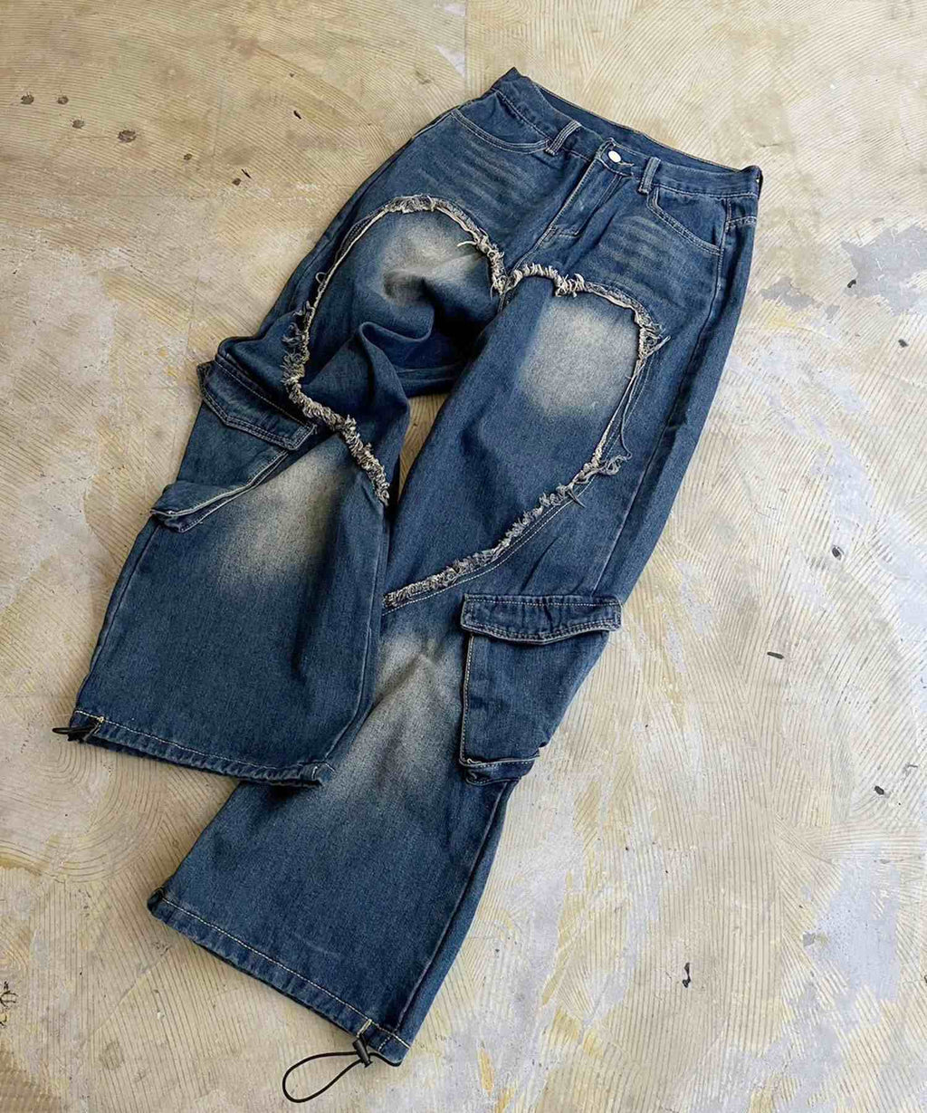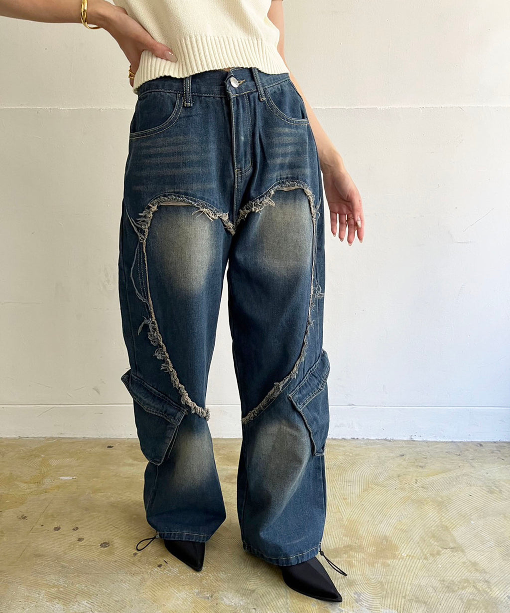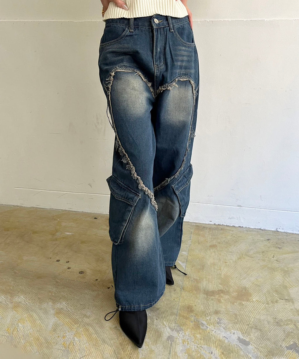 "Close your legs and a heart appears!? Impactful cargo denim pants."