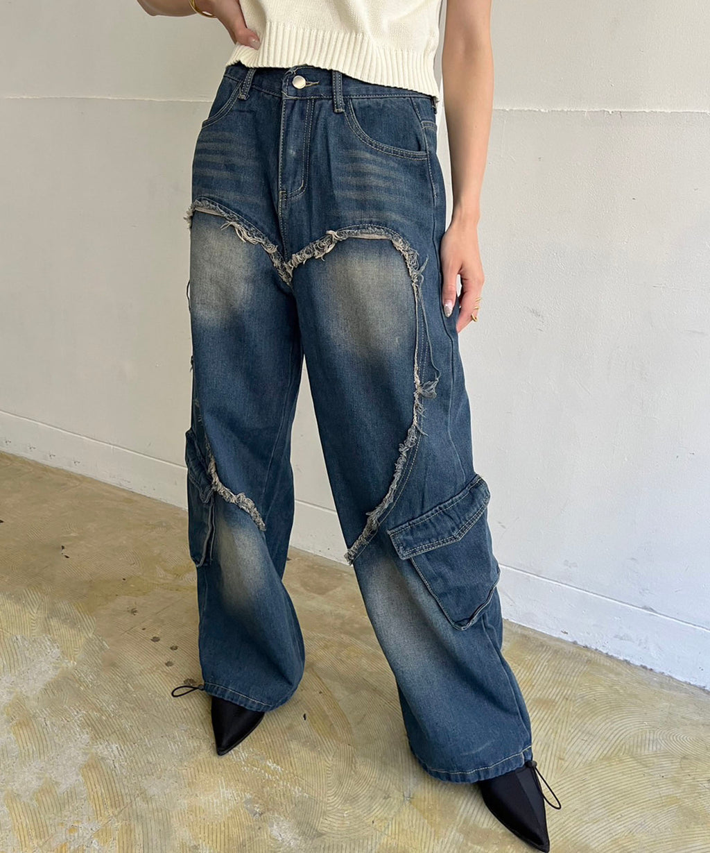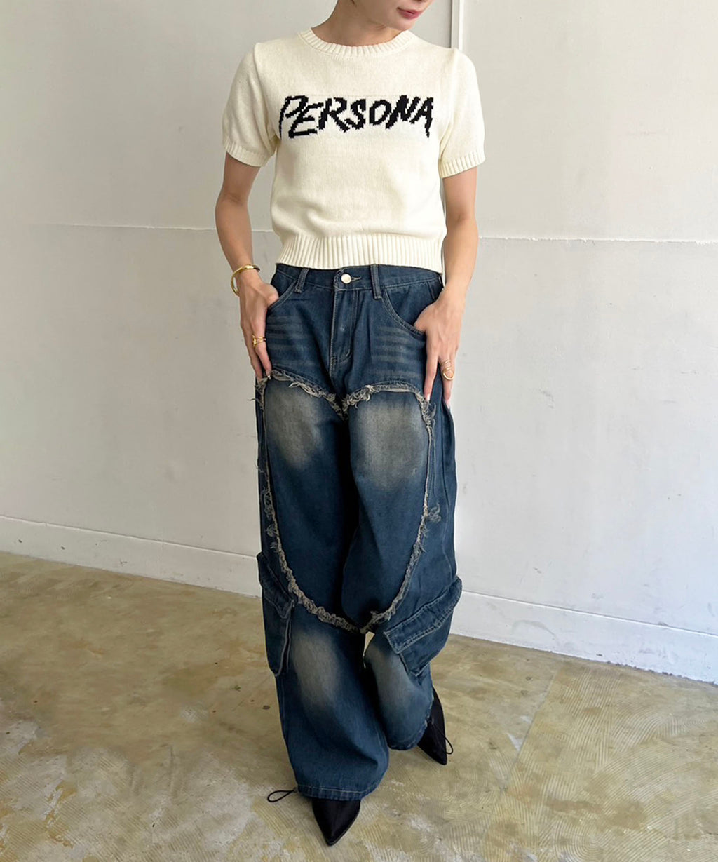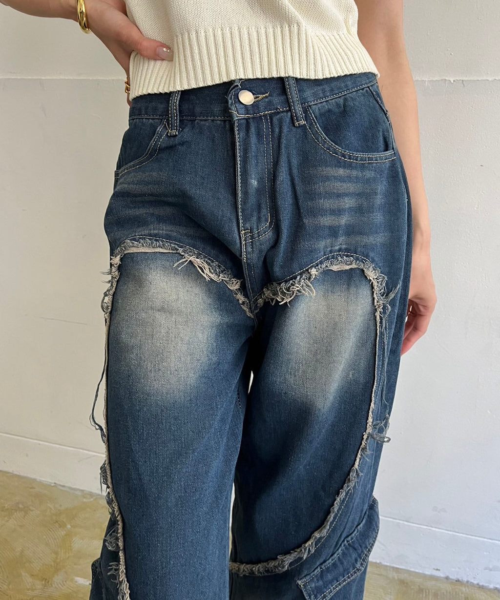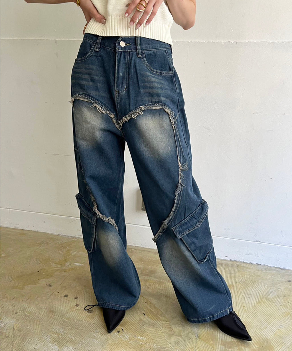 "Close your legs and a heart appears!? Impactful cargo denim pants."