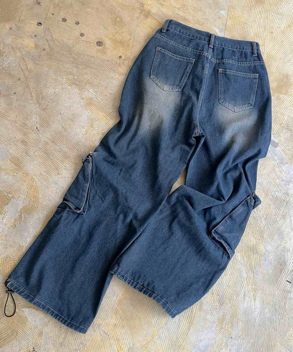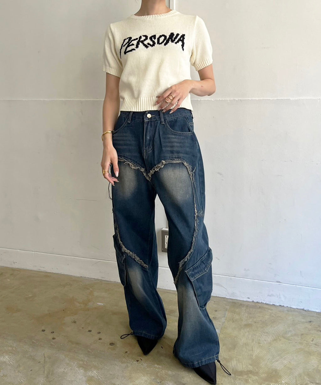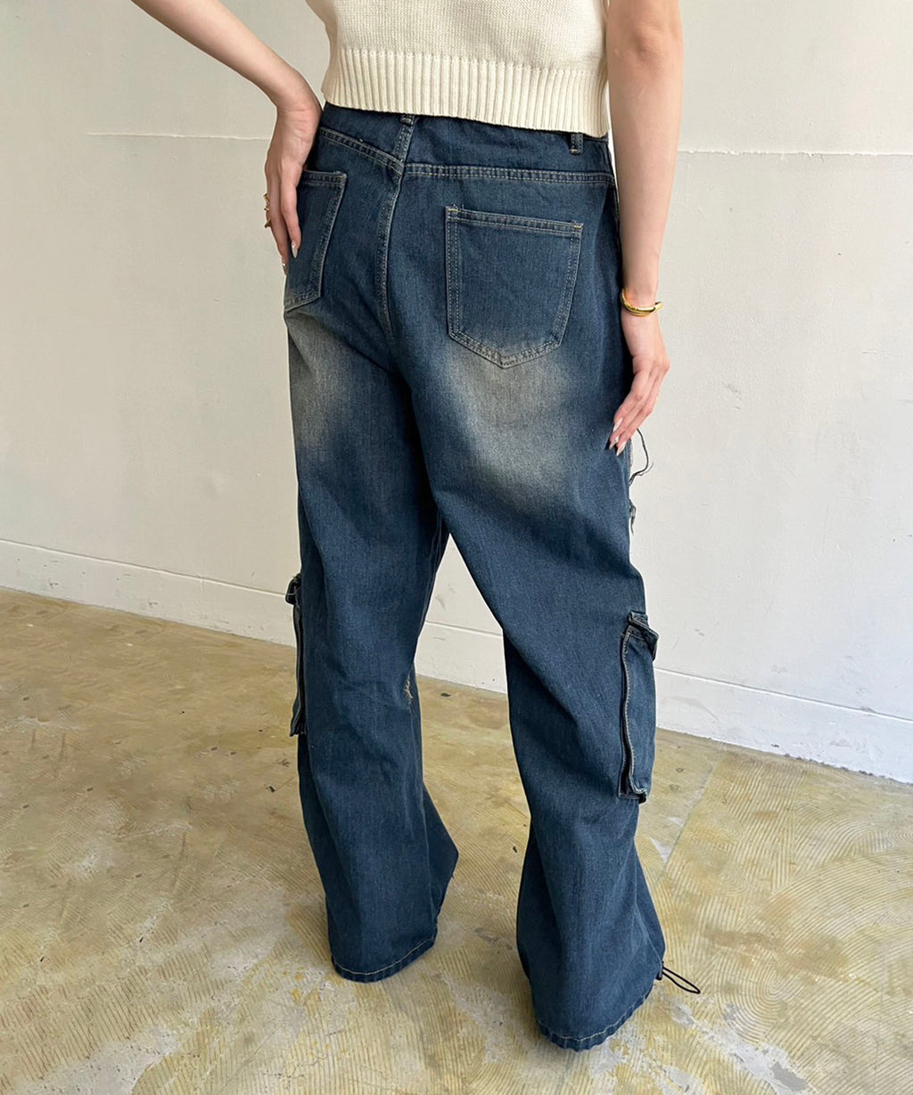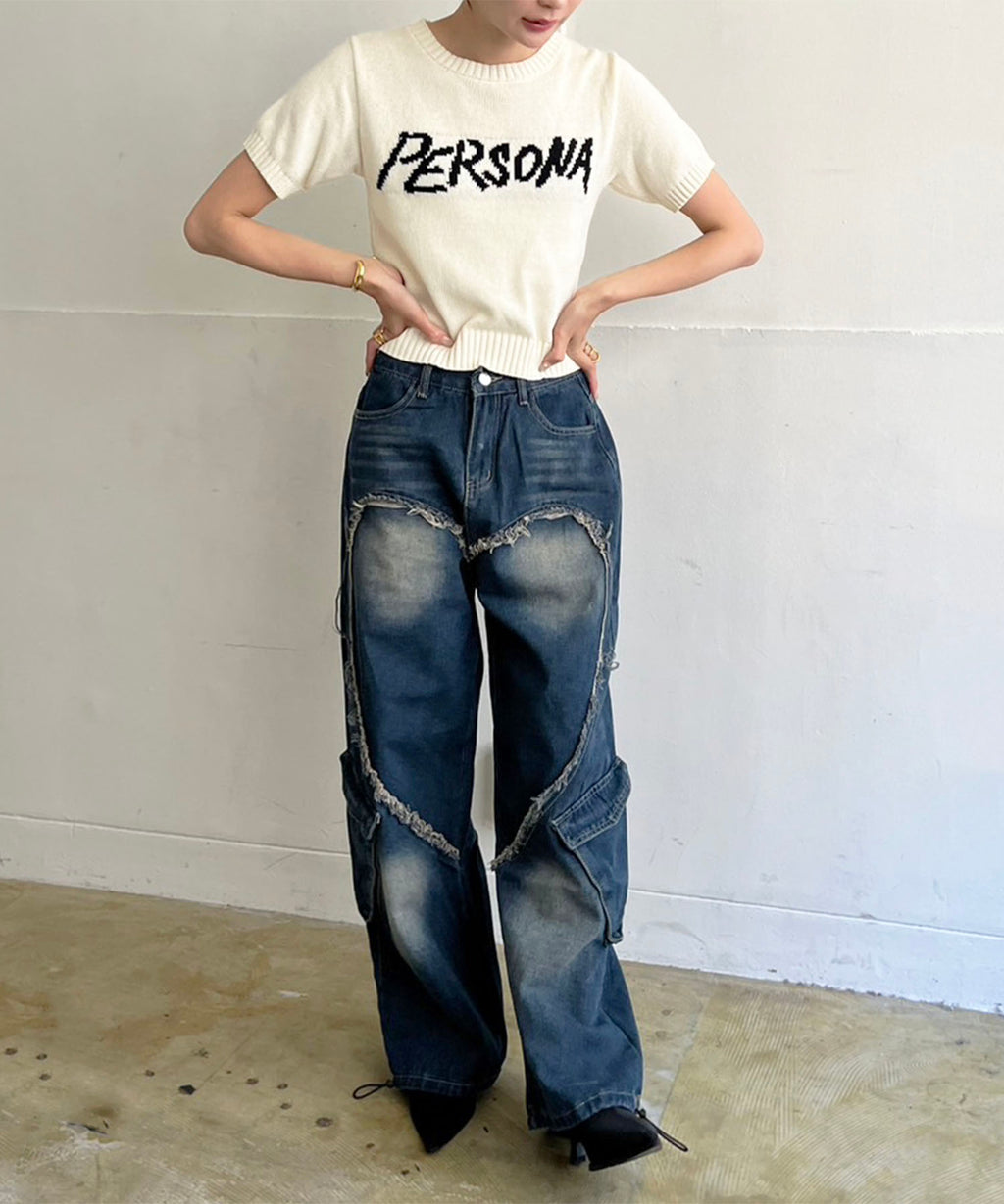 "Close your legs and a heart appears!? Impactful cargo denim pants."