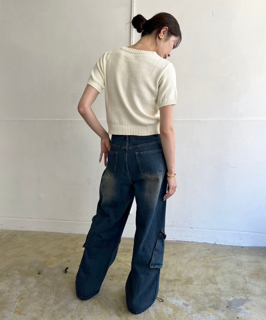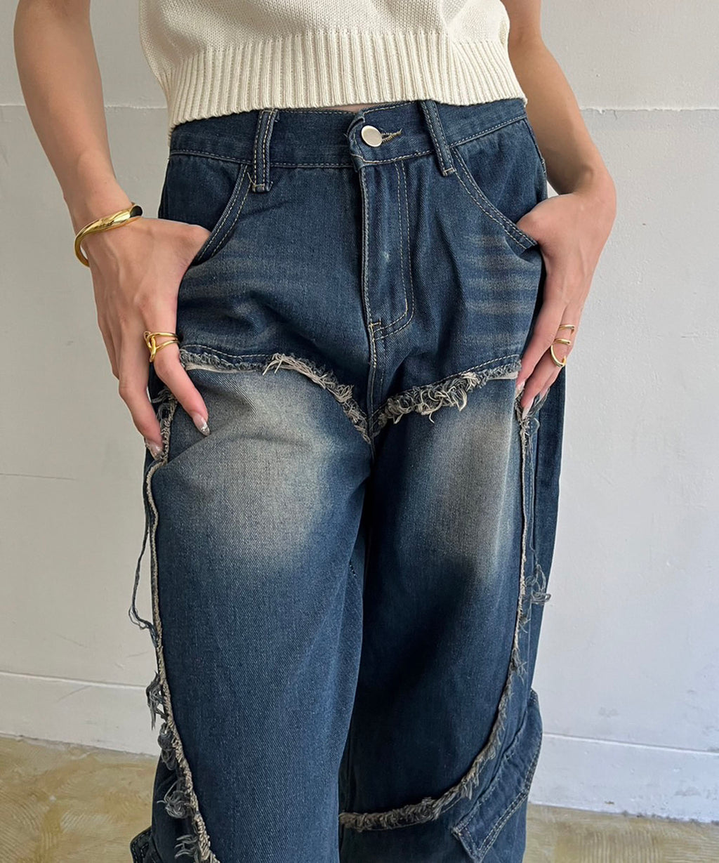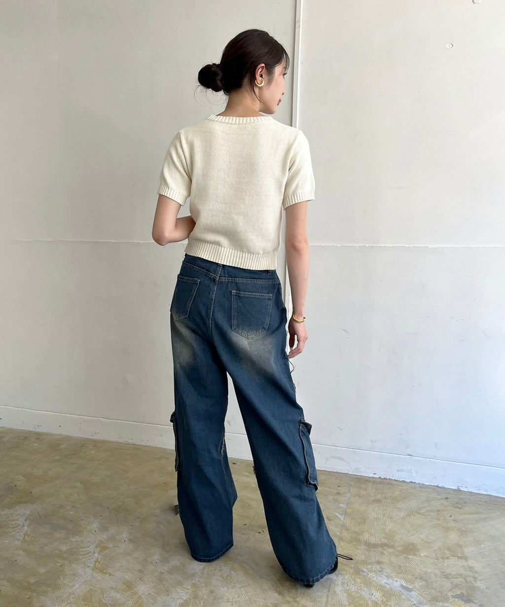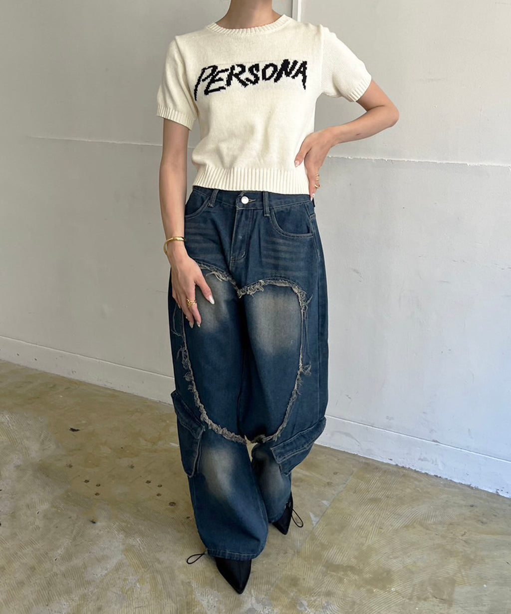 "Close your legs and a heart appears!? Impactful cargo denim pants."
