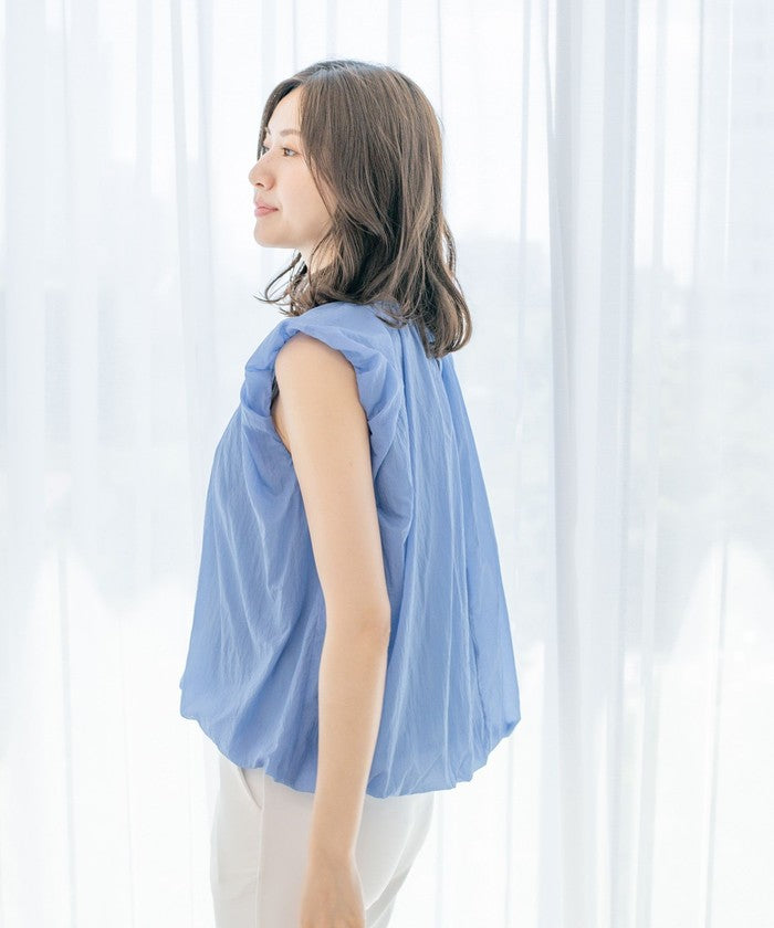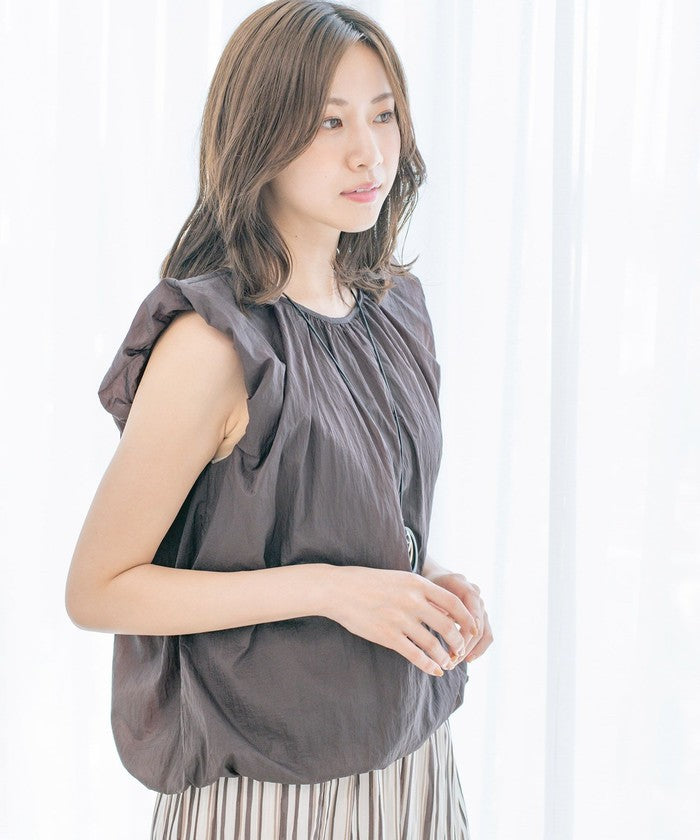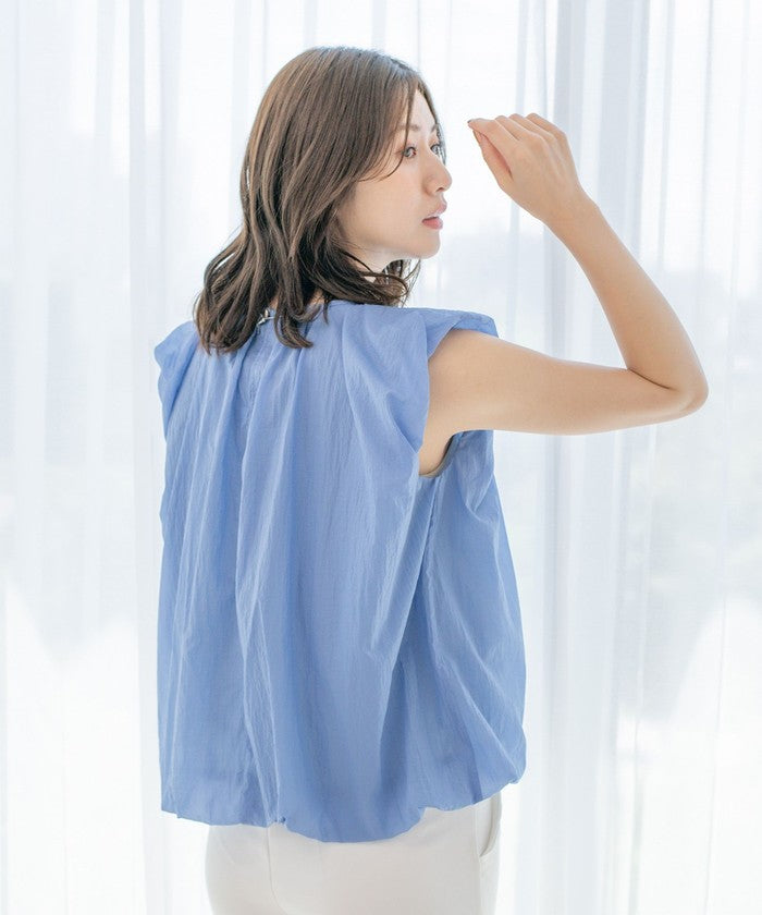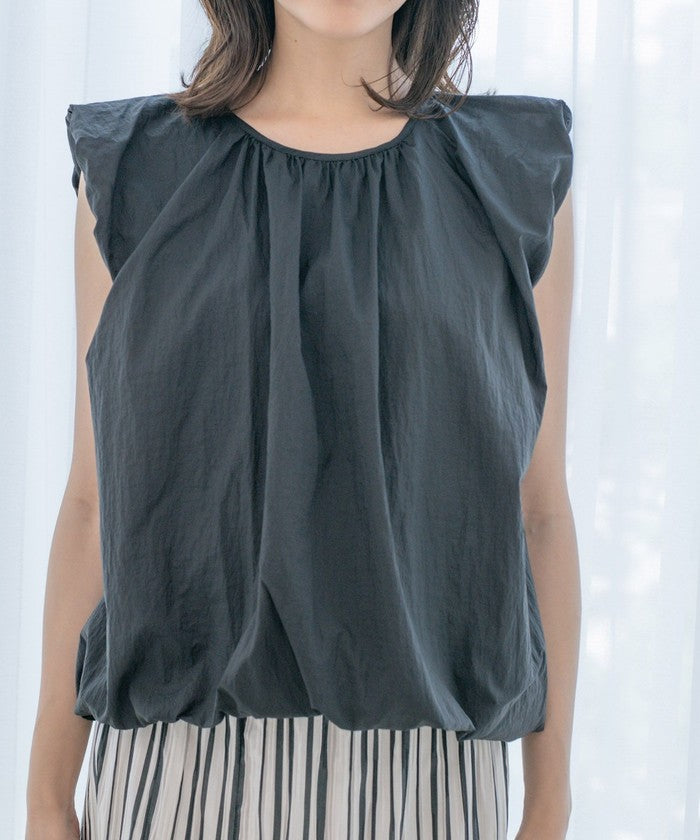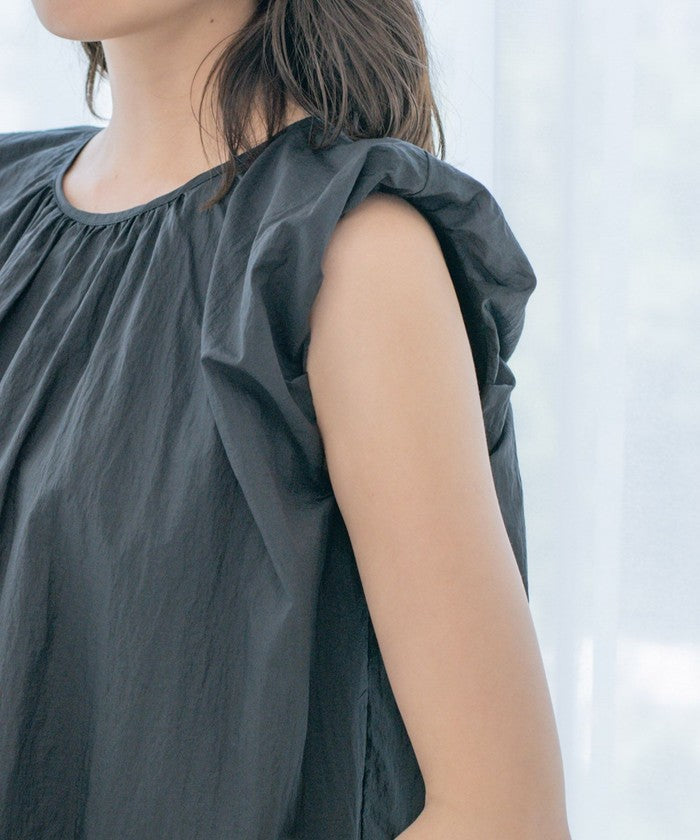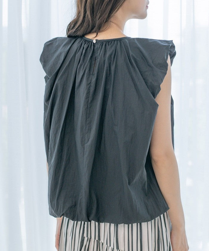 A sleeveless design with gathered details for a refreshing look.