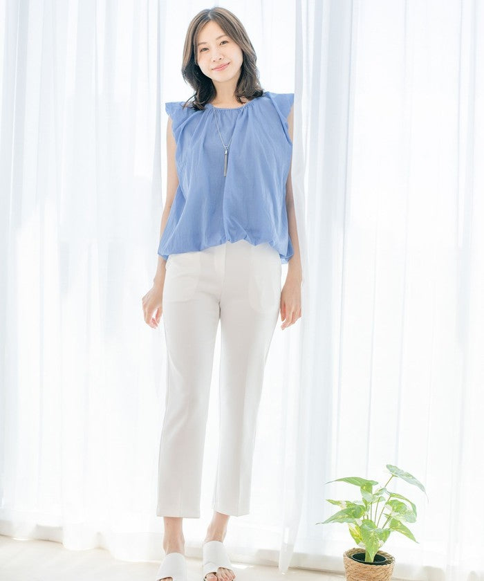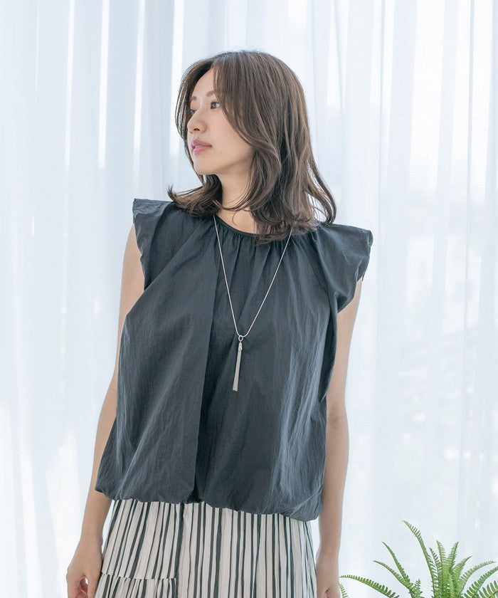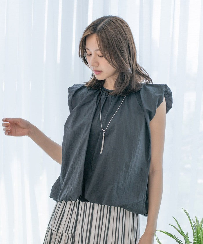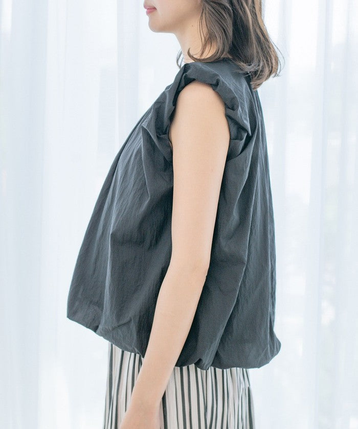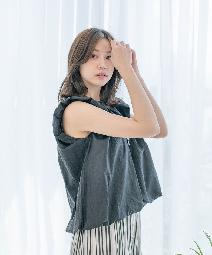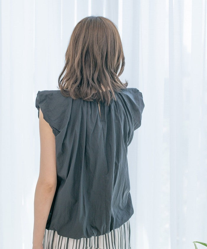 A sleeveless design with gathered details for a refreshing look.