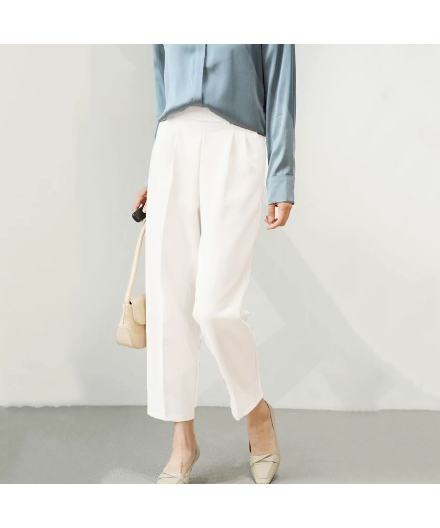 The beautifully tapered silhouette with a center press that gives a neat appearance and a focus on the waistline is also excellent for creating a beautiful leg effect.