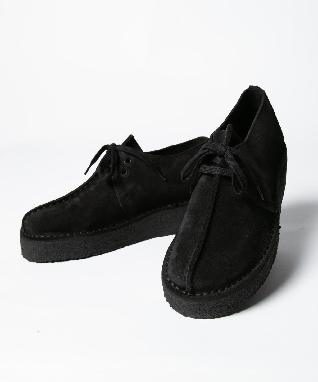 The soft black suede upper and cushioned crepe sole provide a comfortable wearing experience.