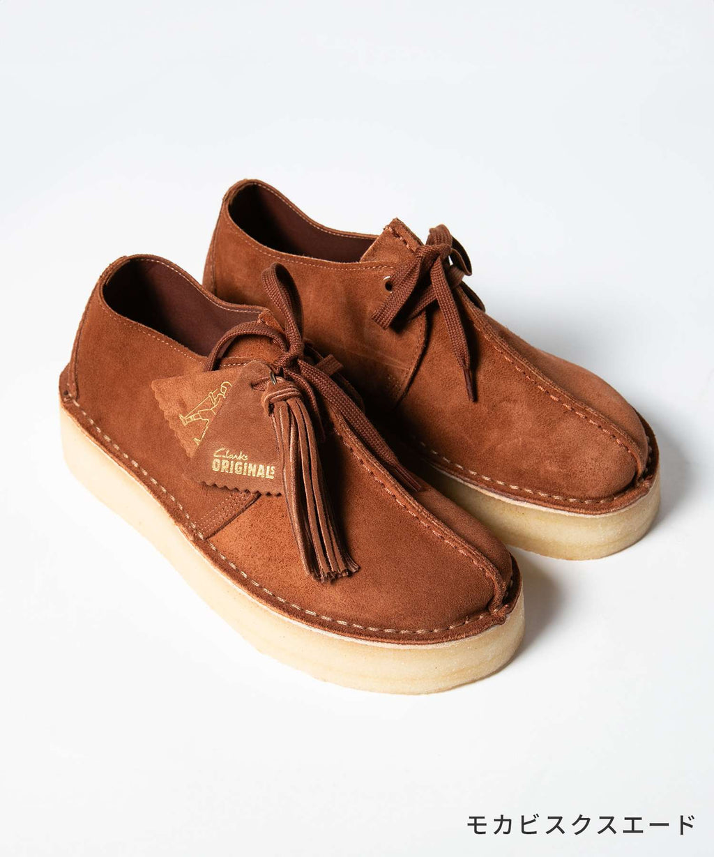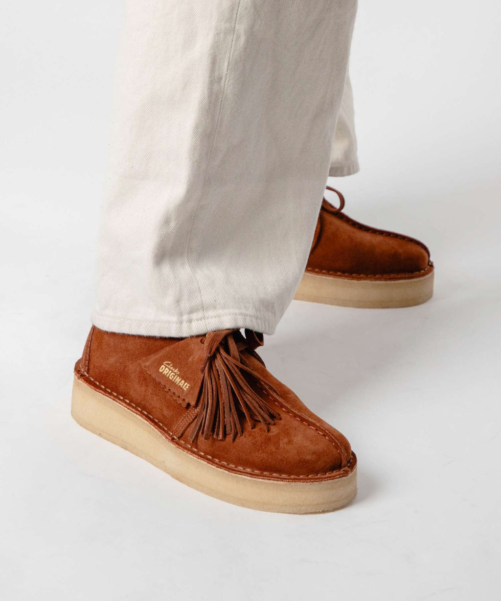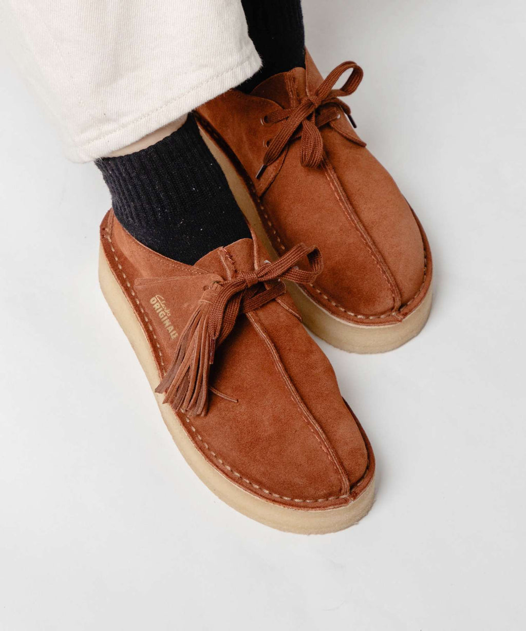 Combining the design of Clarks' iconic shoes, the Desert Trek, creates a modern impression.