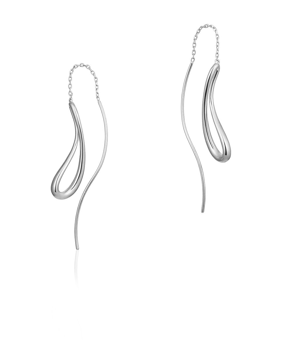 Earrings with a droplet motif featuring smooth lines and a sense of rhythm. The silver sheen gives a sophisticated impression to the ears. The length-adjustable chain earrings can be worn at your preferred balance. The item will be delivered set in a jewelry case. It comes with a shopper and seal, making it suitable for gifts as well. *Please note that the specifications of the included items may change without notice.
