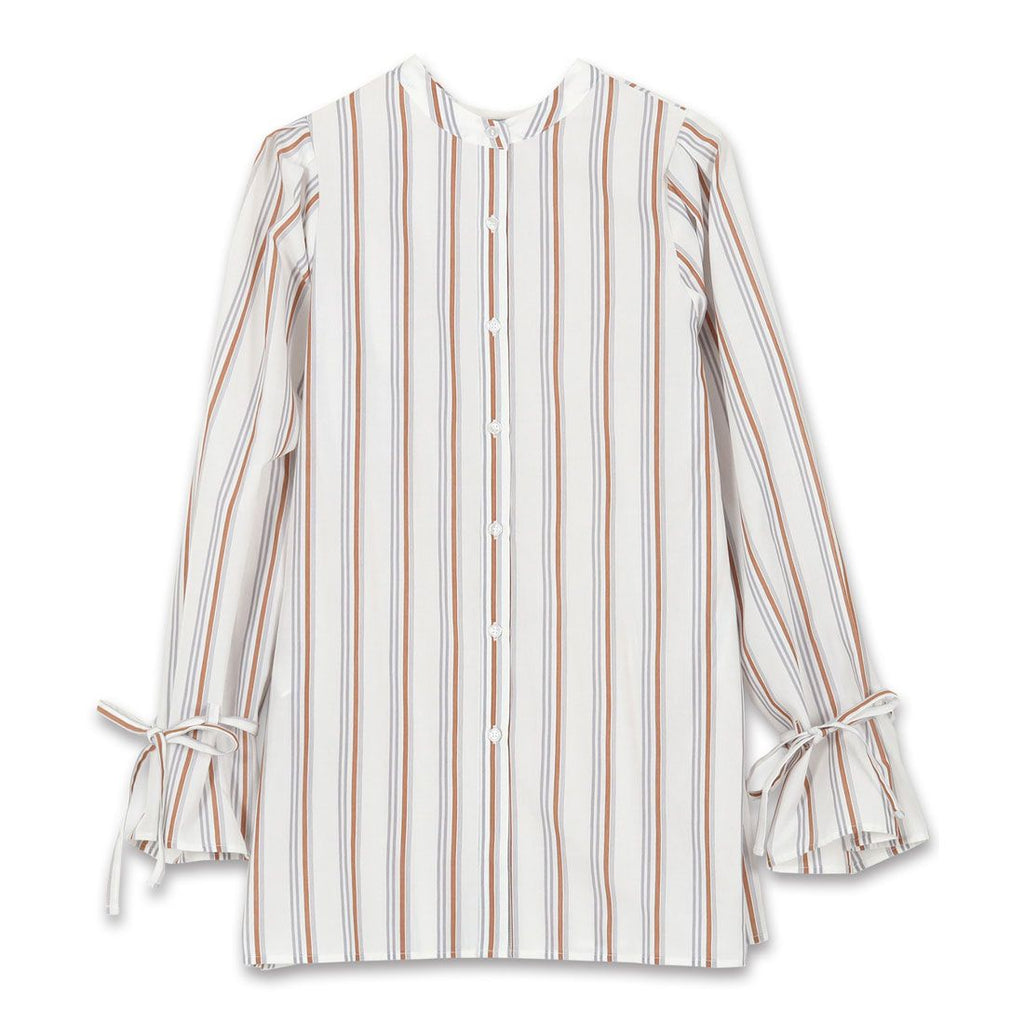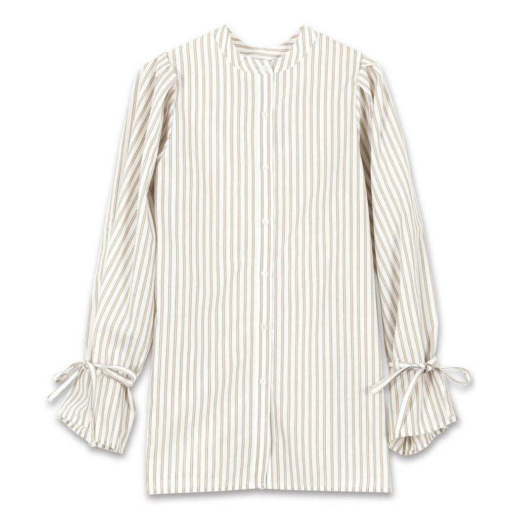 Striped Sleeve Ribbon Blouse [C5896] Women's Tops, Outerwear, Long Sleeves, Loose Fit, Casual, Spring, Band Collar, Candy Sleeves, Beautiful, Casual, Adult, Figure-Concealing
