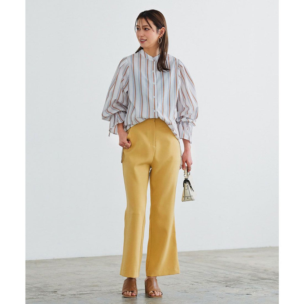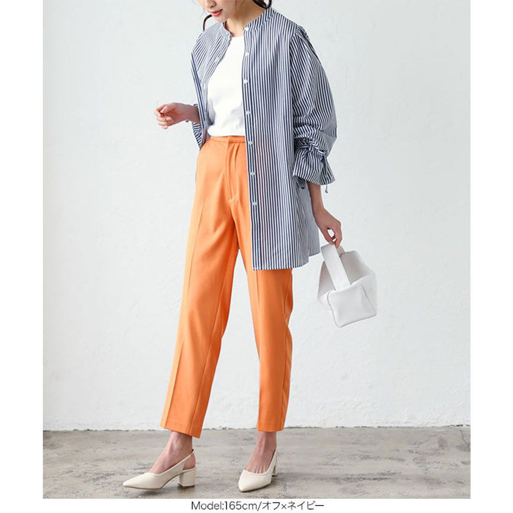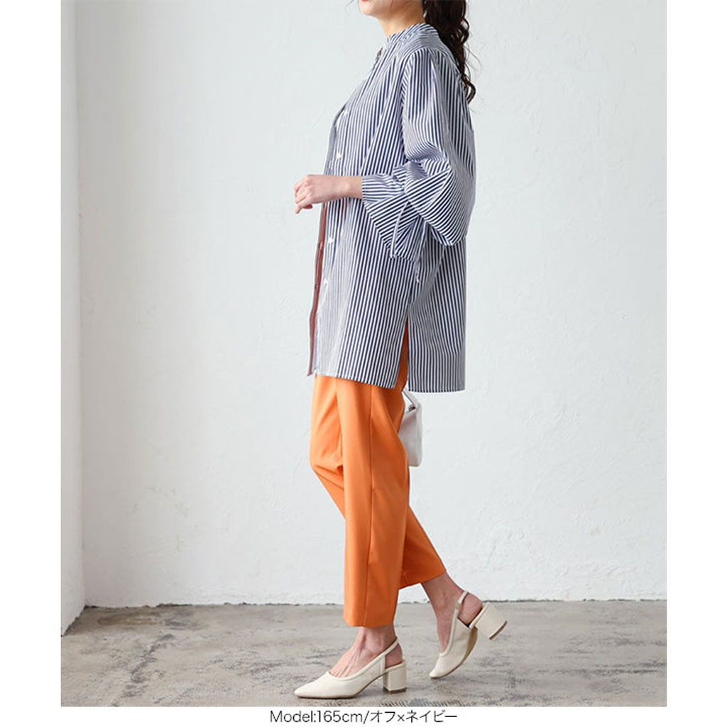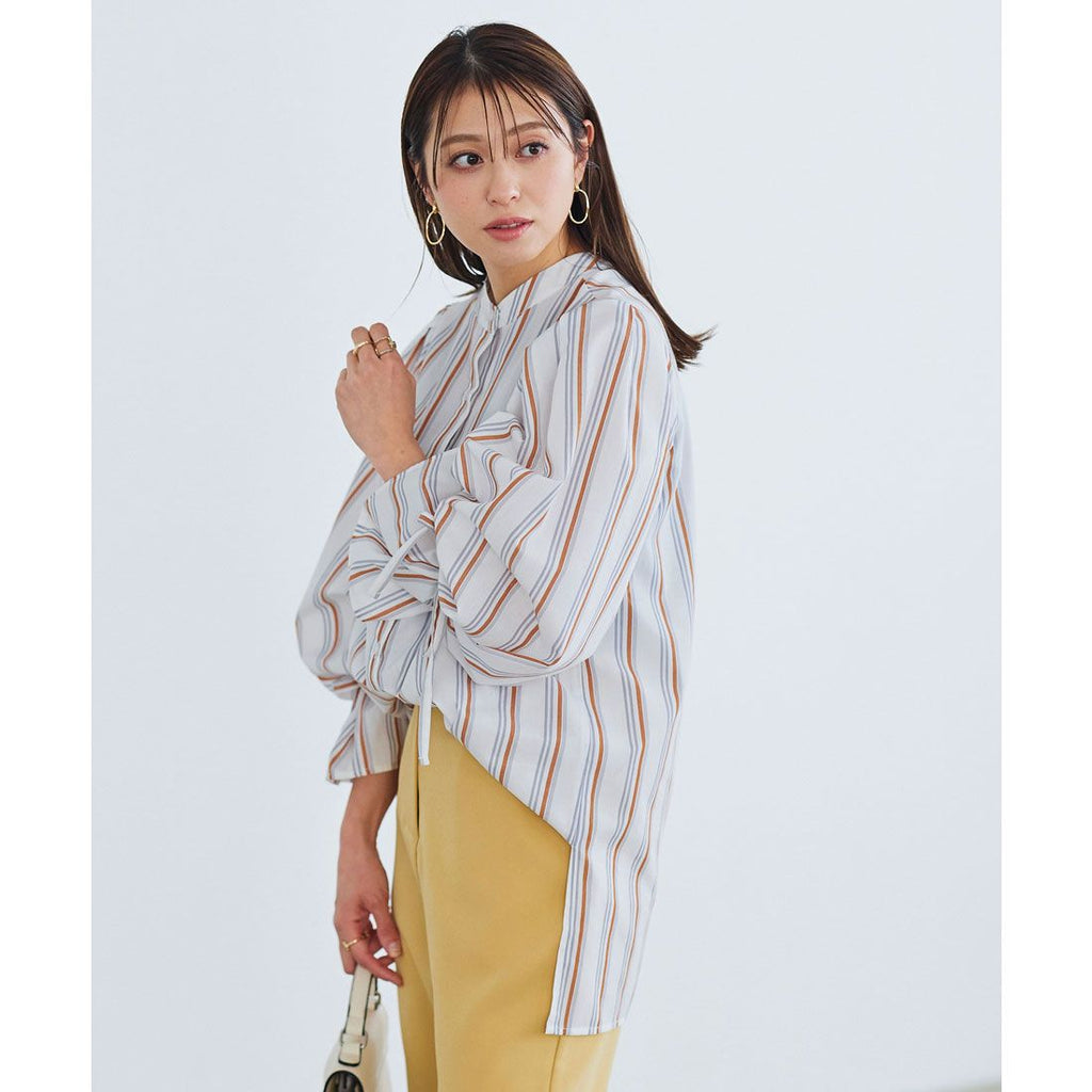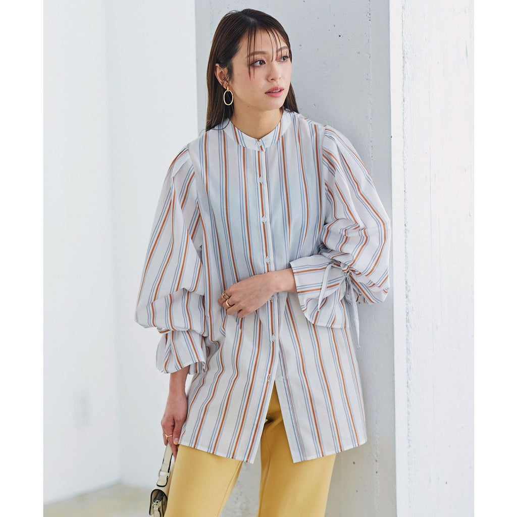| Material | 80% polyester, 20% cotton *[Stretch] None/[Light color transparency] Slightly transparent/[Dark color transparency] Slightly transparent/[Lining] None [Country of origin] China ★ Striped sleeve ribbon blouse [C5896] Women's tops, outerwear, long sleeves, loose, casual, spring, band collar, candy sleeves, neat, casual, adult, figure-concealing |