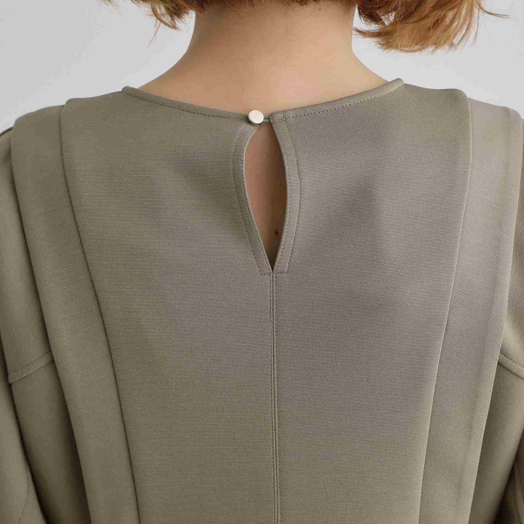 Using a moderately textured ponchi jersey material, it maintains a beautiful silhouette while having a draped feel.