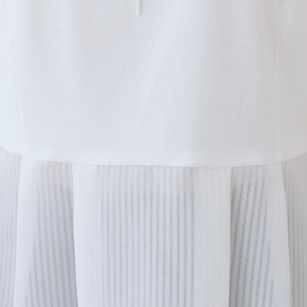 The hem section uses a material with a moderate transparency and a striped texture that adds expression even when layered.