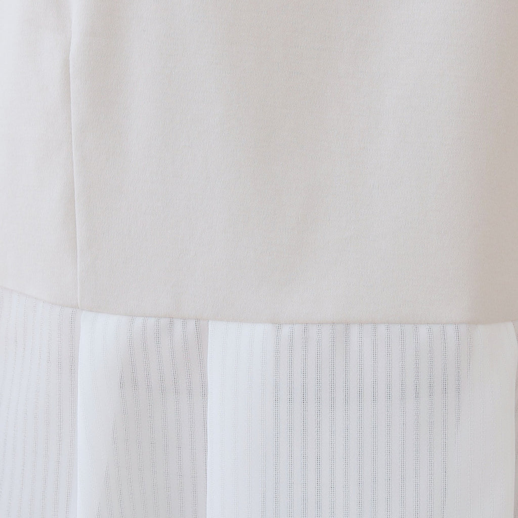 The combined fabric material is a lightweight, dry-feel georgette, expressed with stripes in a textured weave resembling a crêpe structure.
