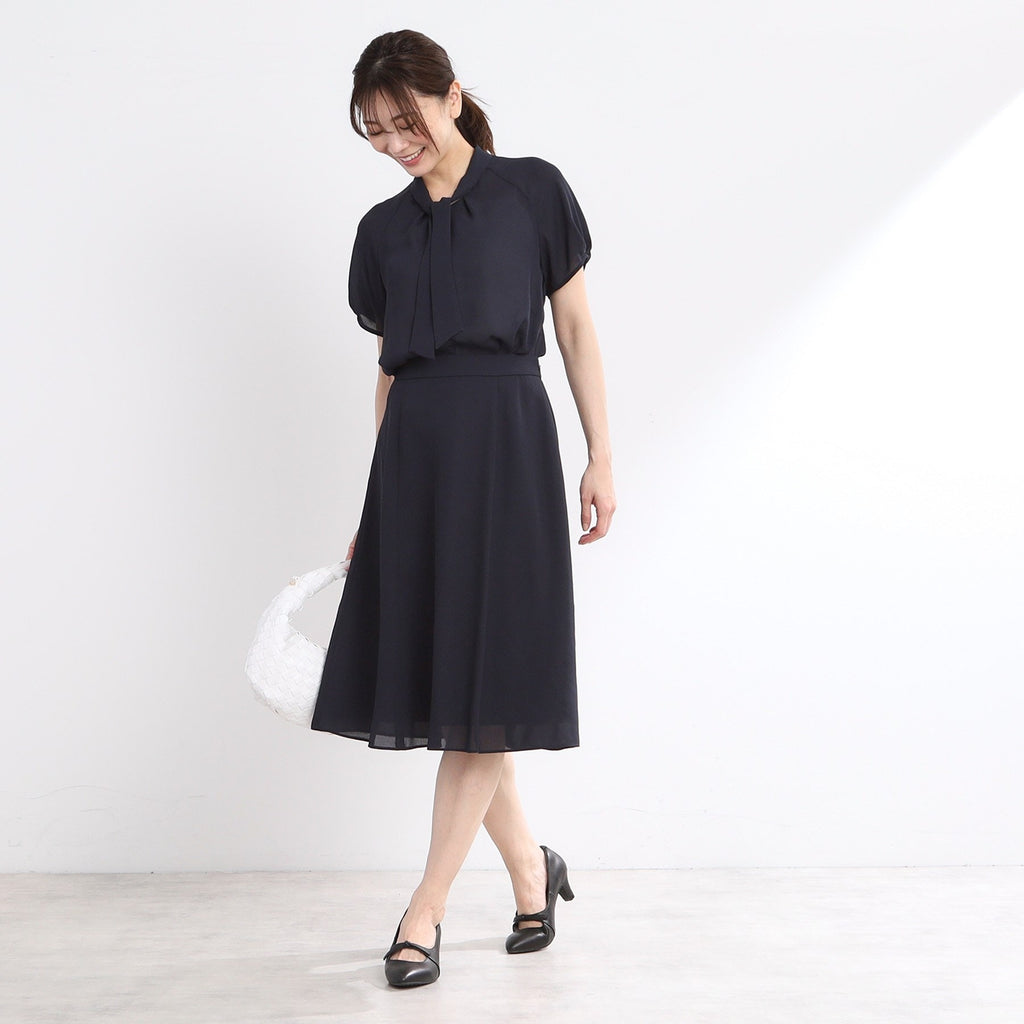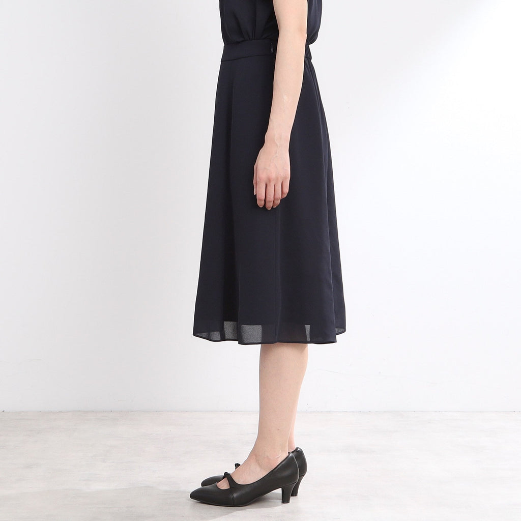 It has a classic silhouette that is easy to match with jackets, and can also be worn as a set with a skirt made of the same material.
