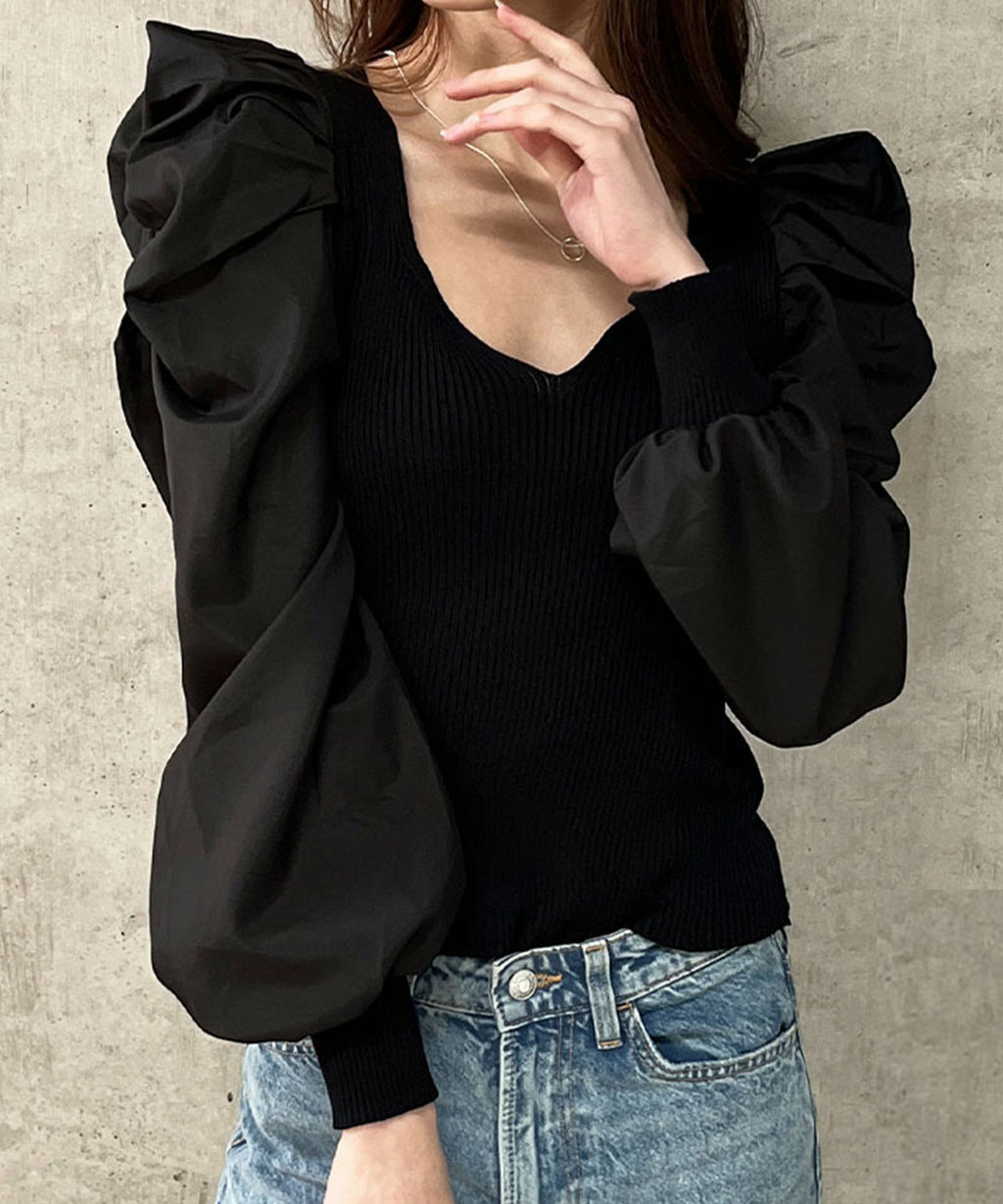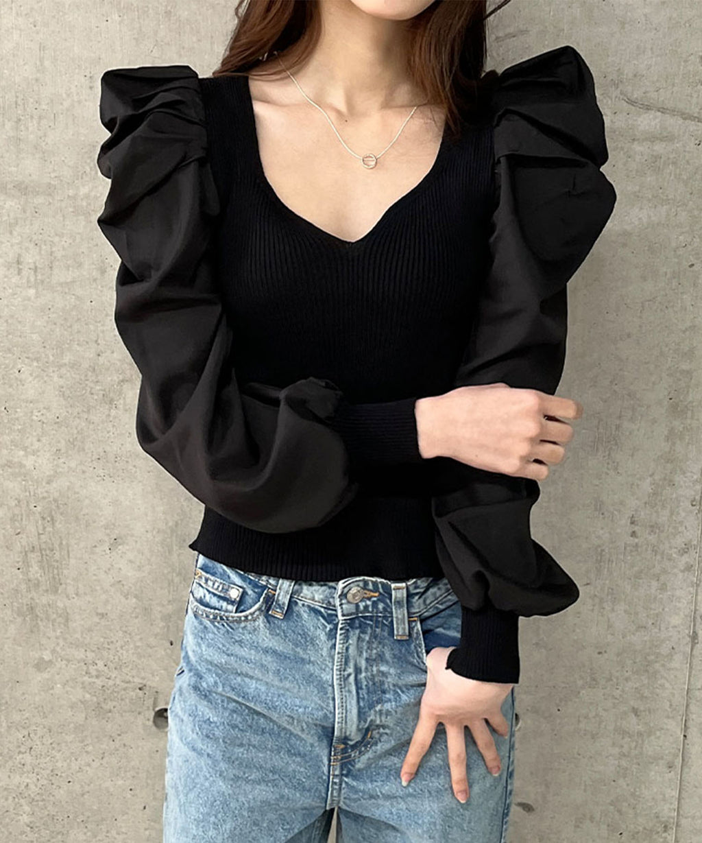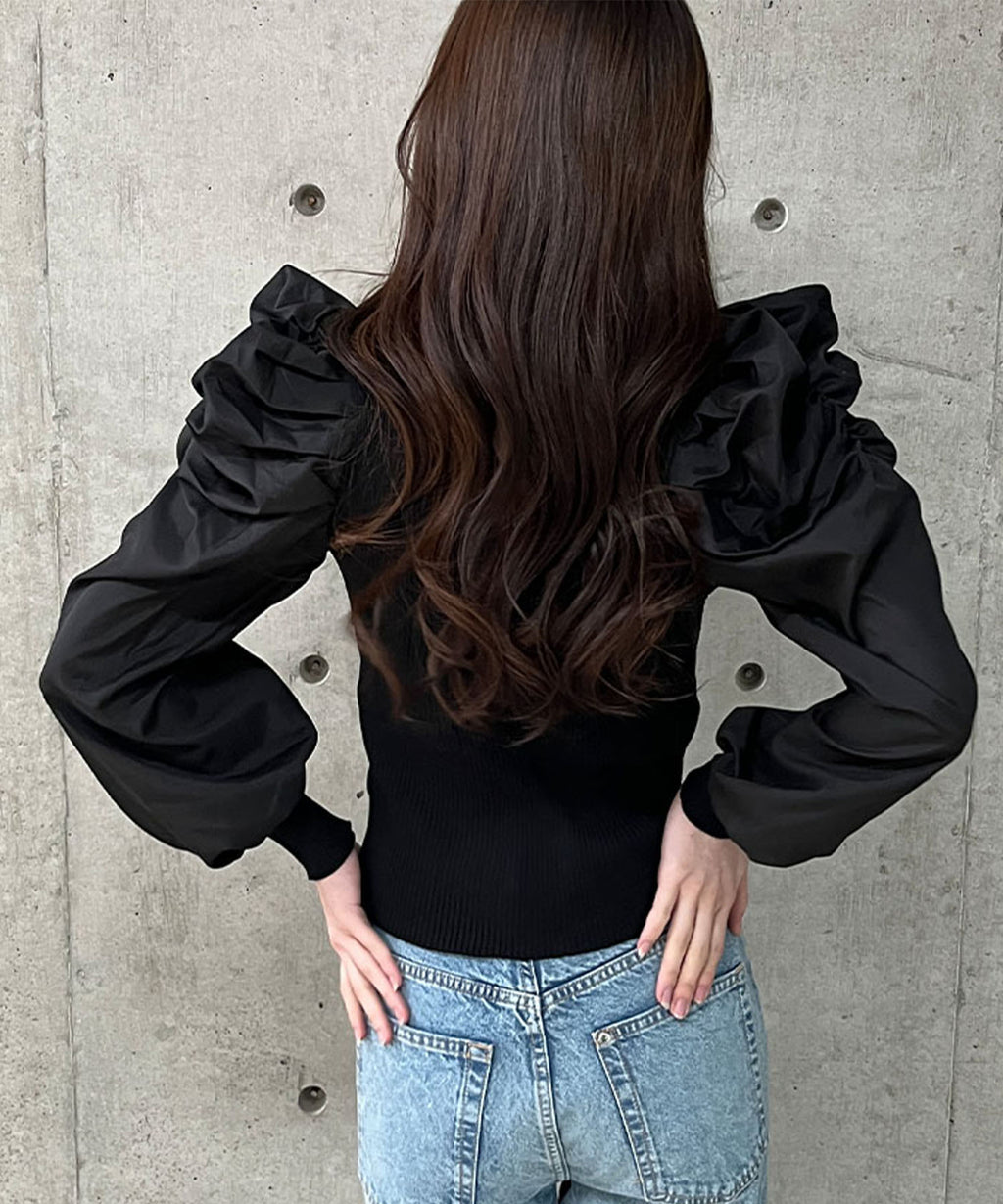 A top with voluminous gathered sleeves that serves as an accent, showcasing exceptional femininity!