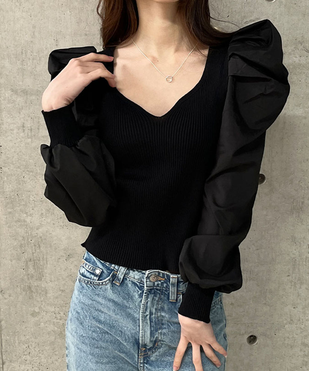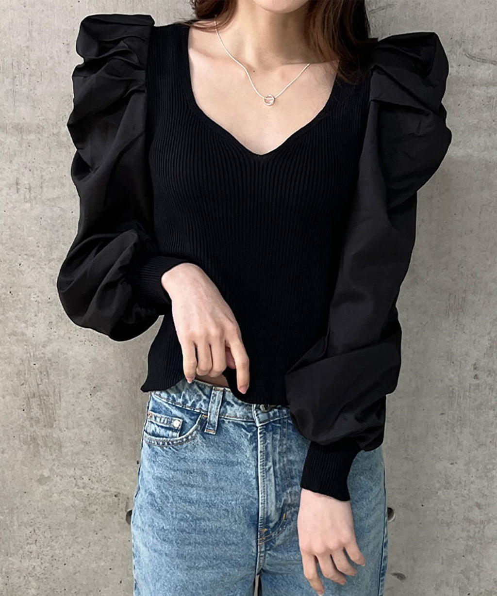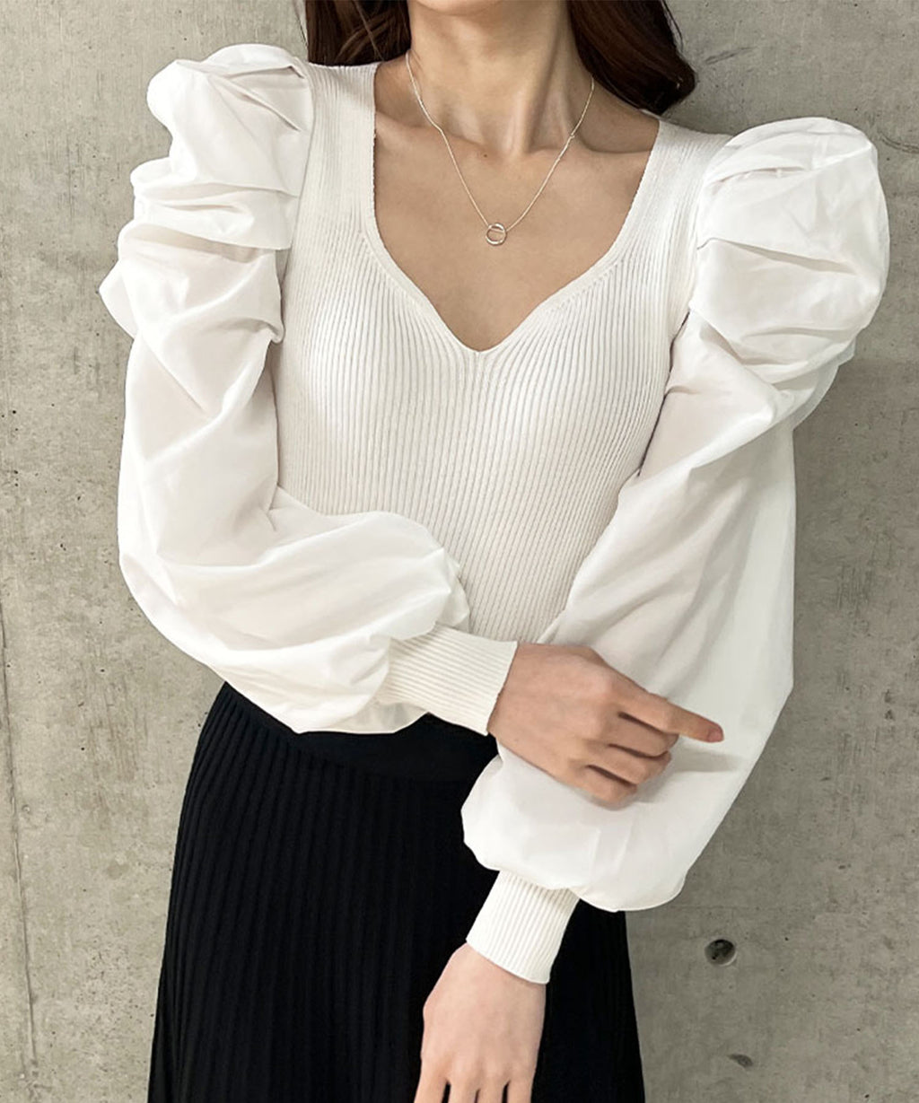 A top with voluminous gathered sleeves that serves as an accent, showcasing exceptional femininity!