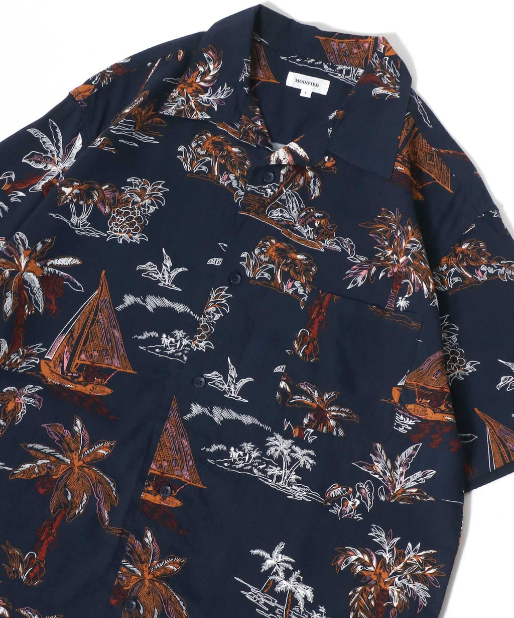 2025SS rayon aloha shirt/open collar/shirt with an open collar