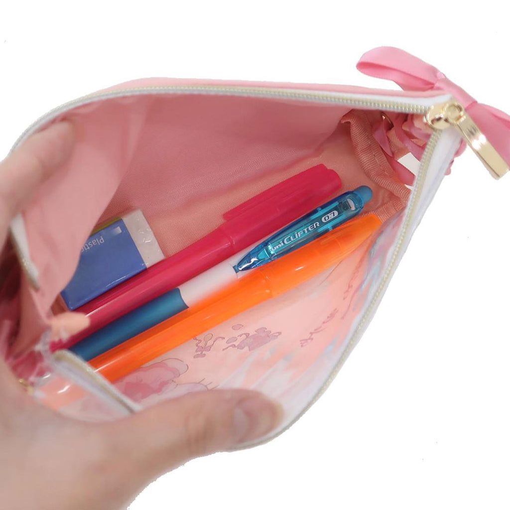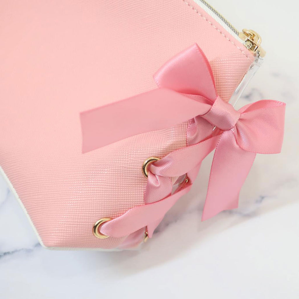 This is a [lace-up ribbon pen case] made with trendy transparent material.