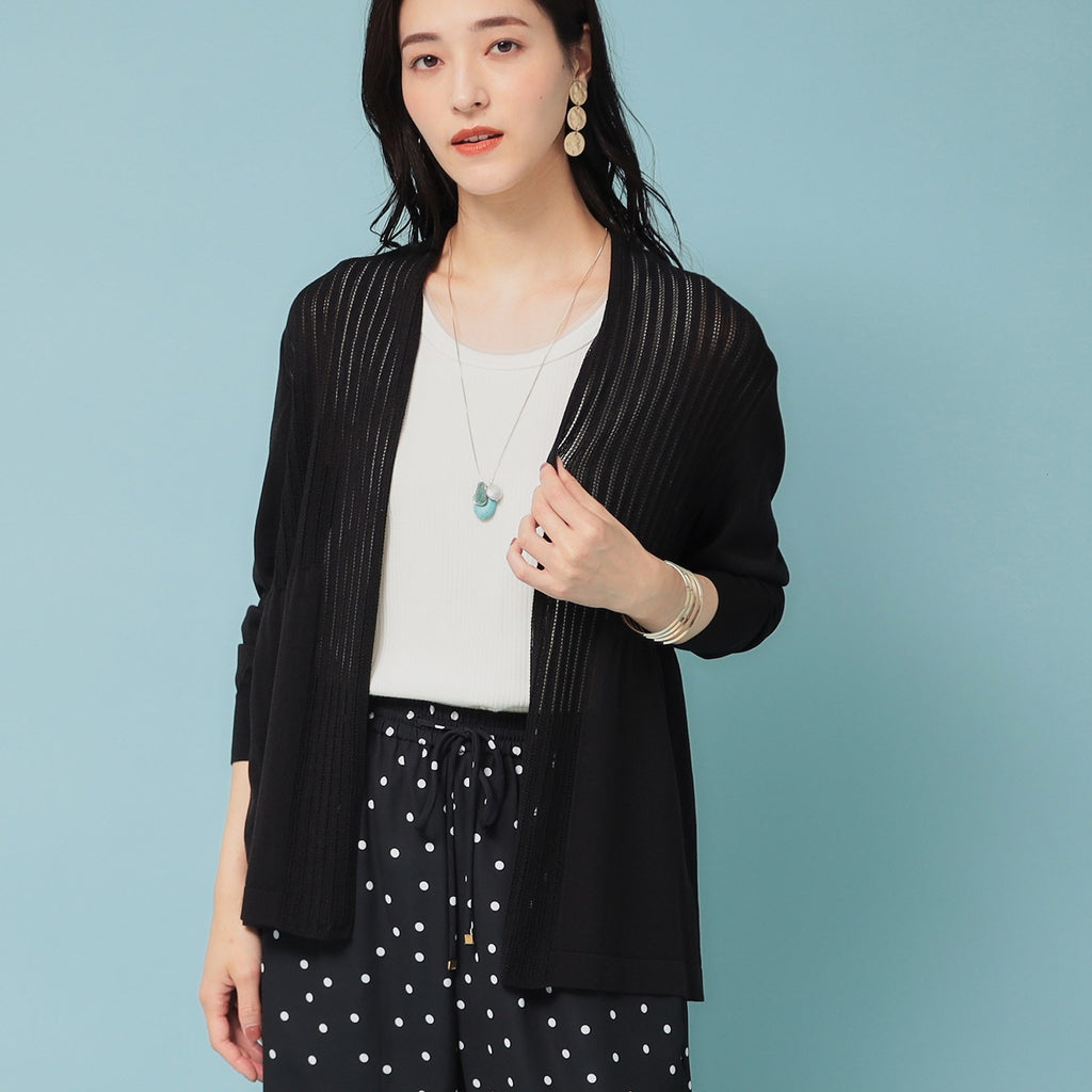 It is a buttonless type, so you can easily throw it on, and it has been tailored to be worn for a long time from early summer to late summer.