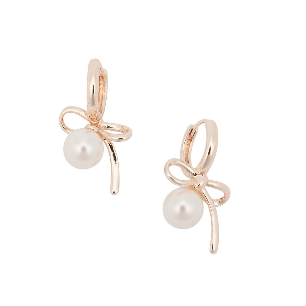 Magazine de Mode Chou Chou Earrings Nickel-Free metal Pearl Ribbon Hoop Earrings OSWY