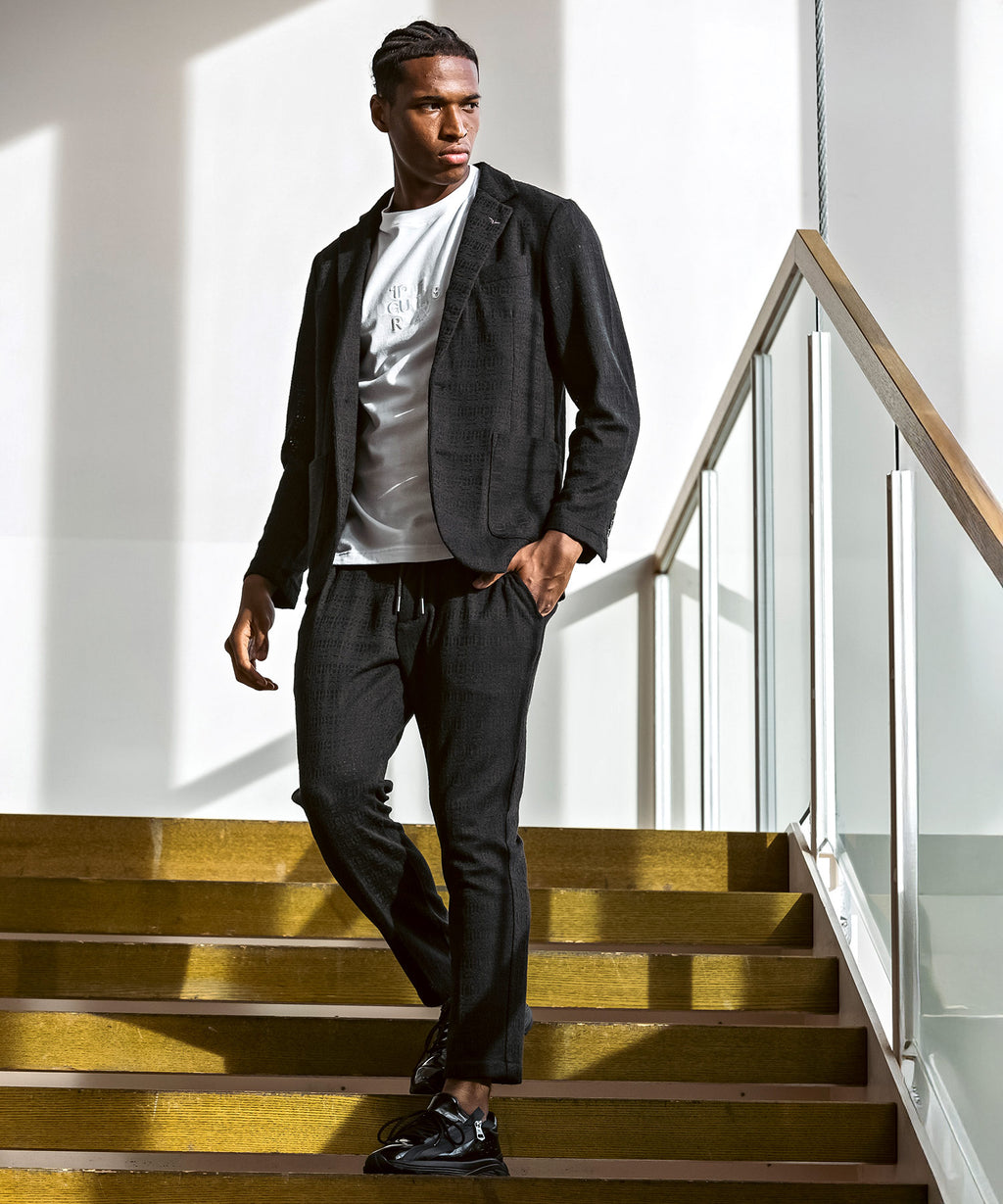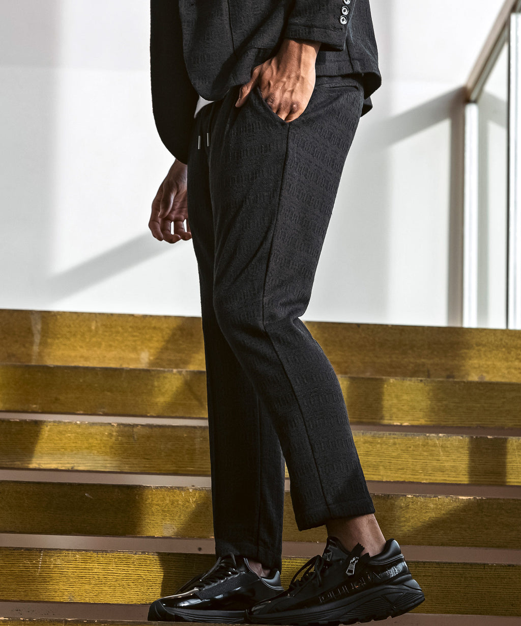 Long pants made with jacquard fabric woven exclusively by the brand.