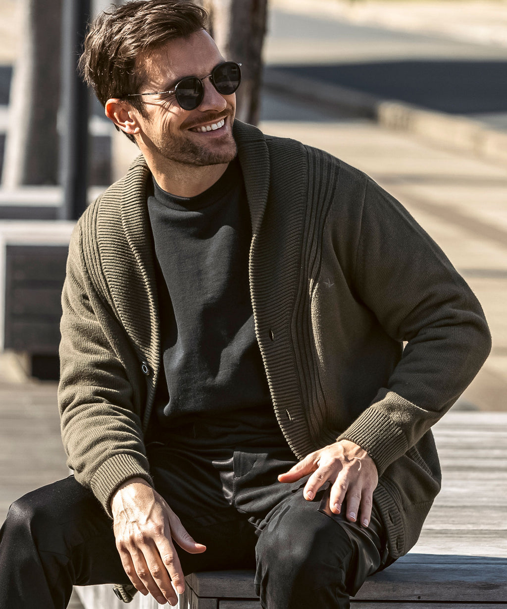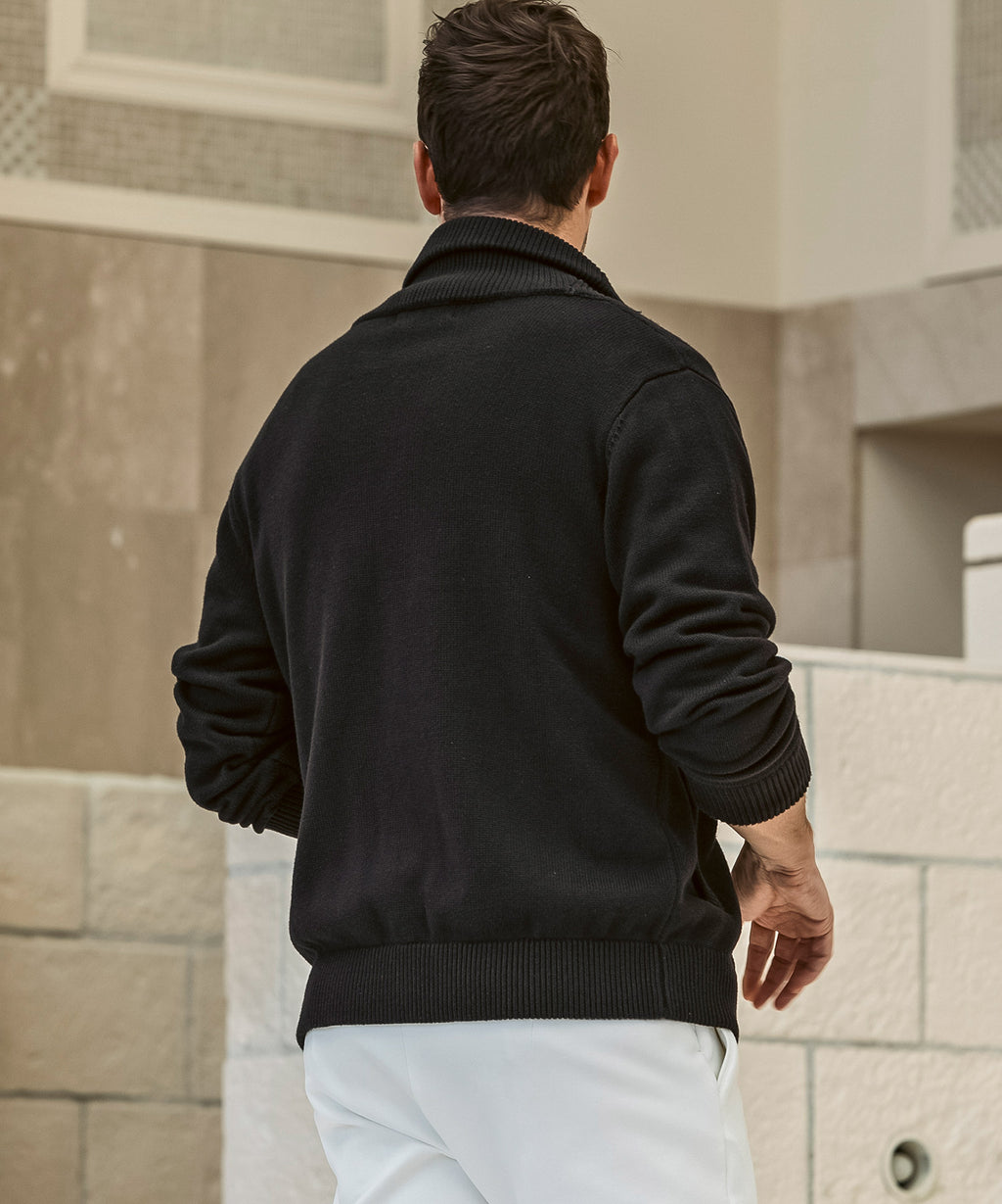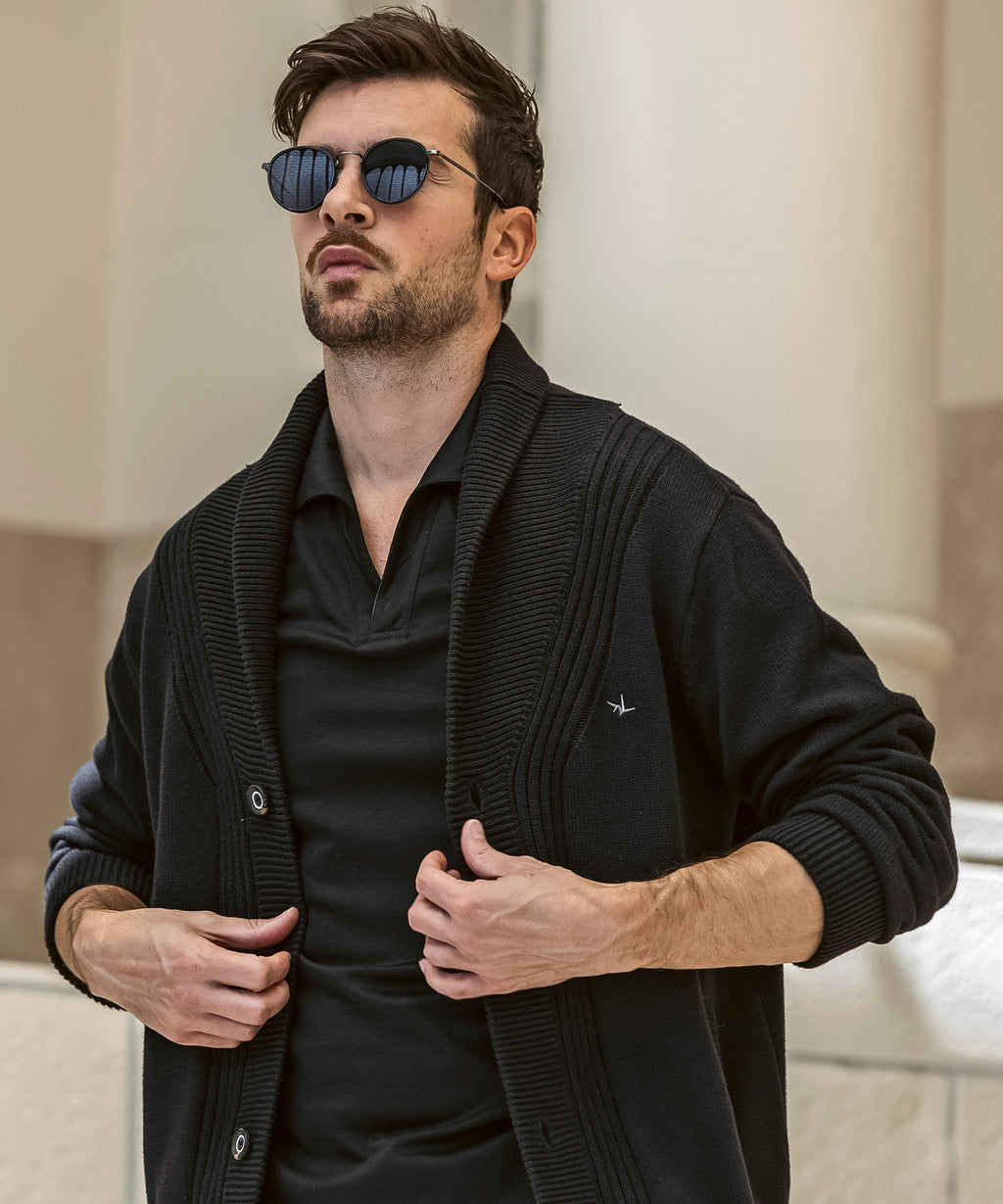 It combines the neatness reminiscent of a jacket with the soft comfort unique to knitwear.