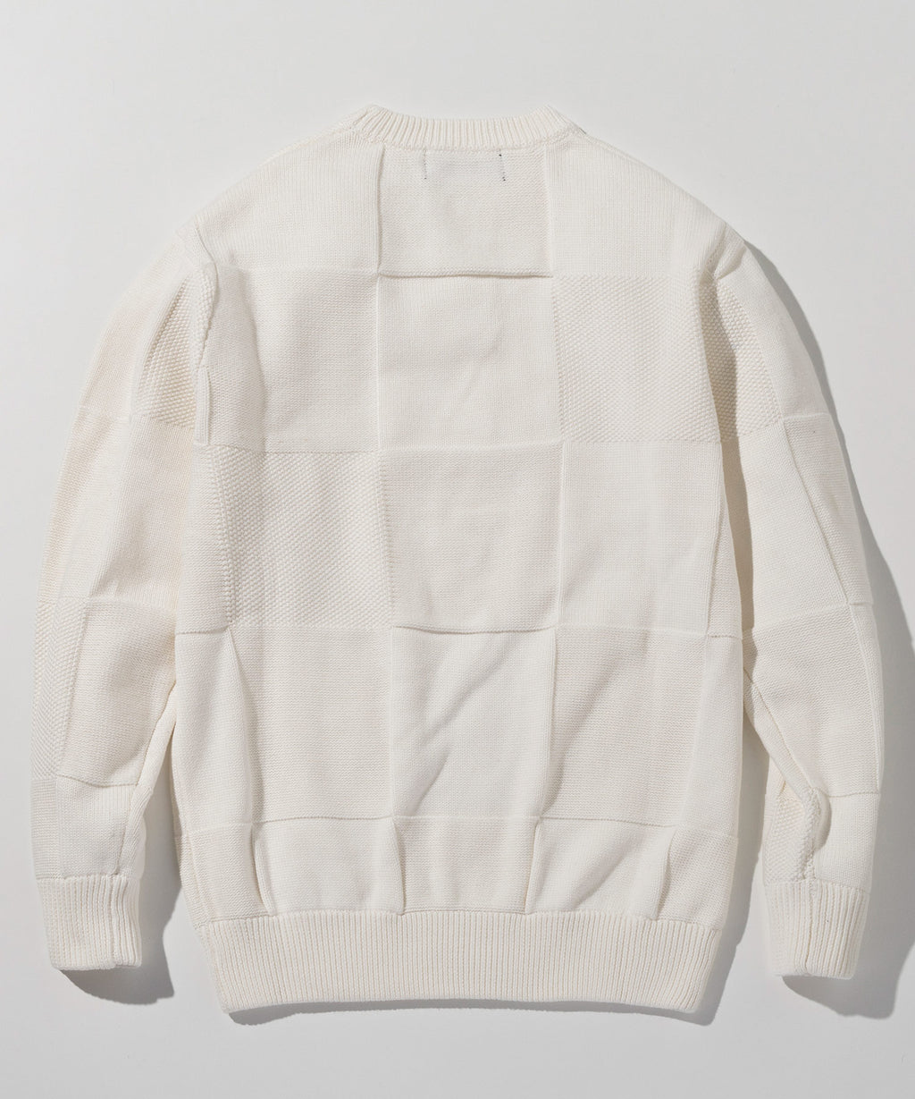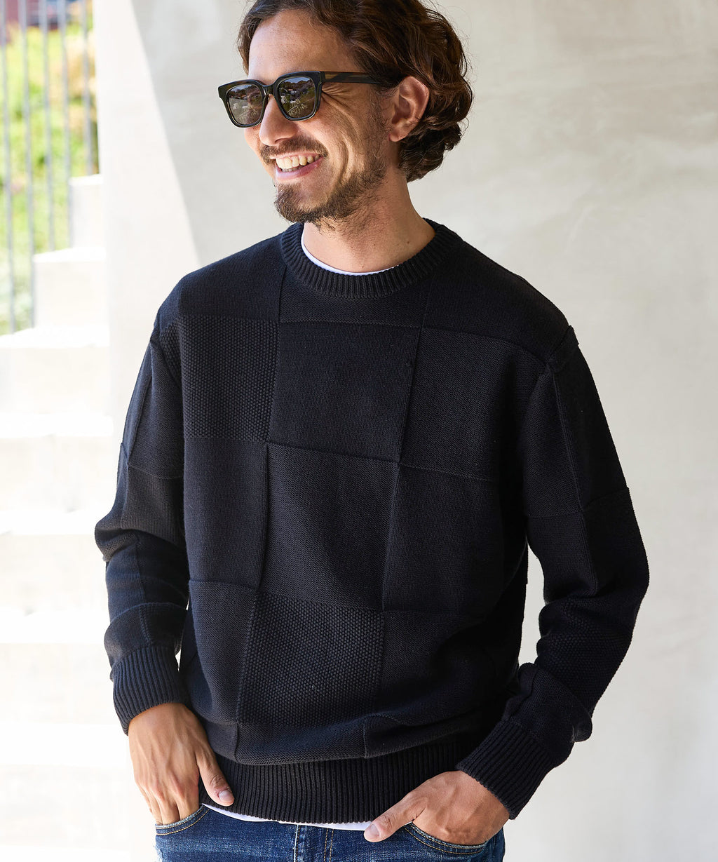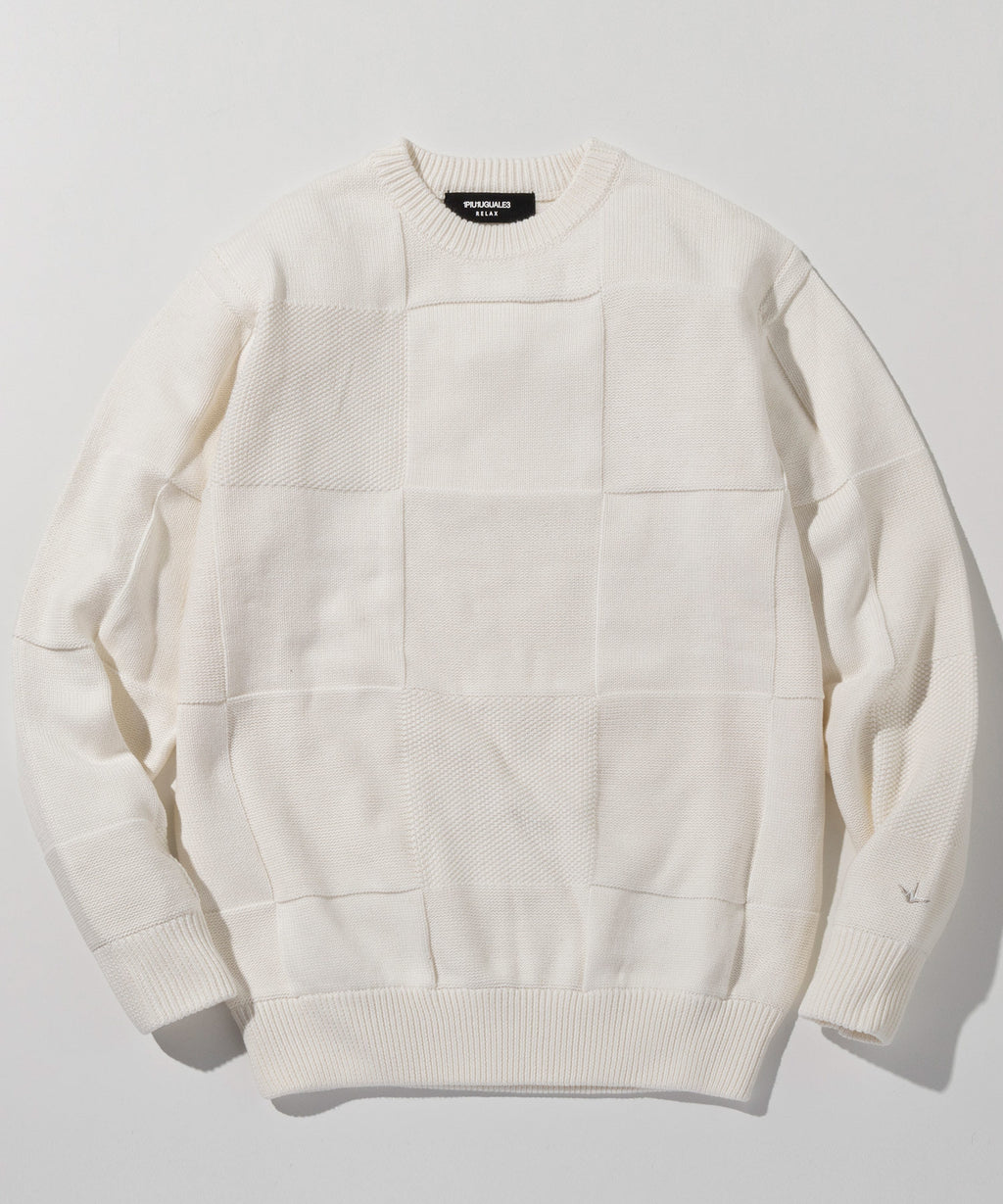 Uno Piu Uno Uguaale To Re Rirakkusu 1PIU1UGUALE3 RELAX Block Pattern Heavyweight Crew Neck Knit