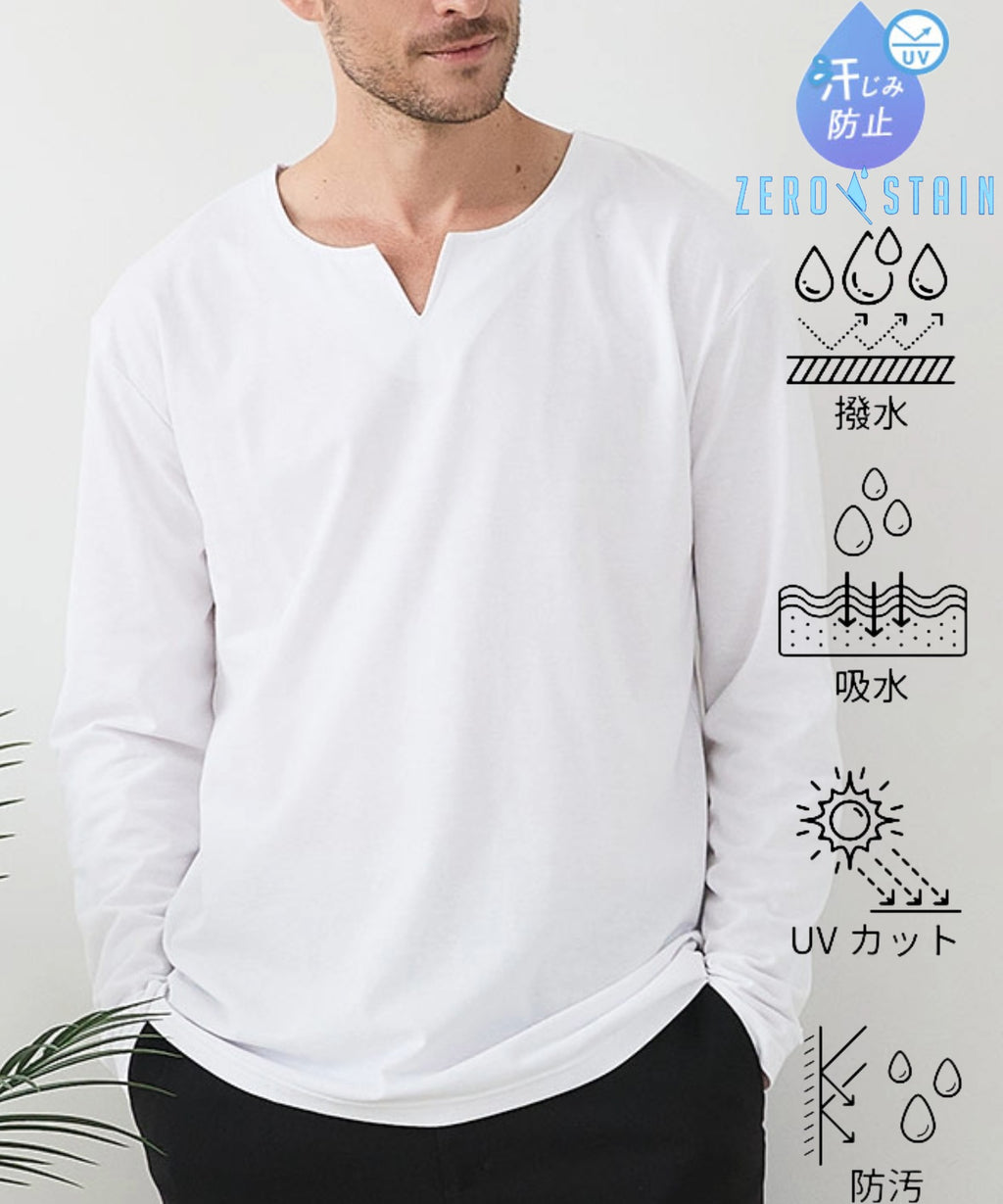 Jeans Mate Sweat Stain Prevention Key Neck Long T ZERO STAIN Zero Stain