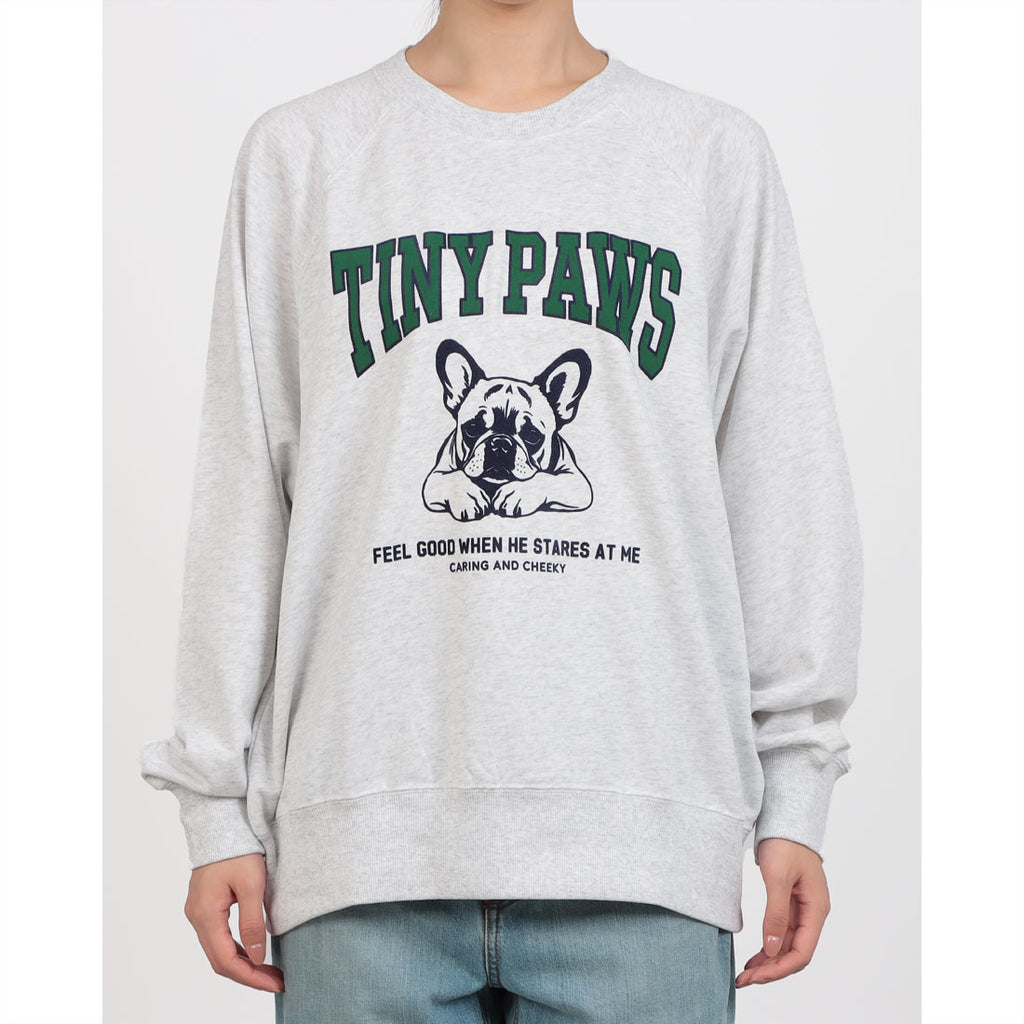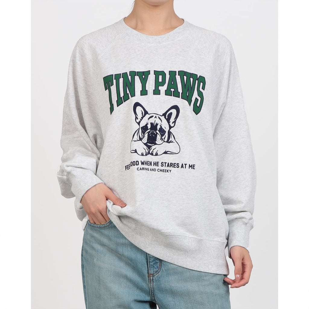 ◆ Trendy piece with a loose silhouette, college print, and French Bulldog design ◆