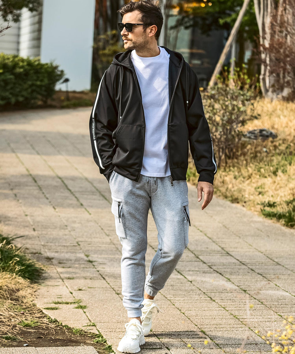 The cargo pockets on both sides add a masculine military element.