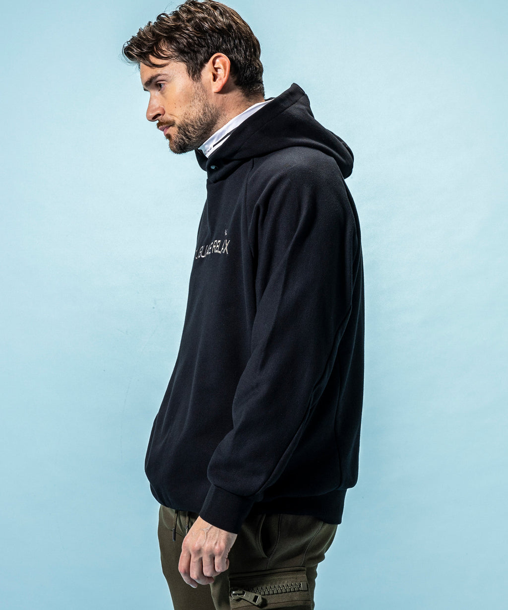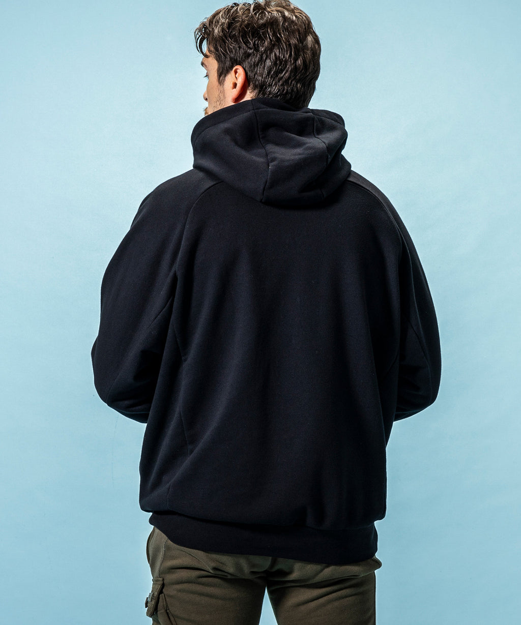 Underneath the snow wear, of course, it’s also active as an outerwear when heading to the slopes—a sweatshirt pullover hoodie.