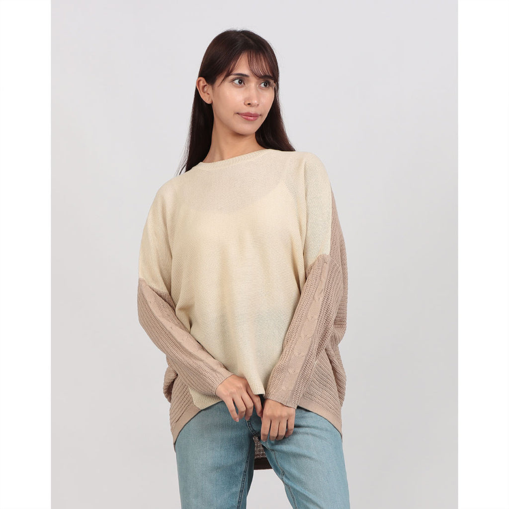 The cable pattern switch becomes an accent, and it is a knit with a presence despite being plain.