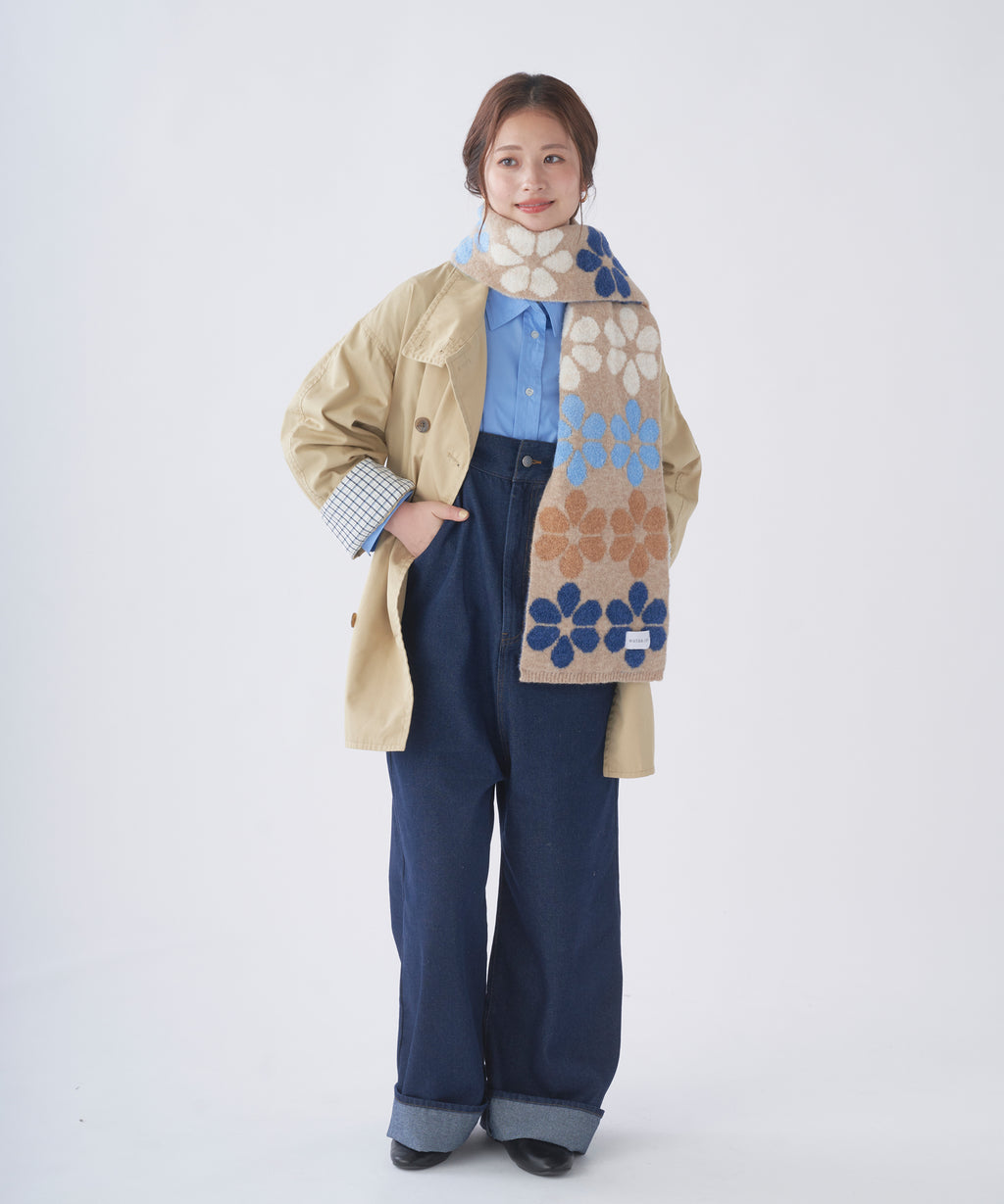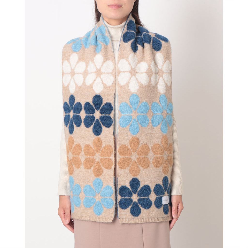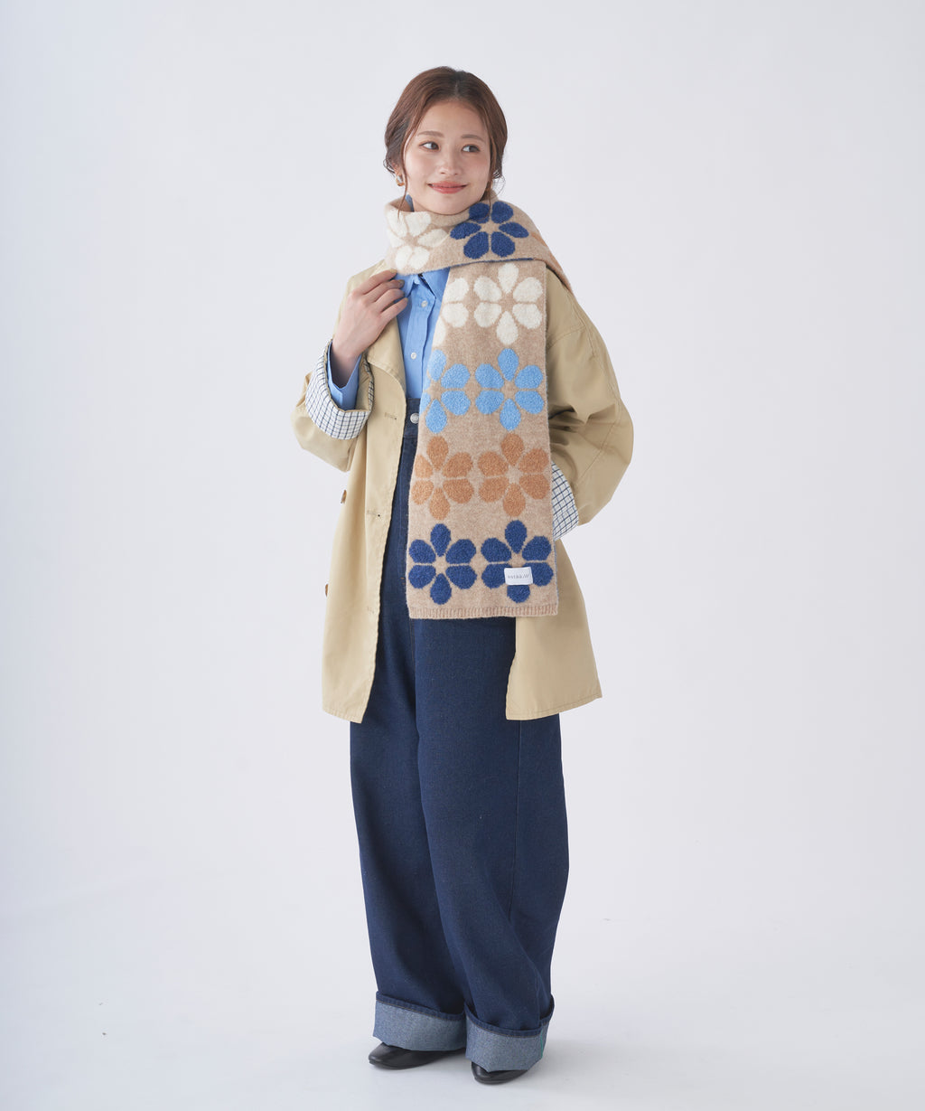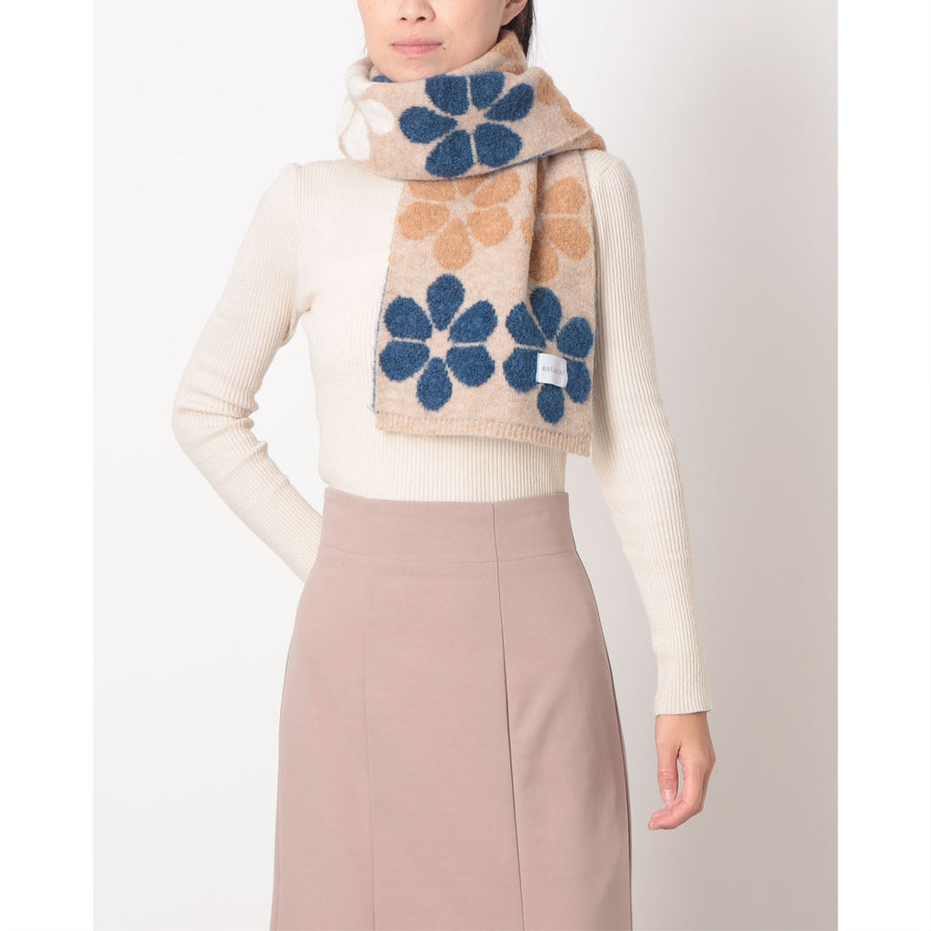 Estaa 【Washable】 Knit Scarf 24×160cm Flower Jacquard