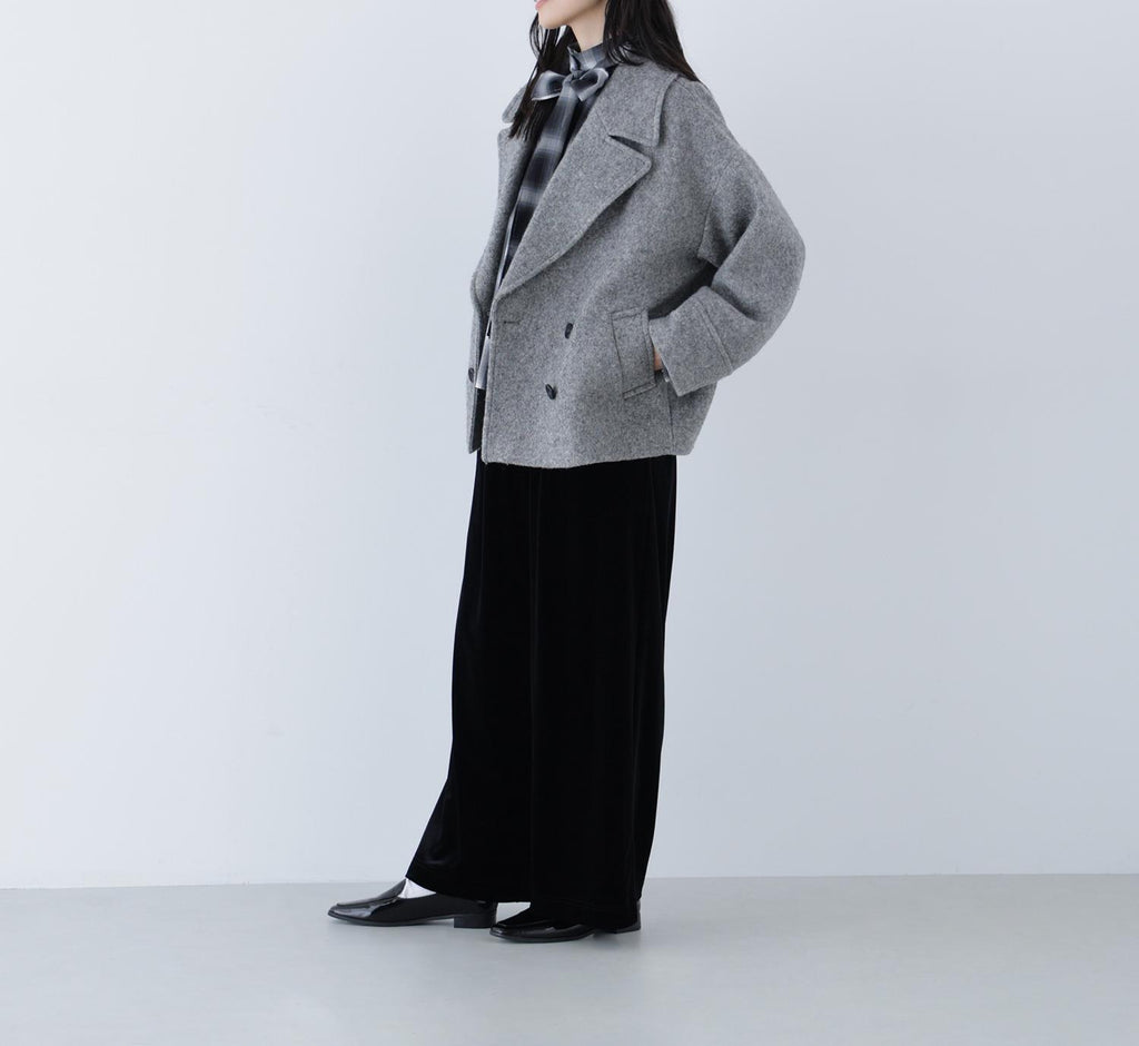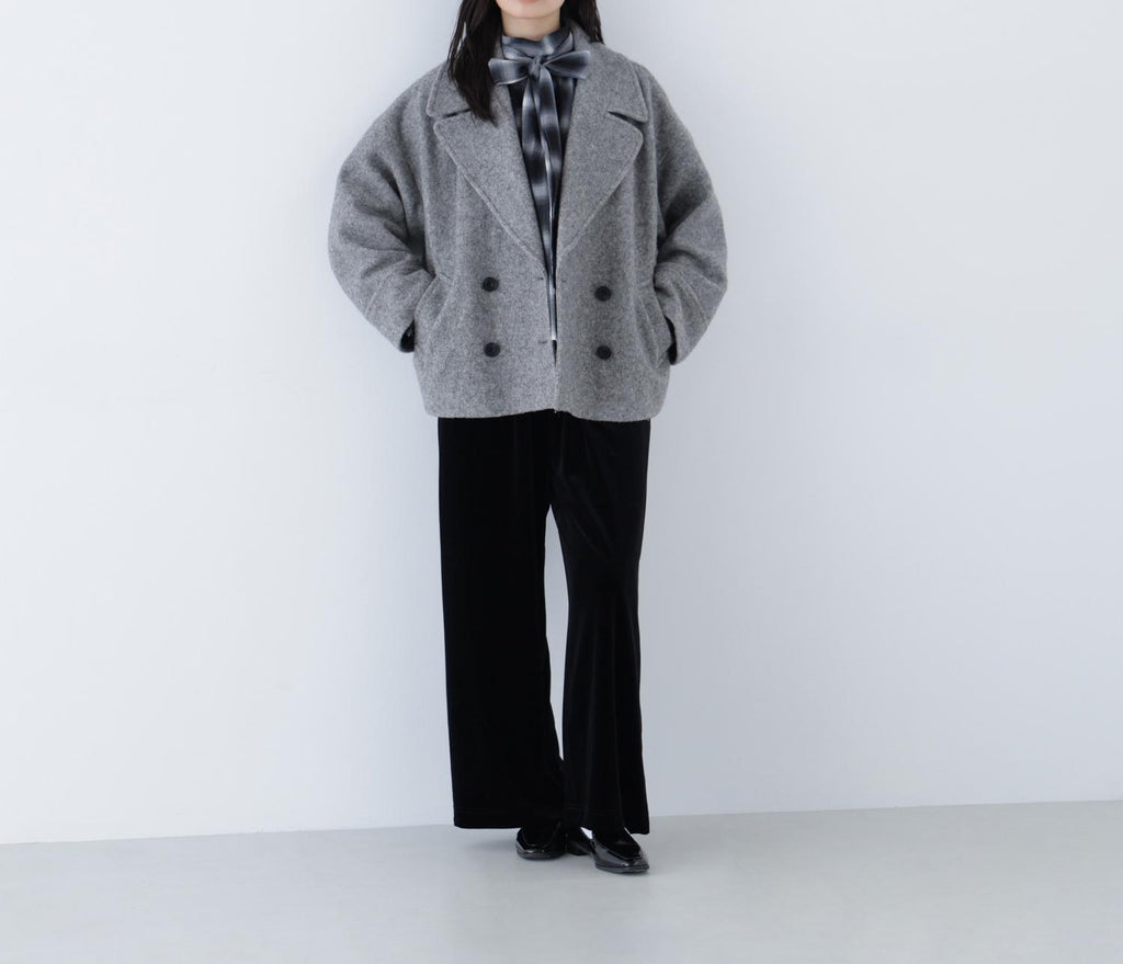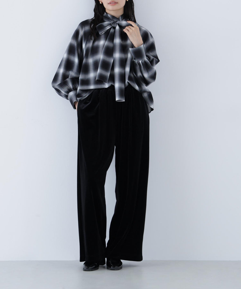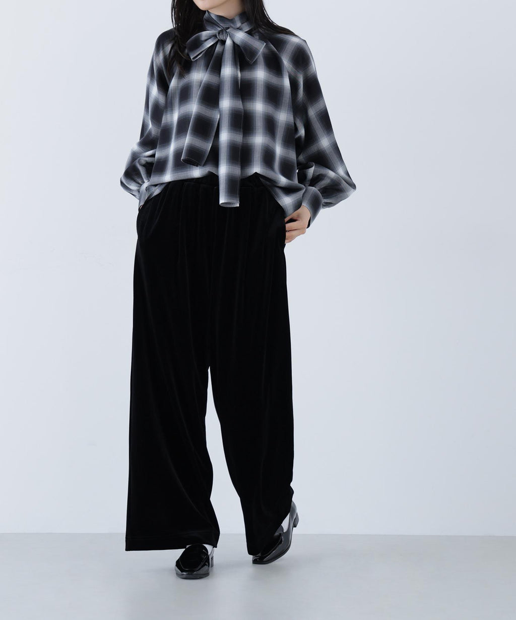 These velour pants feature an easy design that exudes a sense of relaxation, making them perfect for daily wear. The Waist is designed with an all-elastic specification for easy wear. The glossy velour material adds a touch of elegance to your coordination. The straight silhouette with a draping effect creates a beautiful leg appearance.