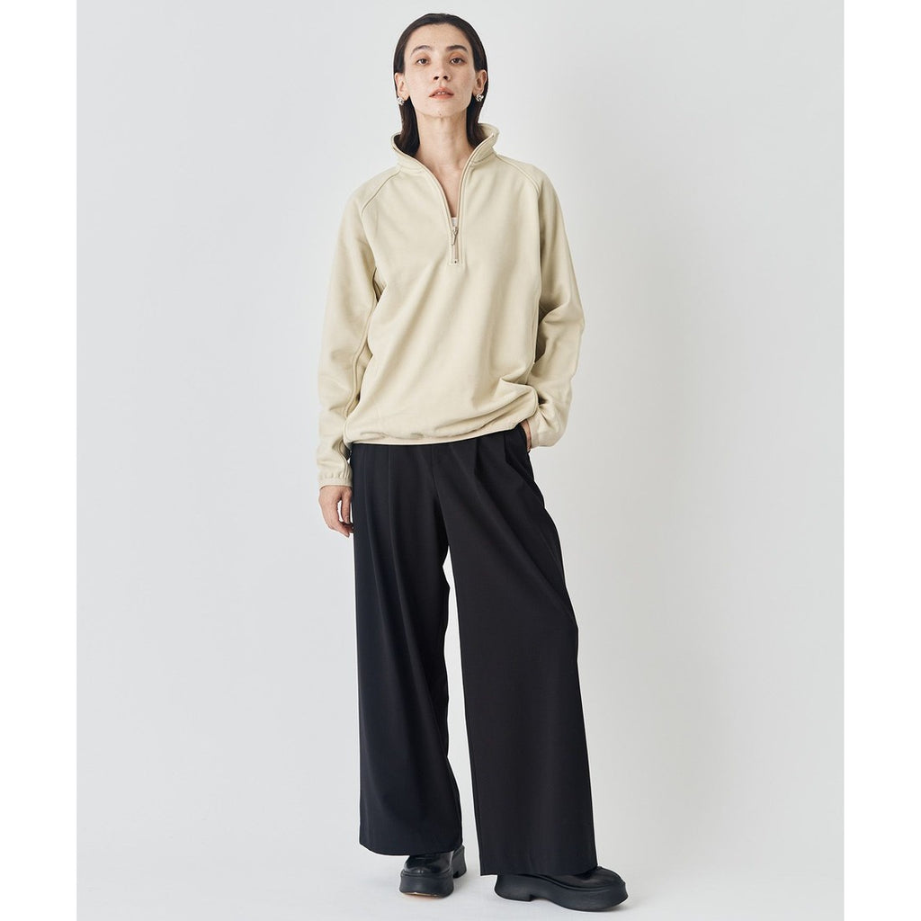 ■ Material: French textile manufacturer 【CARREMAN】's polyester × rayon stretch material. CARREMAN is planned in a French design office and produced in China, utilizing know-how from material creation in France. It features long fiber yarns, resulting in a soft, wool-touch texture. It has stretch both vertically and horizontally, allowing for comfortable wear.
