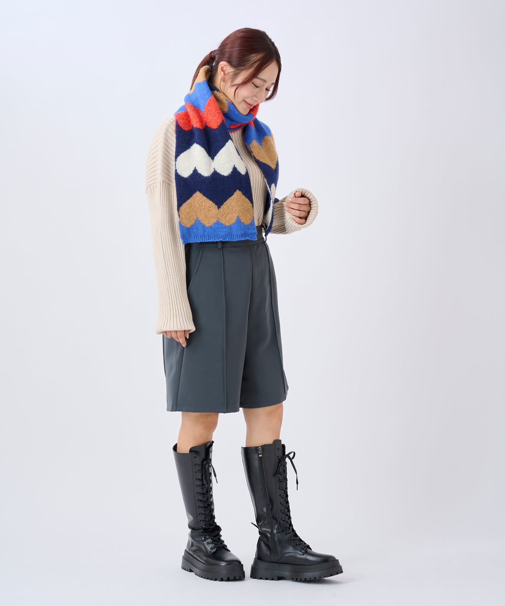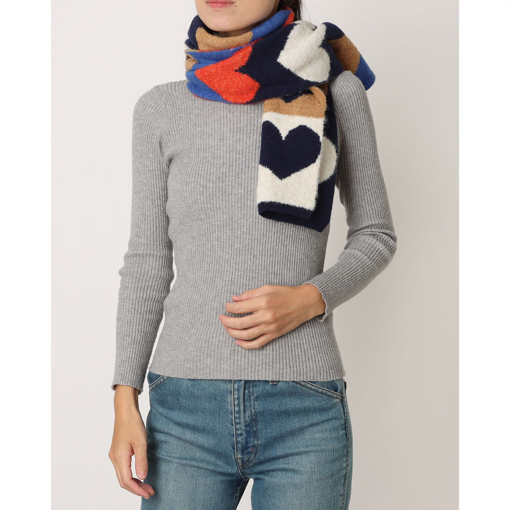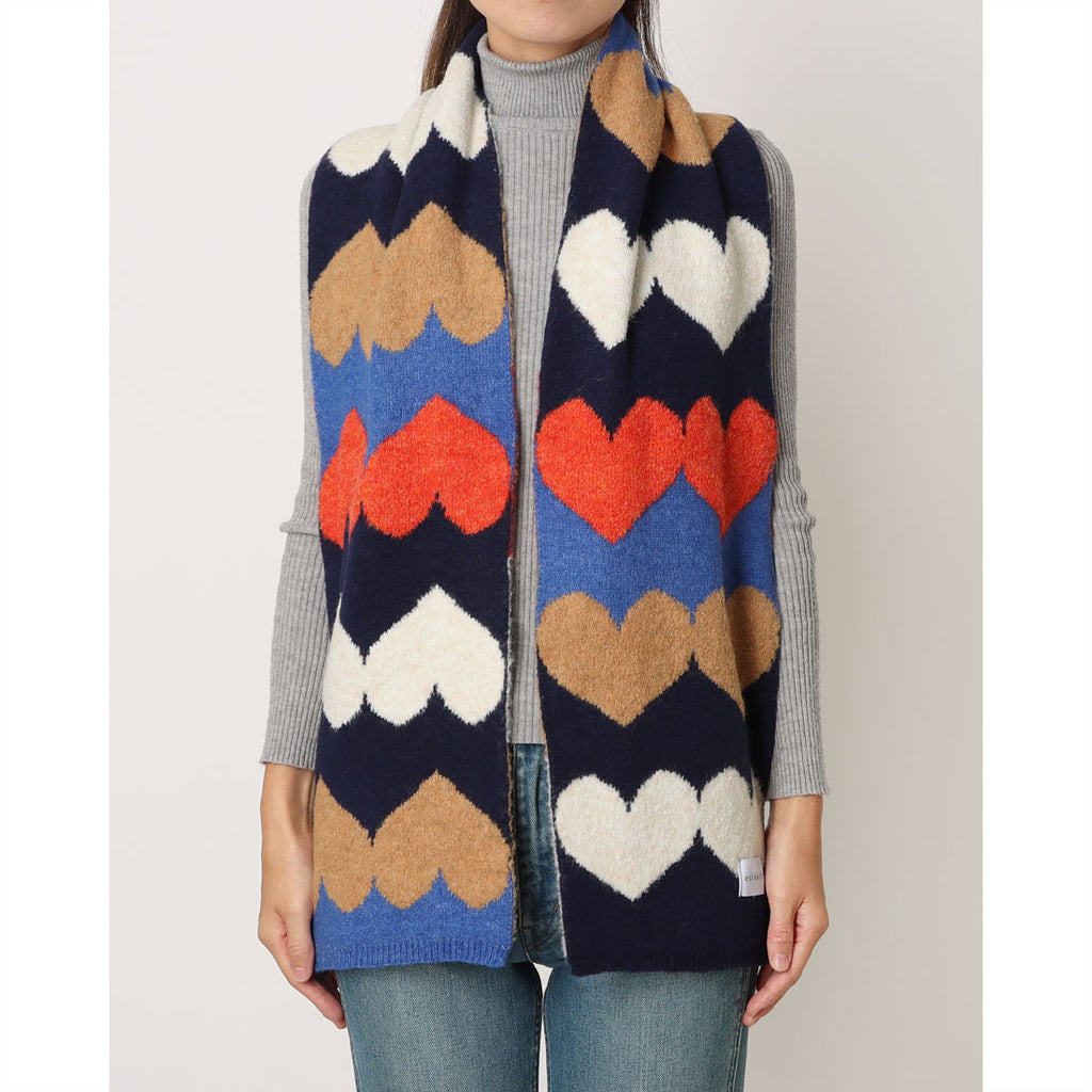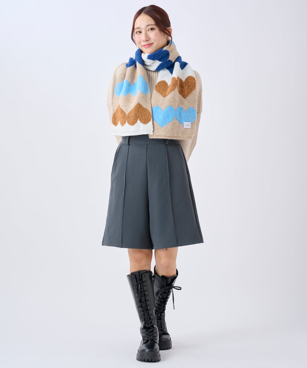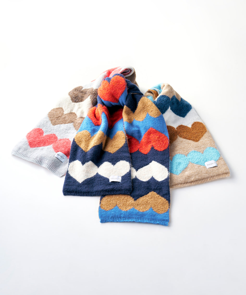 Washable Knit Scarf 24×160cm Heart Jacquard
