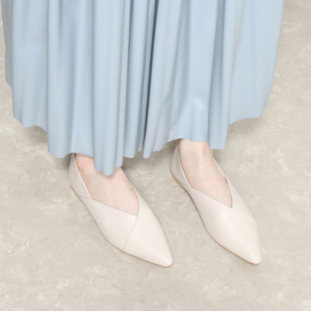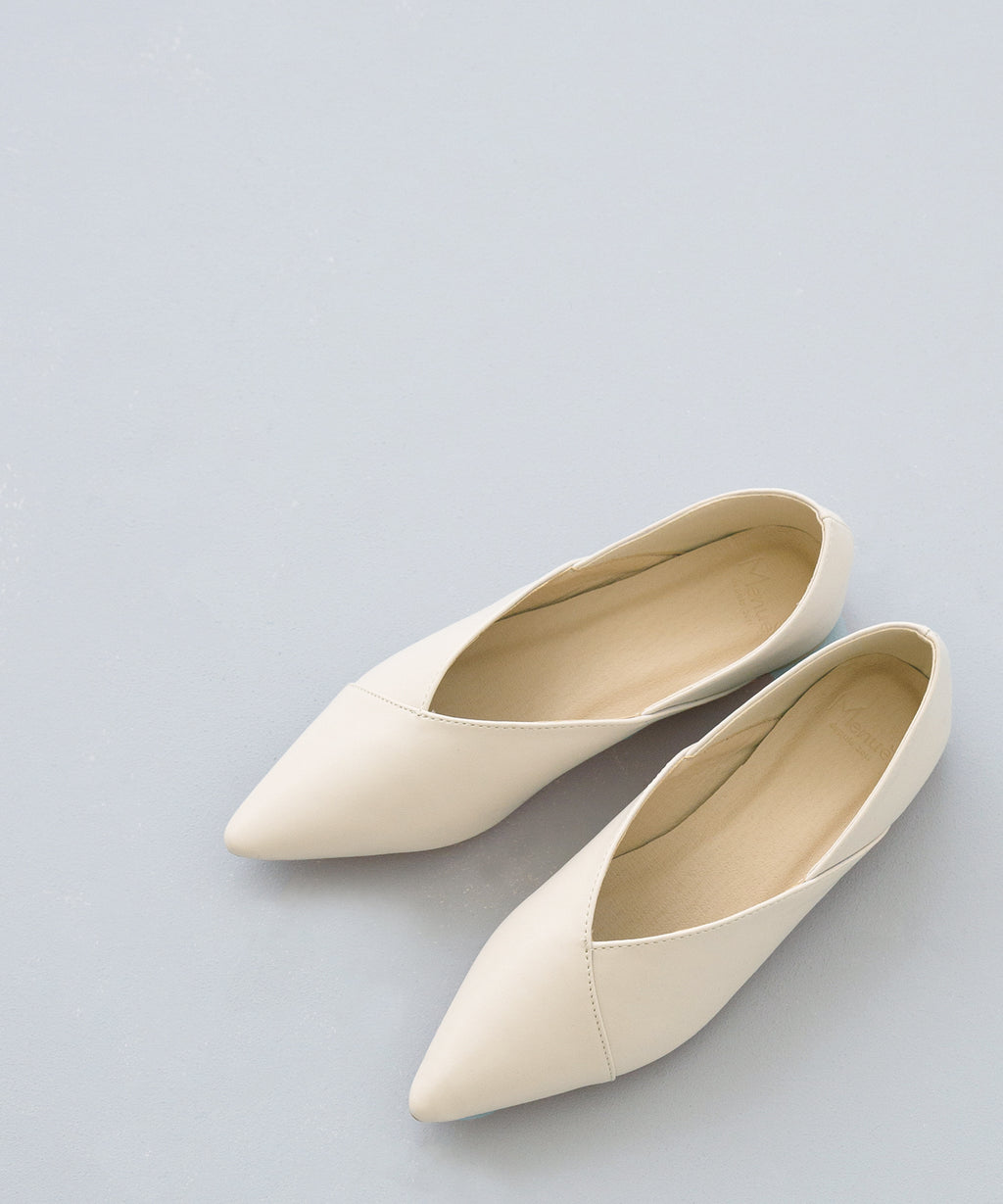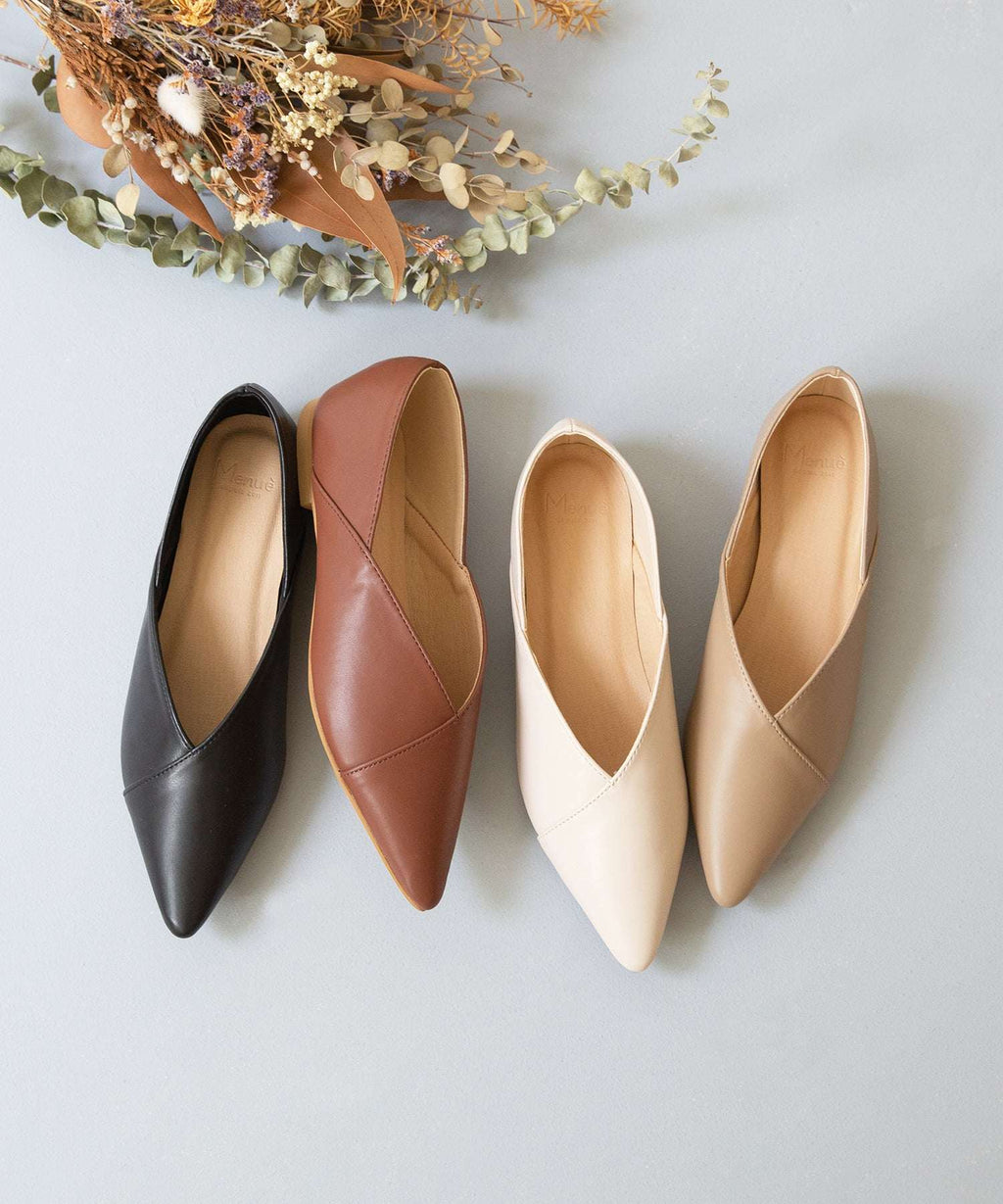 "The combination of the V-cut opening and pointed toe is stylish. Pointed Toe V-Cut Flat Shoes"