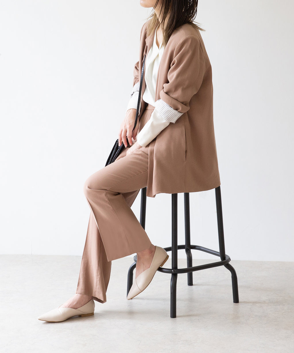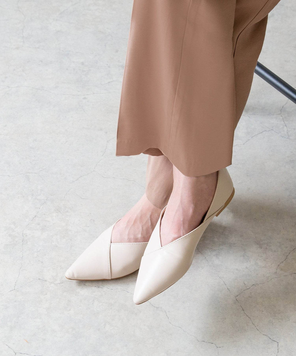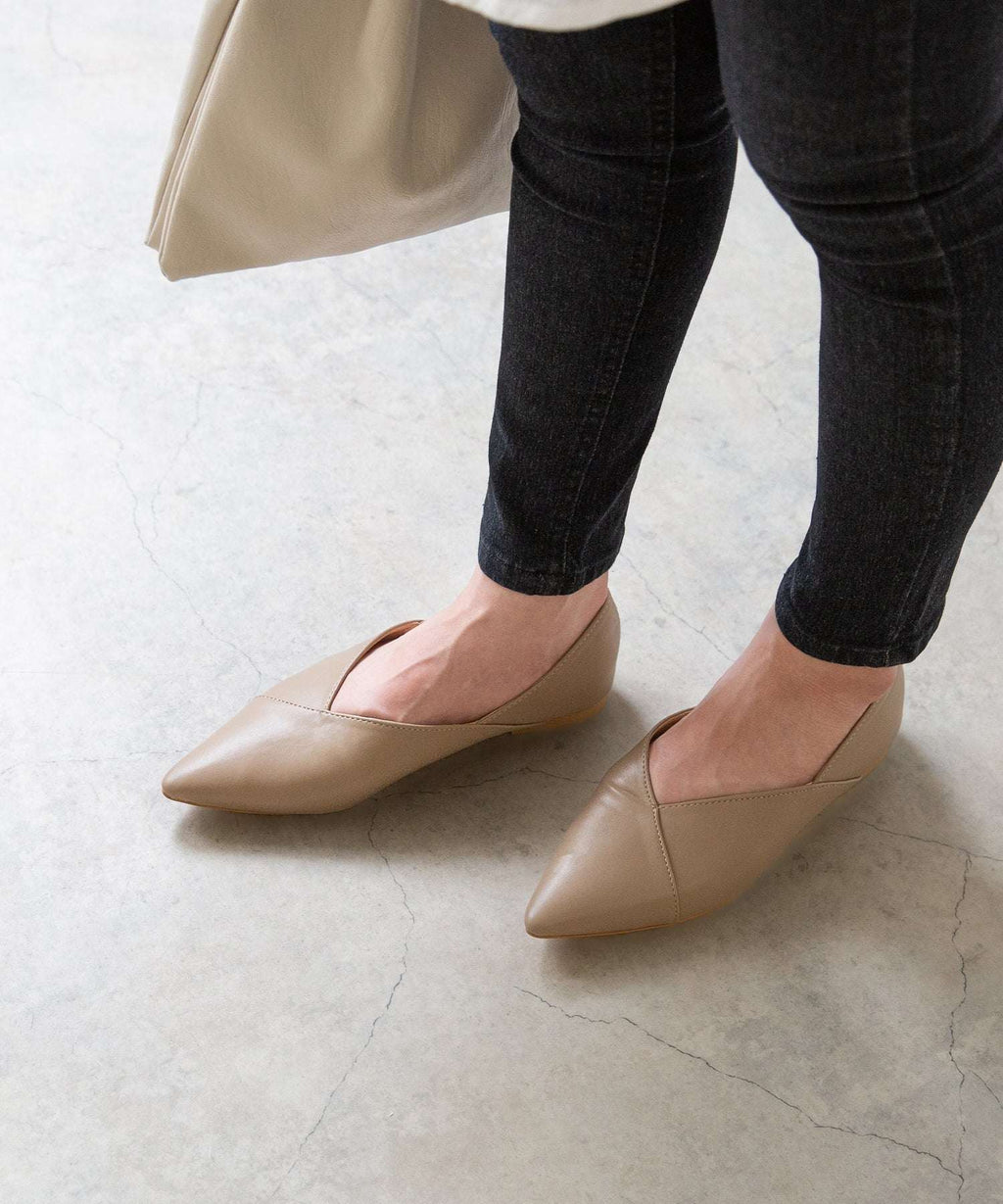"The combination of the V-cut opening and pointed toe is stylish. Pointed Toe V-Cut Flat Shoes"