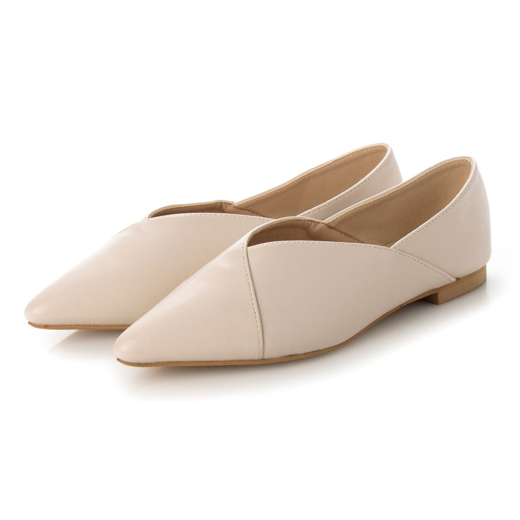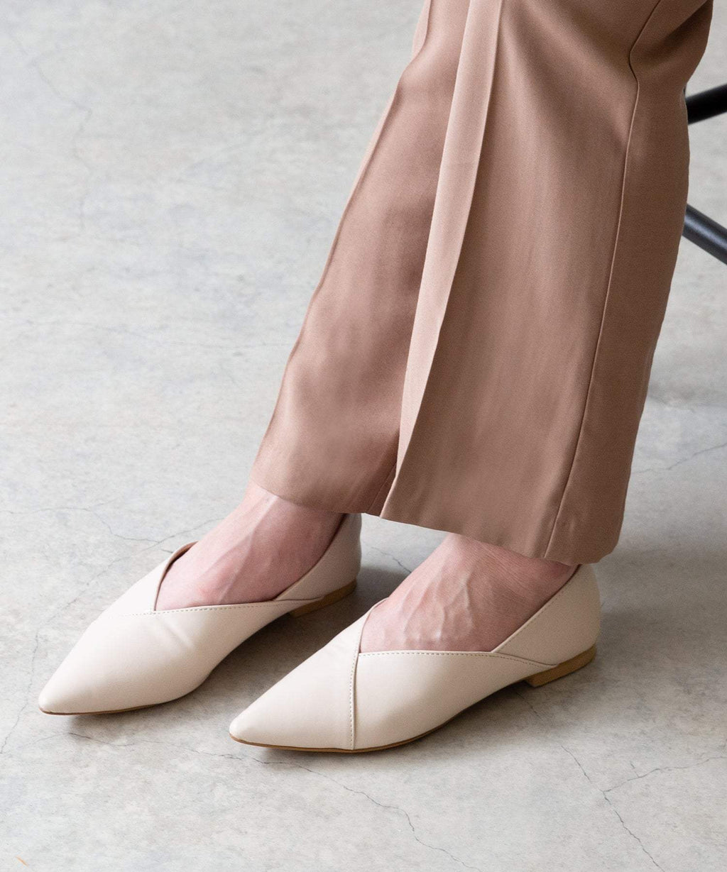 [Design] Pointed Toe V-Cut Deep Upper Flat Heel Low Heel Flat 2E