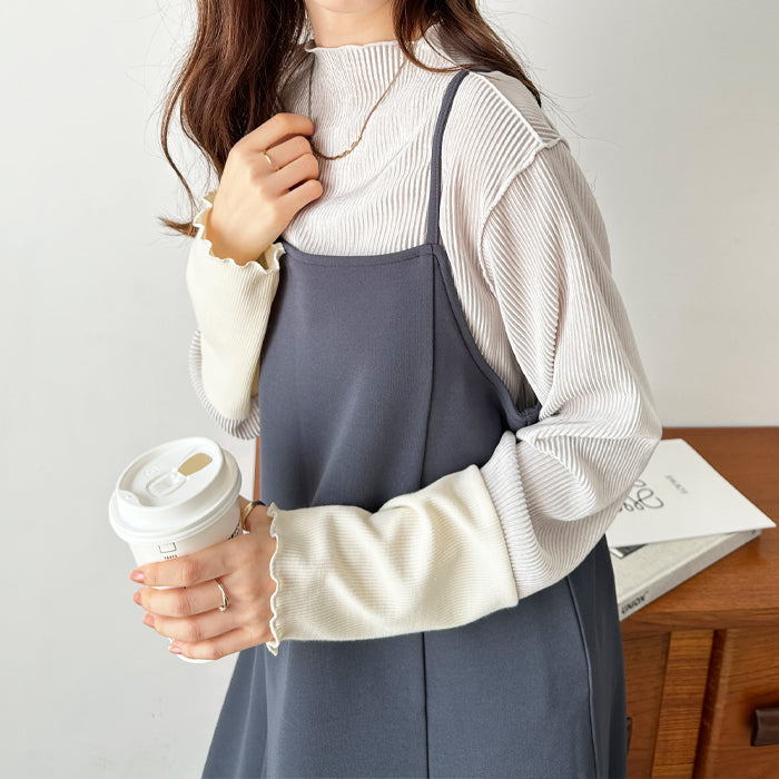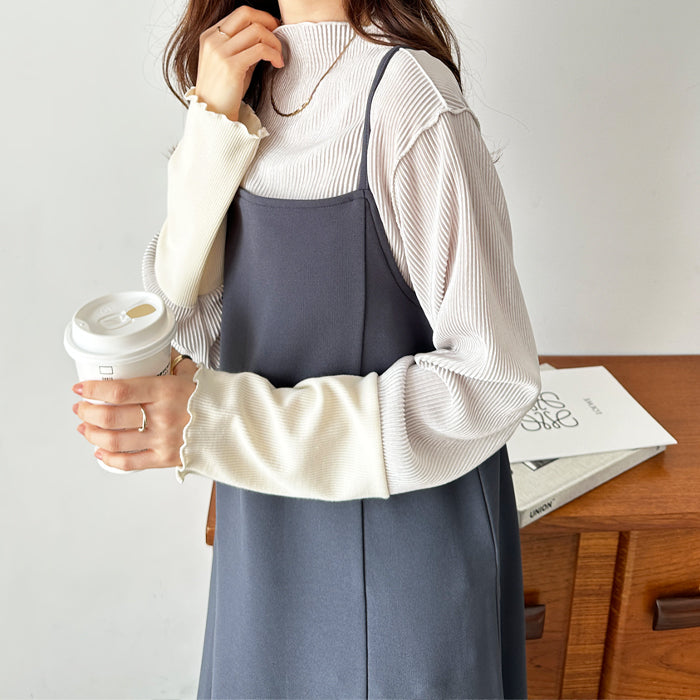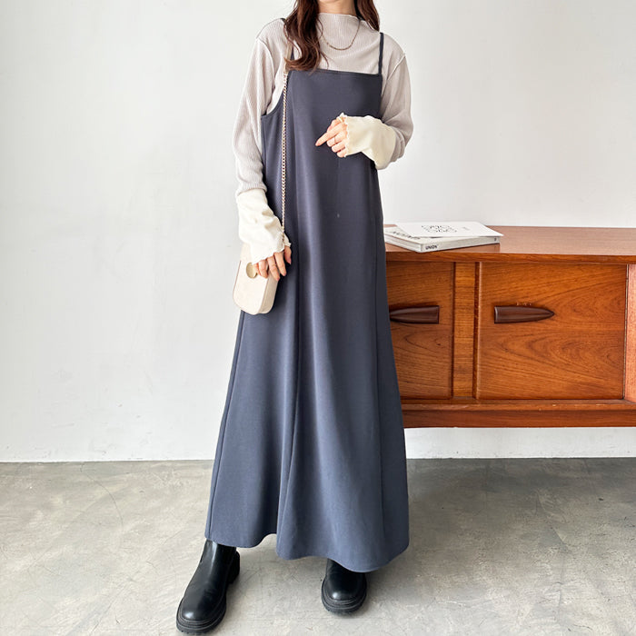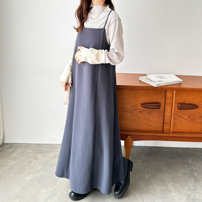 A layered outfit paired with a cami dress is feminine and highly recommended.