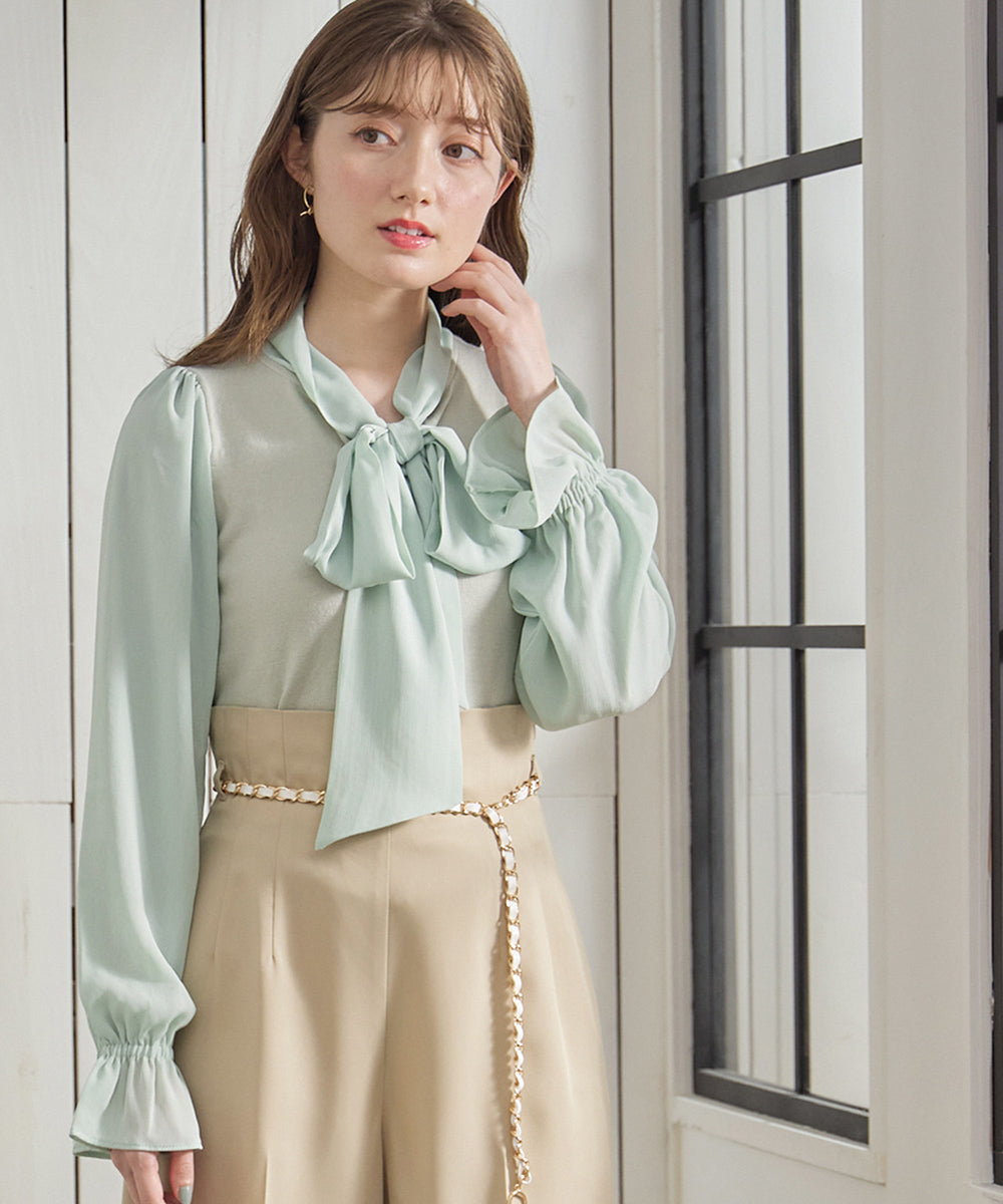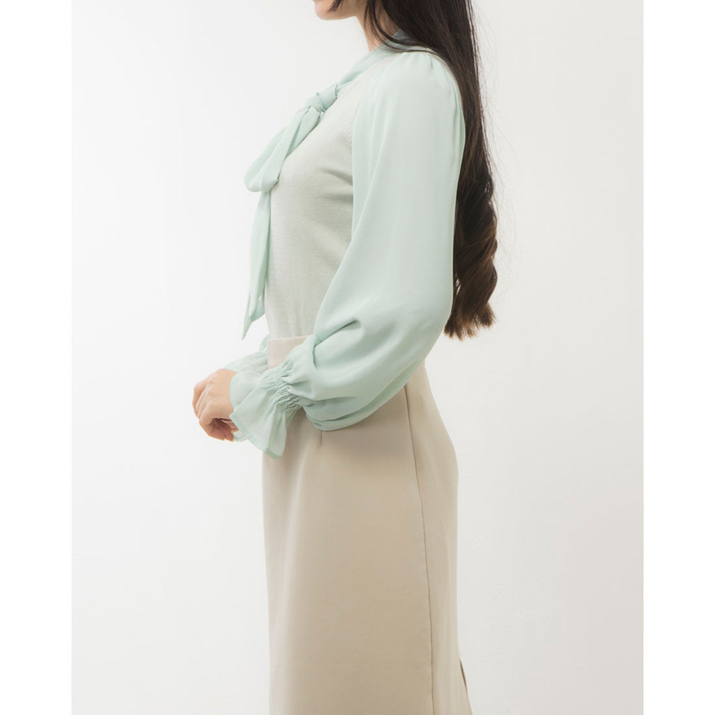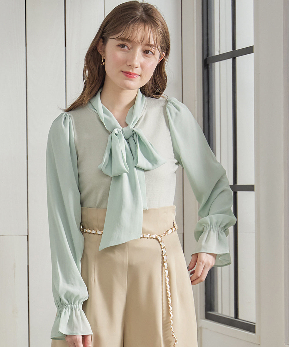 ◇ Twelve Agenda 12Twelve Agenda Mixed Material Ribbon Tie & Sleeve Knit Pullover