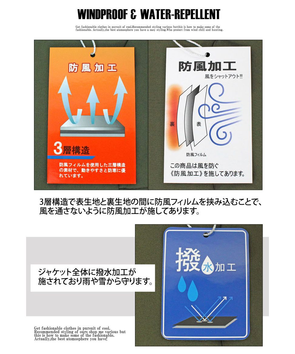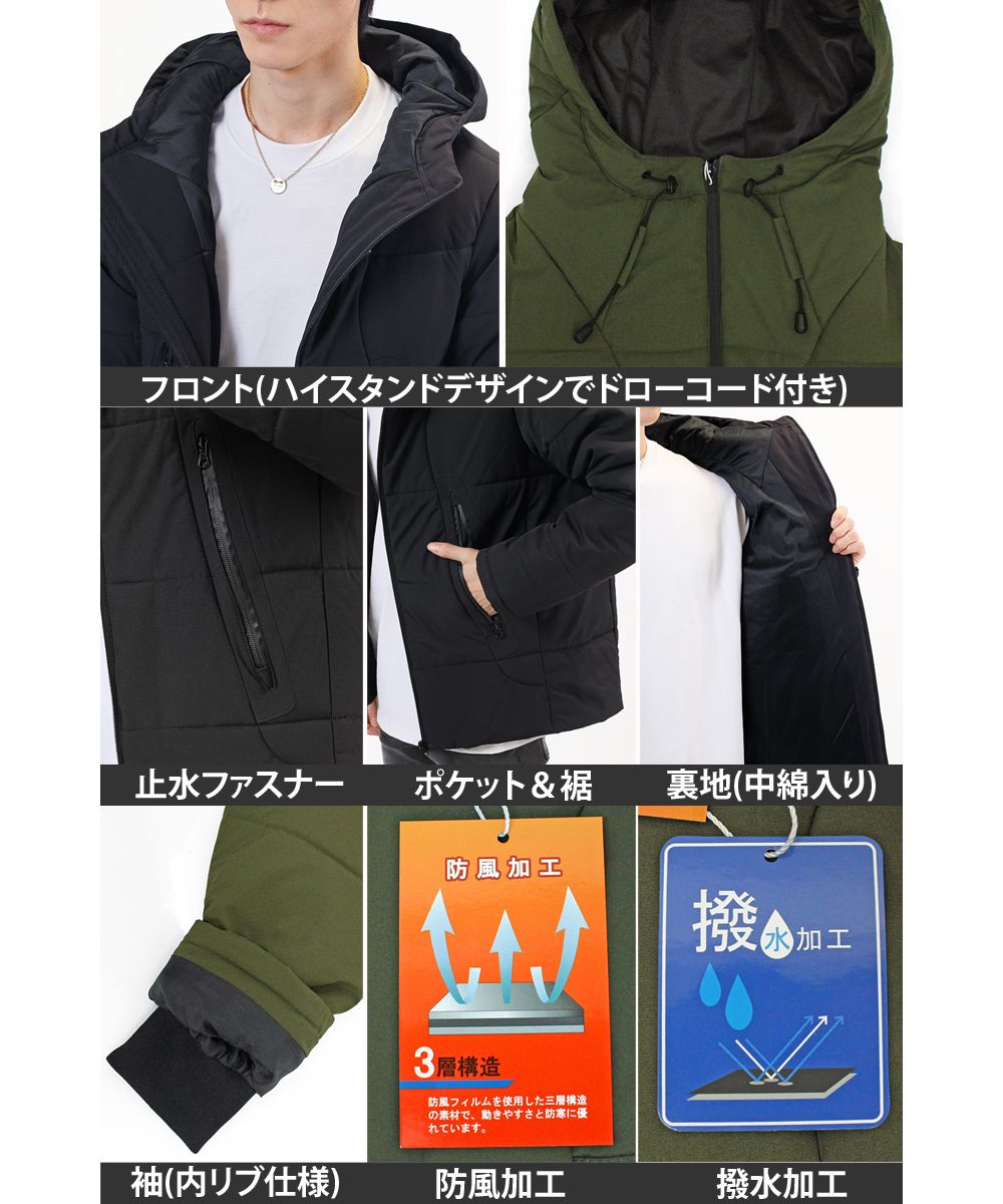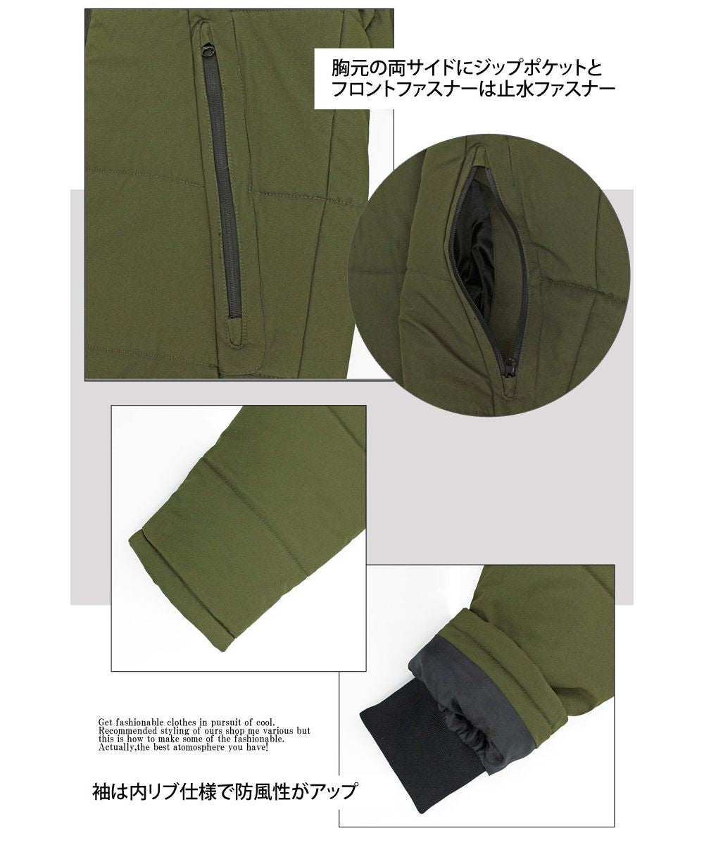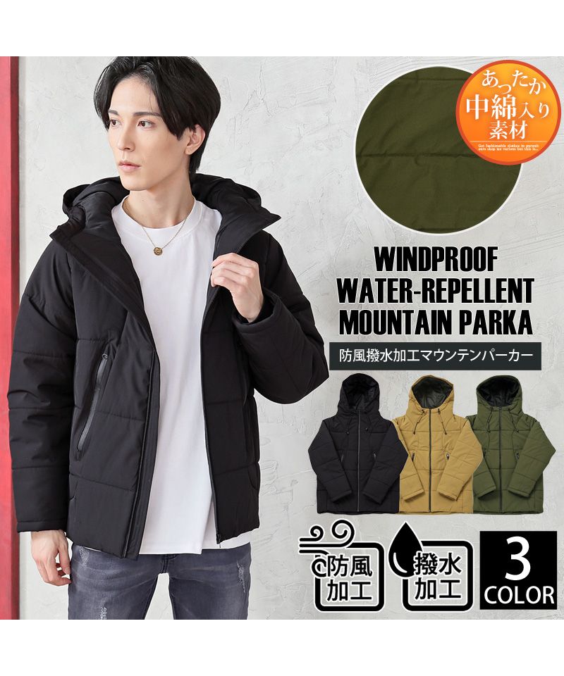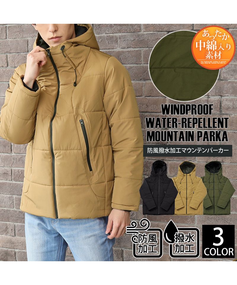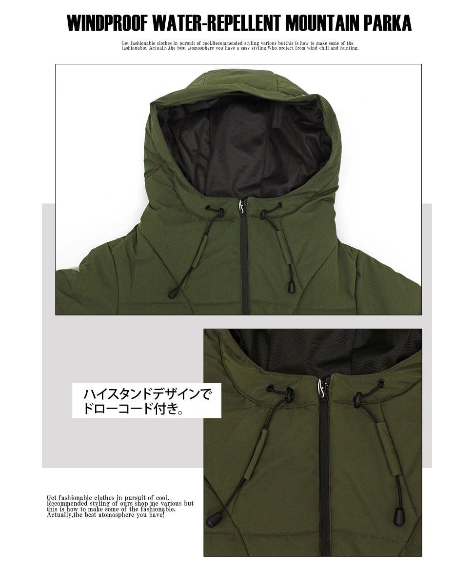 A mountain parka with insulation that features a 3-layer structure, sandwiching a windproof film between the outer and inner fabrics, providing windproof processing to prevent wind from passing through!