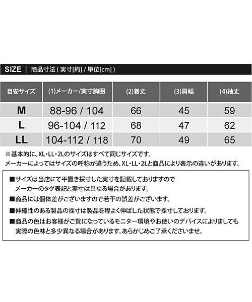 *Basically, the sizes XL, LL, and 2L are all the same size.